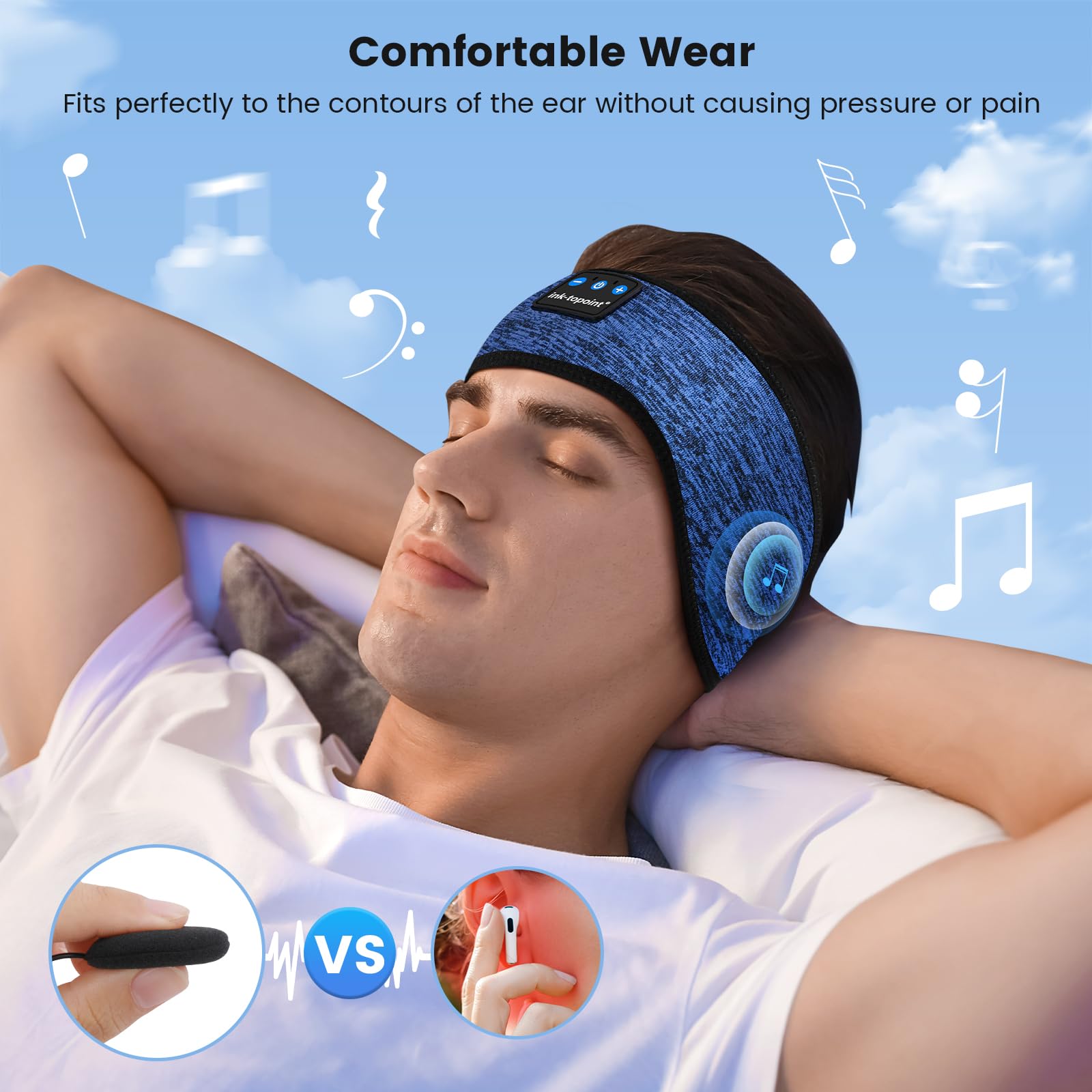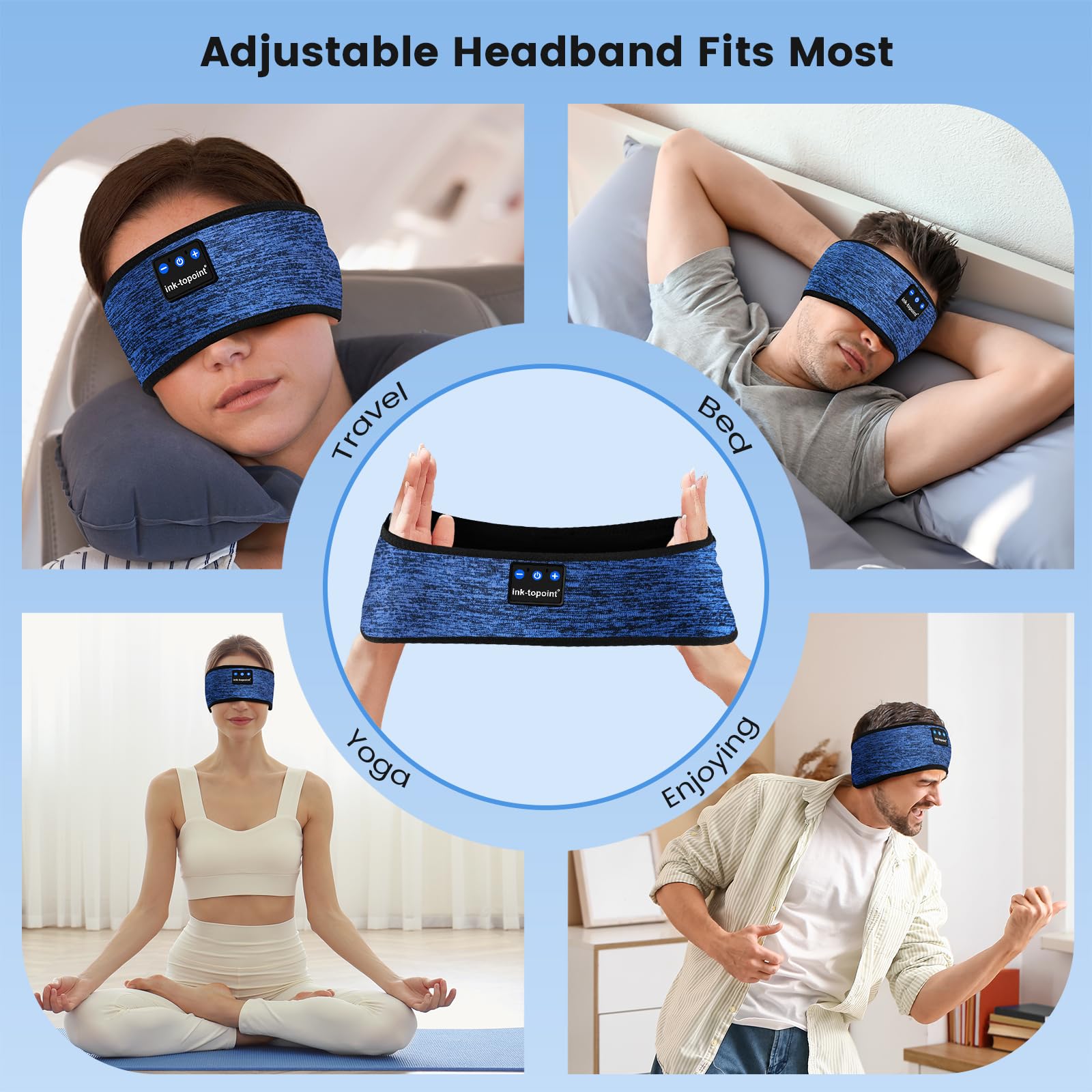 Schlafen Sie tiefer, bleiben Sie aktiv und entspannen Sie sich in Komfort. ink-topoint Sleep Kopfhörer kombinieren Spitzentechnologie mit luxuriösem Komfort, um Ihre Ruhe und Routinen zu verwandeln. Dieses Bluetooth-Stirnband wurde für Seitenschläfer, Reisende und Fitness-Enthusiasten entwickelt und verfügt über ultradünne Lautsprecher, die sich sanft an Ihre Ohren schmiegen und es Ihnen ermöglichen, beruhigende Musik oder Podcasts ohne Beschwerden zu geniessen. Warum sollten Sie Tinten-Topoint wählen? Komfort geht vor: Hergestellt aus weichem, dehnbarem Stoff, der Feuchtigkeit ableitet und bei intensiven Workouts oder Mitternachtswürfen an Ort und Stelle bleibt. 【Bluetooth 5.4 Leistung】Geniessen Sie stabiles, hochwertiges drahtloses Audio für bis zu 16 Stunden – perfekt für die Entspannung die ganze Nacht oder energetisierende Morgenläufe. 【Musik geniessen】 Egal, ob Sie sich mit beruhigenden Melodien entspannen, sich während des Yoga konzentrieren oder während des Fluges Podcasts nachholen, unser HiFi-Sound sorgt dafür, dass jede Note kristallklar ist. Perfekt für jeden Lebensstil. Verwenden Sie es als Schlafmaske, um Licht während der Reise zu blockieren, als Begleiter im Fitnessstudio, der während Burpees sicher bleibt, oder als gemütliches Schlafengehen für Seitenschläfer. Mit Iink-topoint schlafen Sie schneller ein, bleiben länger motiviert und wachen erfrischt auf – keine Kompromisse. Verbessern Sie Ihre Routine noch heute!