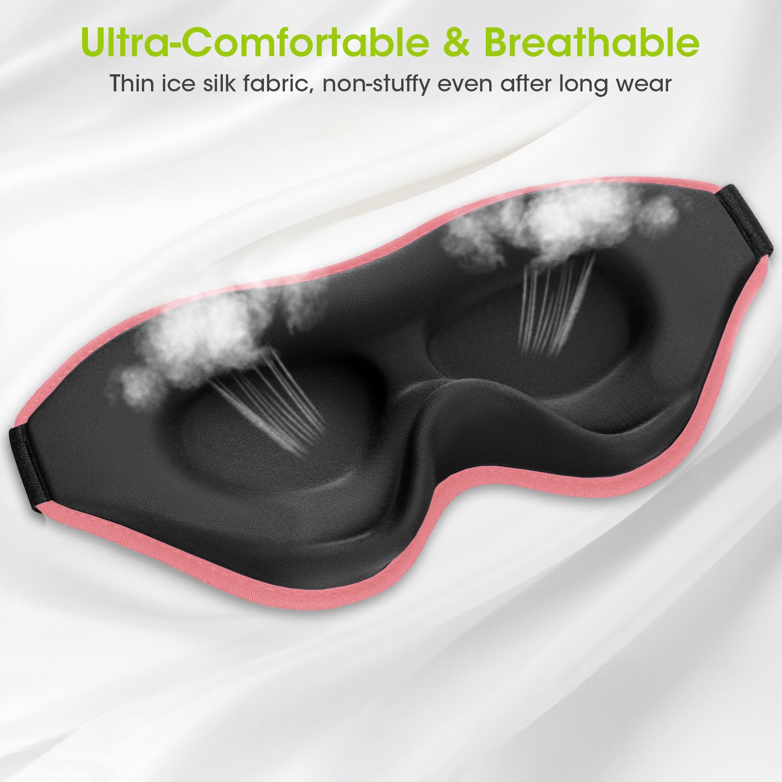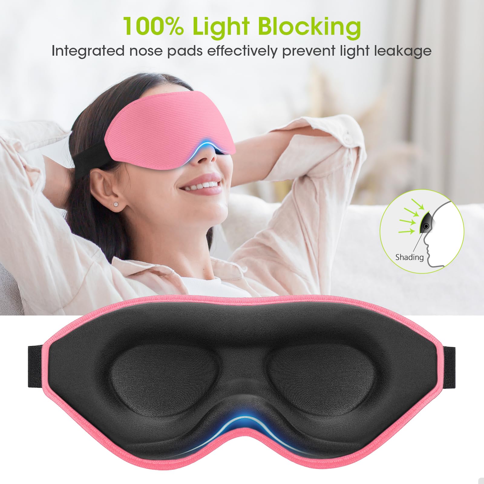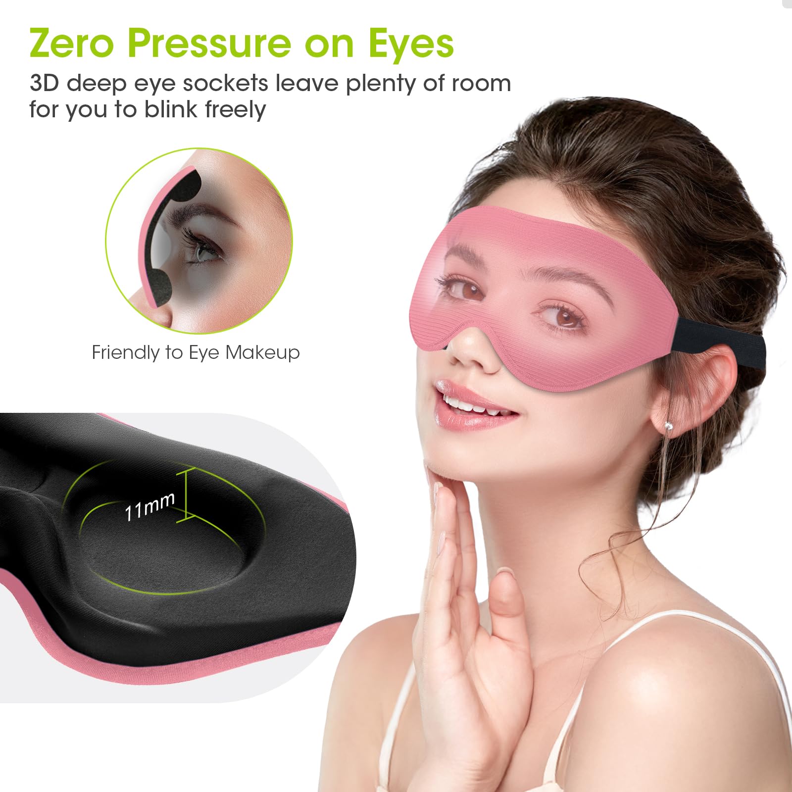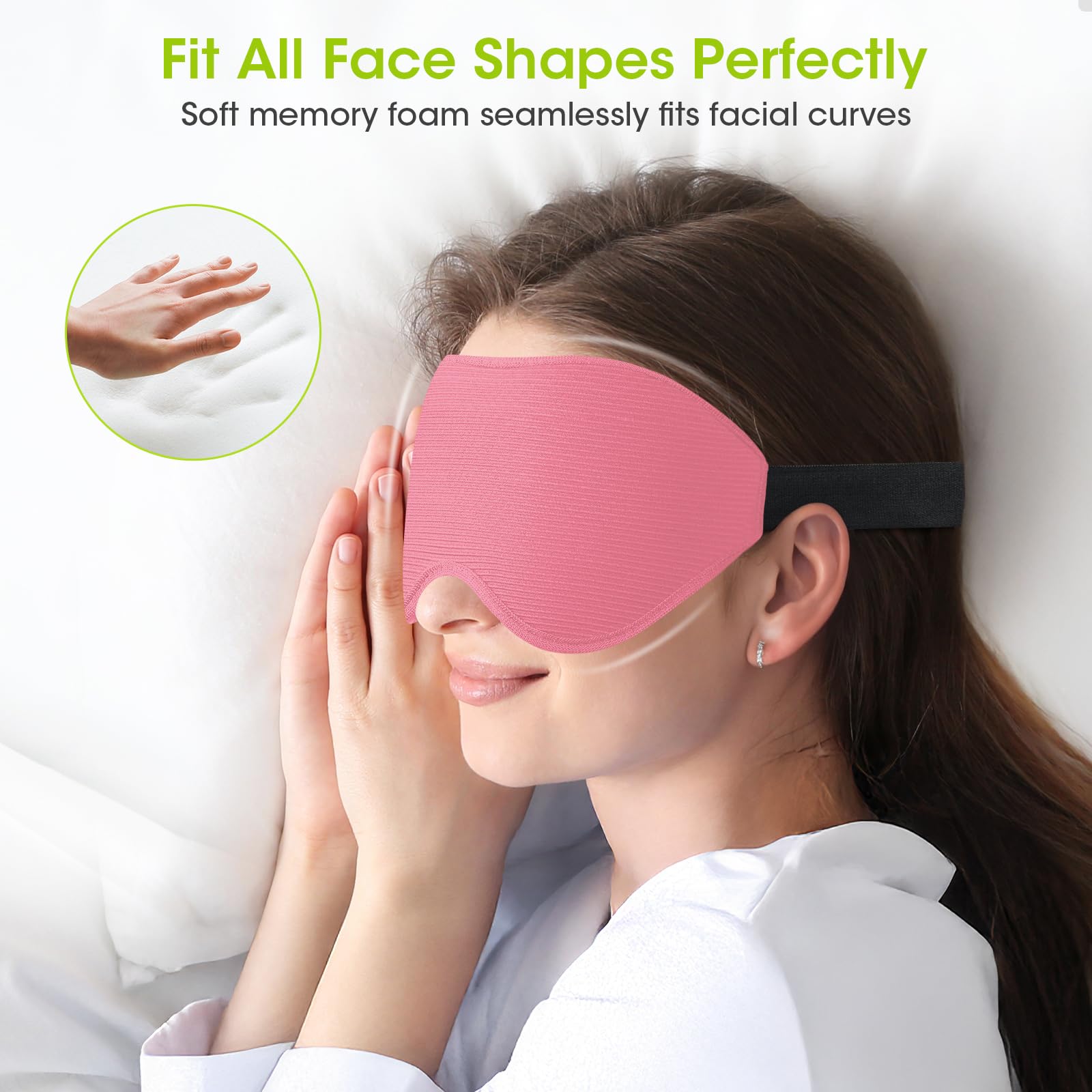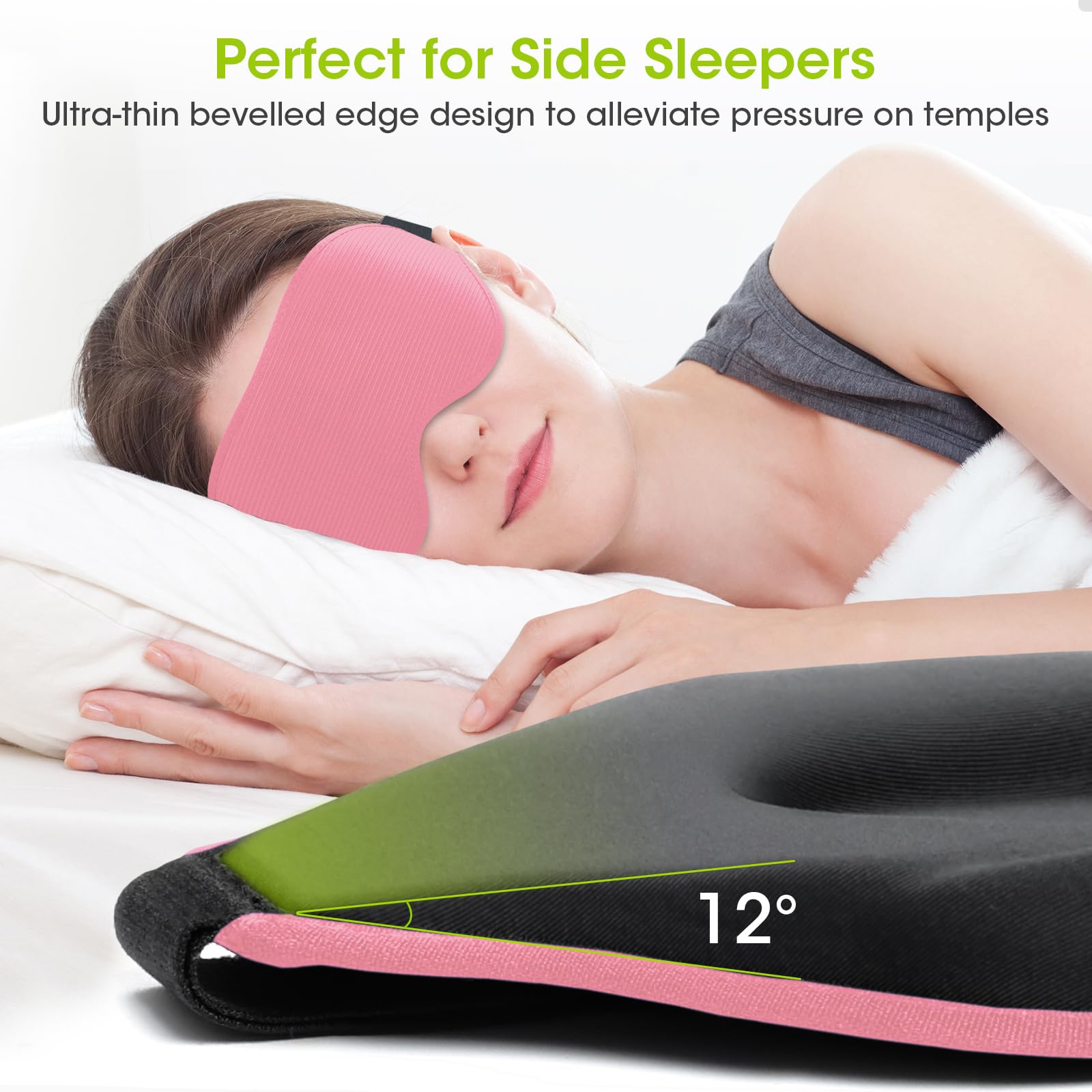 Schlafmaske für Seitenschläfer, Laitver 2025 Aktualisiertes Design 3D Lichtblockierend Augenmaske Frauen & Herren, Bequem & Atmungsaktive Druckfrei Schlafbrille mit Verstellbar Gummiband, Pink