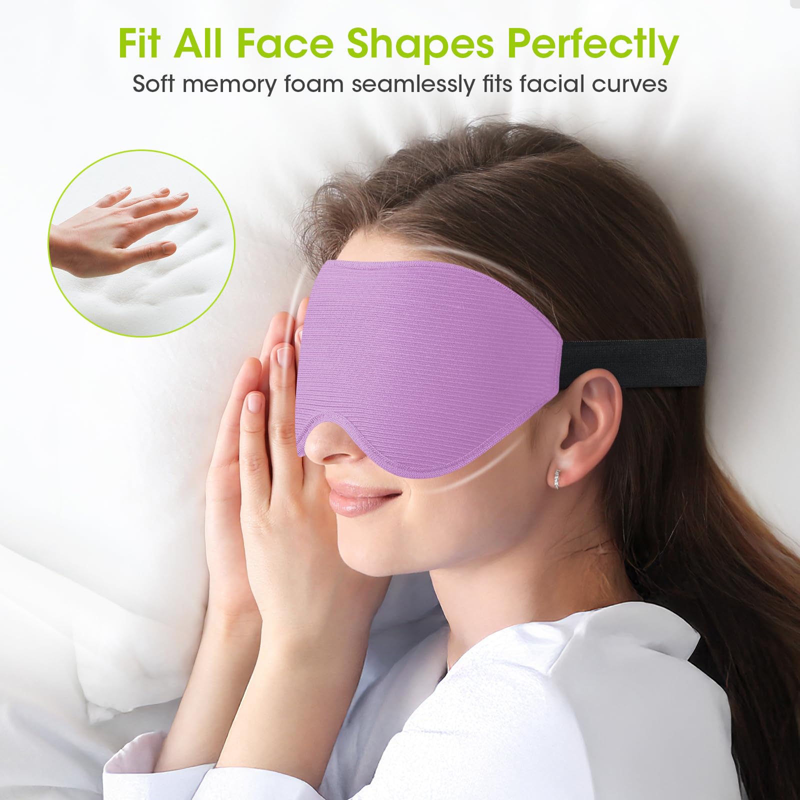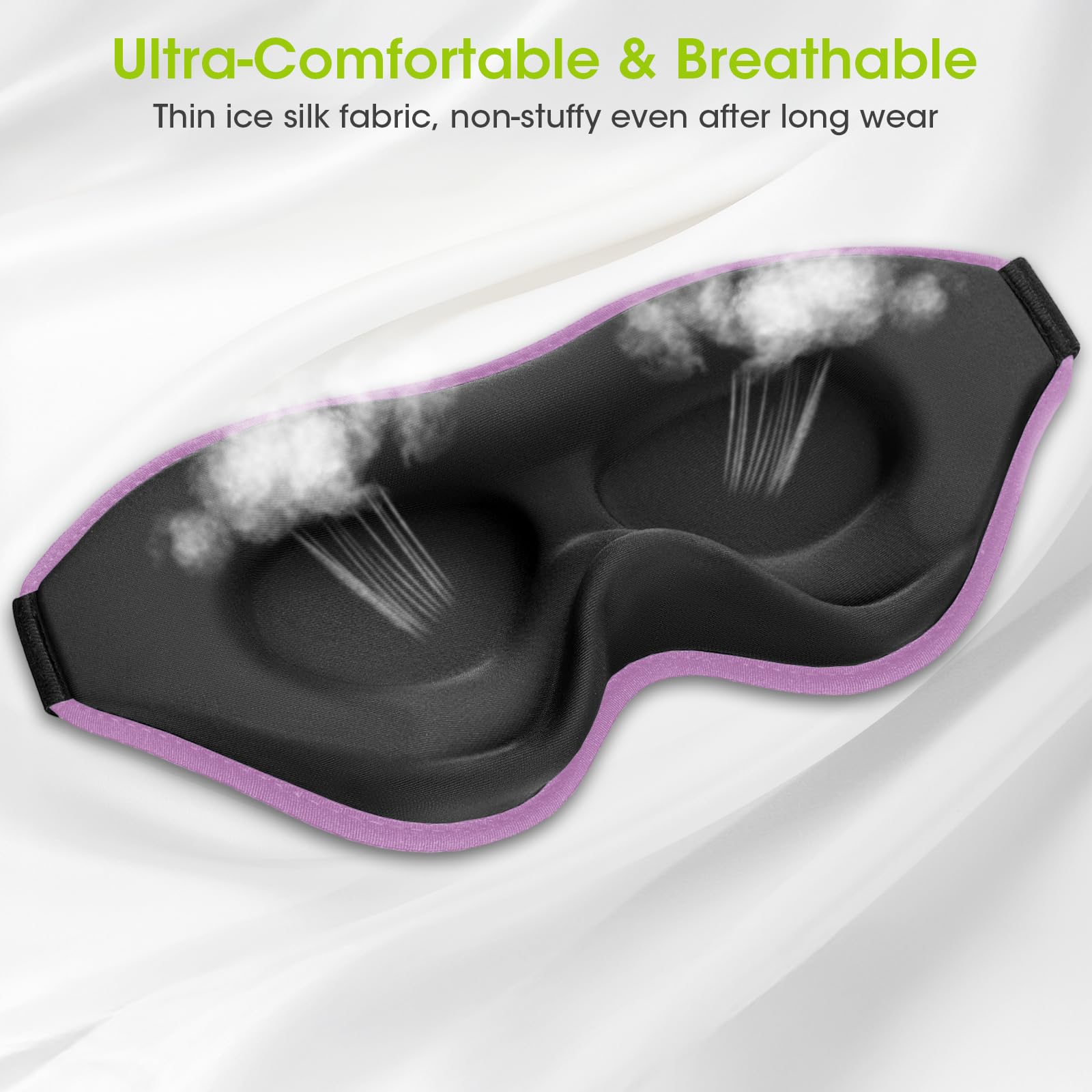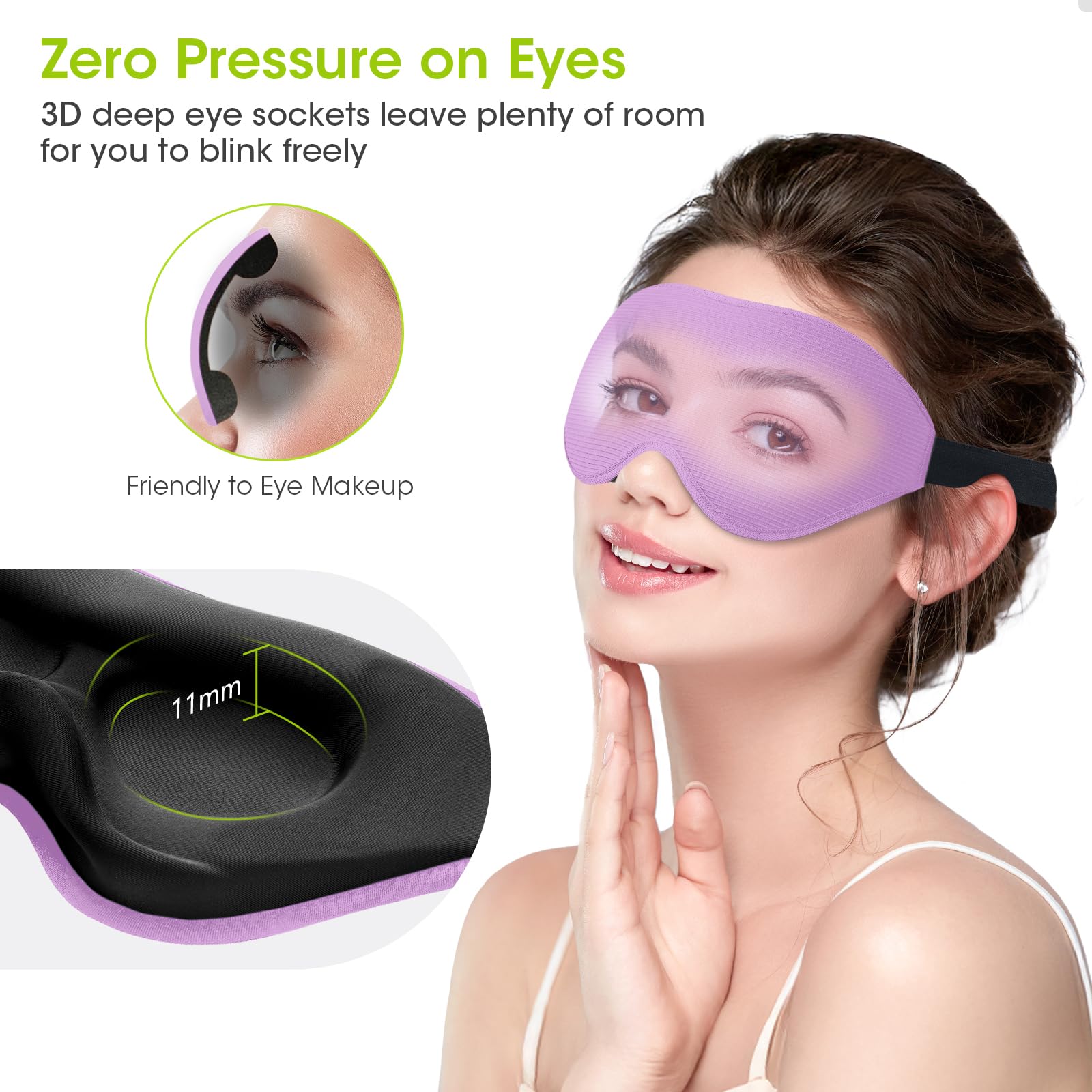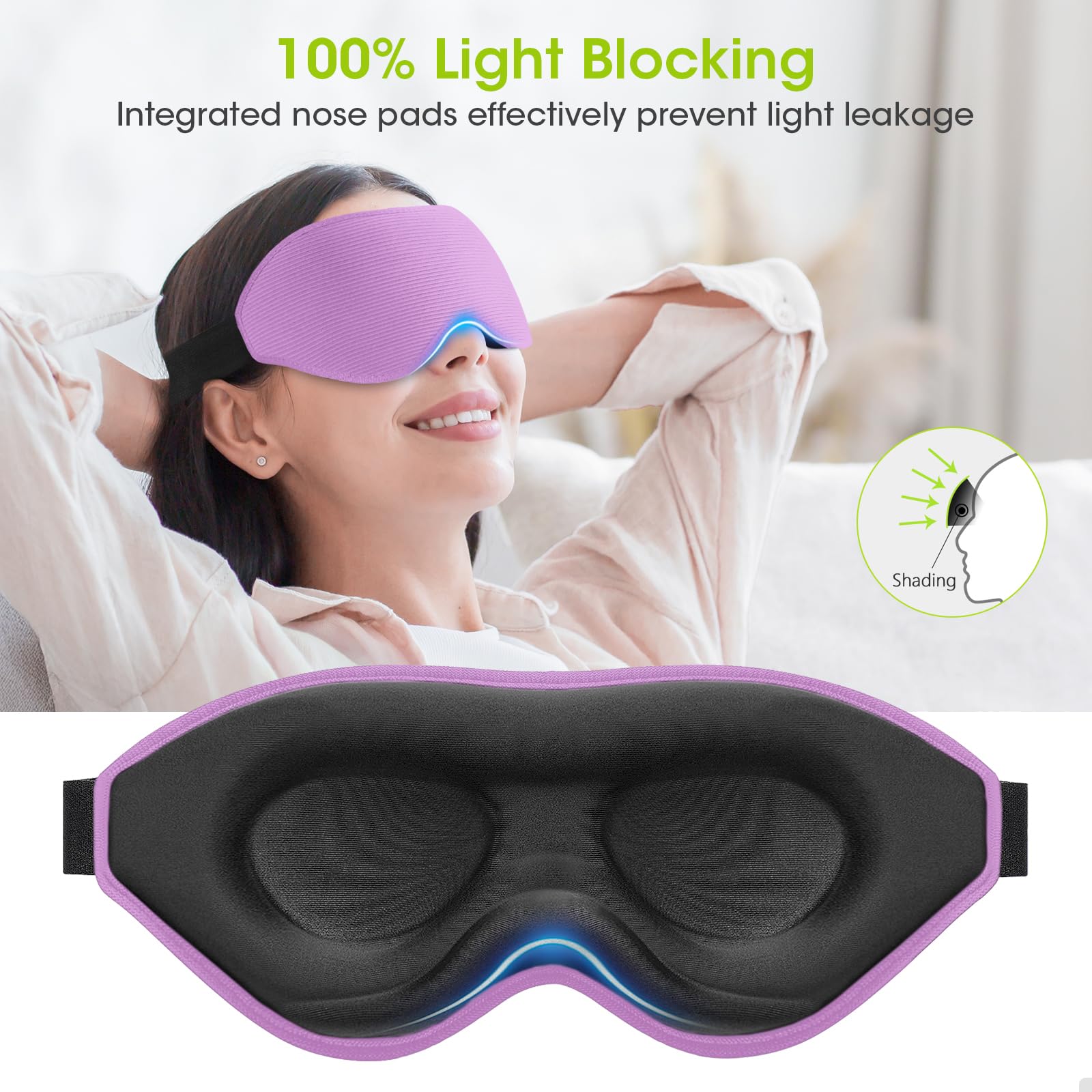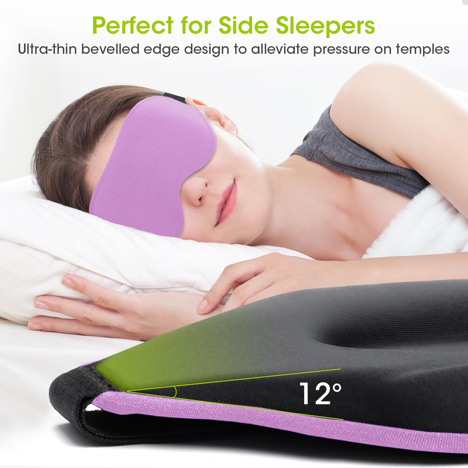 Schlafmaske für Seitenschläfer, Laitver 2025 Aktualisiertes Design 3D Lichtblockierend Augenmaske Frauen & Herren, Bequem & Atmungsaktive Druckfrei Schlafbrille mit Verstellbar Gummiband, Lila