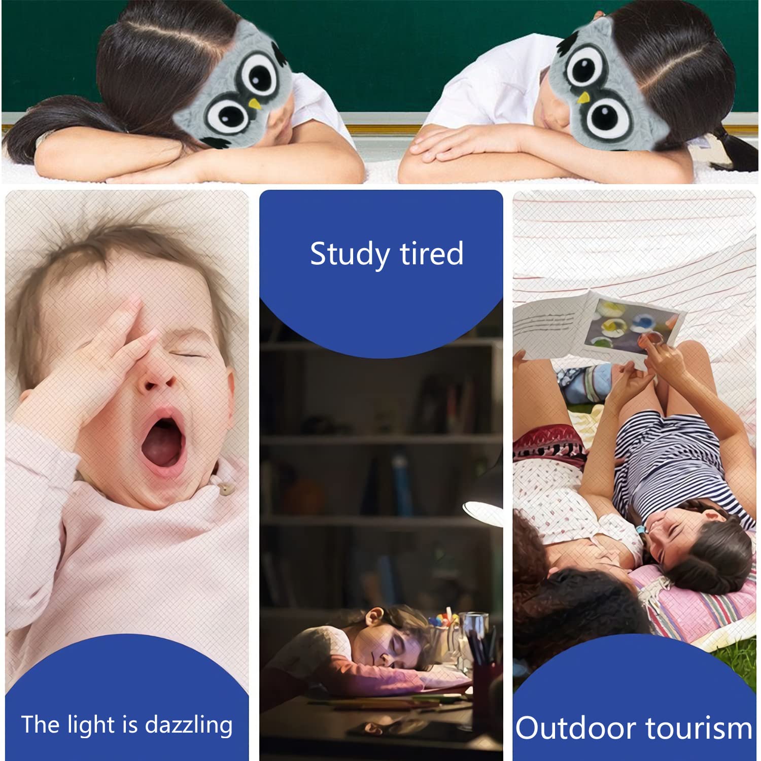3D Süsse Schlafmaske, Ultraweich schlafmaske kinder schlafbrille kinder mädchen für Mädchen Jungen Damen Nickerchen Reisen,weihnachtsgeschenke(Grau, Eule)