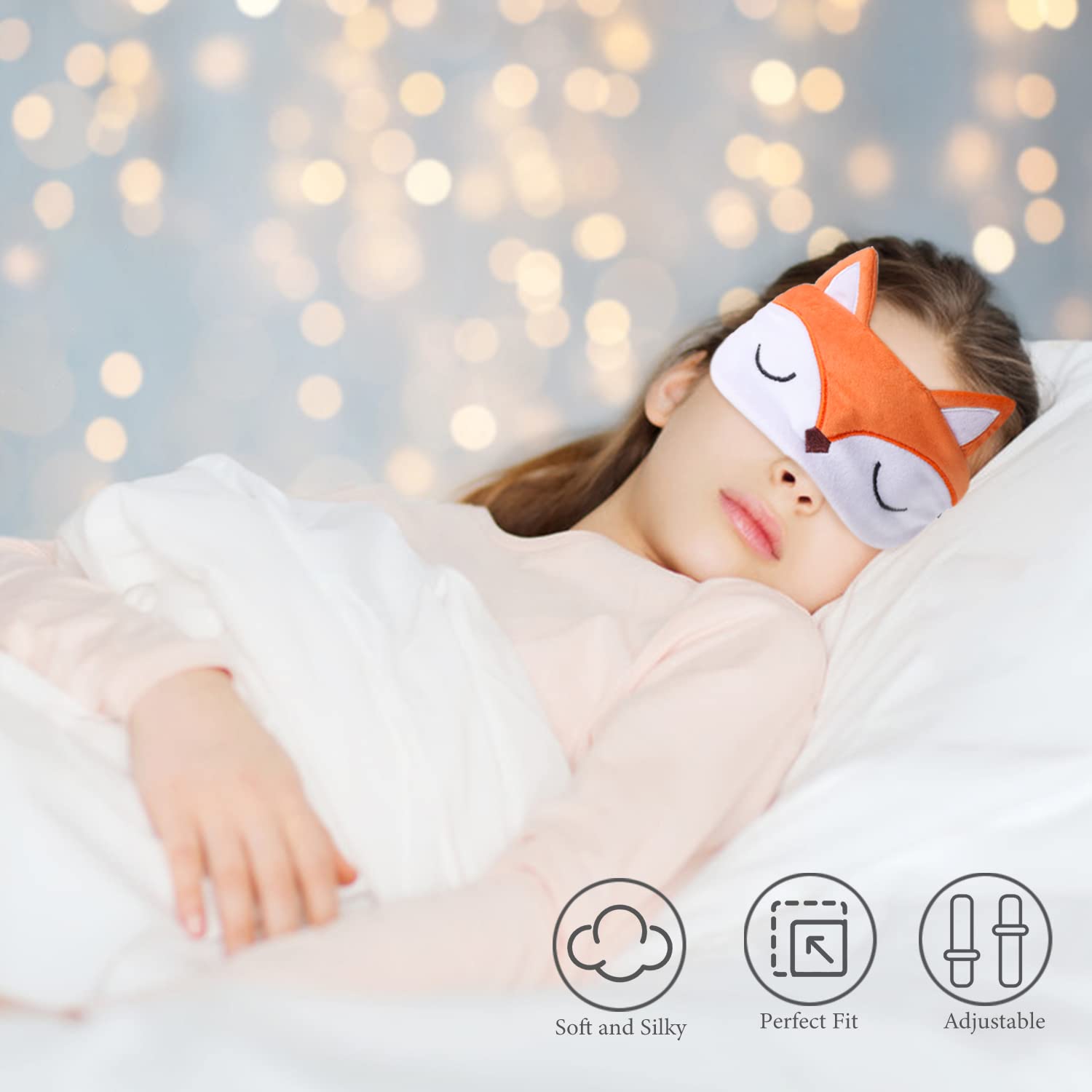 Schlafmaske Kinder, Ultraweich Schlafmaske Kinder Mädchen 3D Süsse Tiere Schlafbrille Kinder für Mädchen Jungen Damen Nickerchen Reisen,weihnachtsgeschenke(Orange, Fuchs)