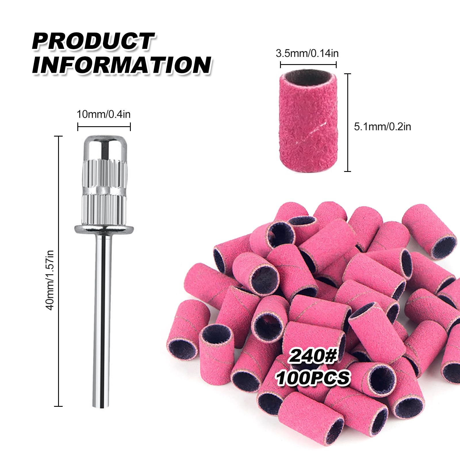 Diese Schleifhuelsen fuer Nagelfraeser mit 240 Grit eignen sich fuer feine Arbeiten bei der Manikuere und Nagelpflege. Sie sind fuer das Glätten, Polieren und Formen von Natur- und Gelnageln konzipiert und werden im Heimgebrauch sowie im professionellen Nagelstudio eingesetzt.