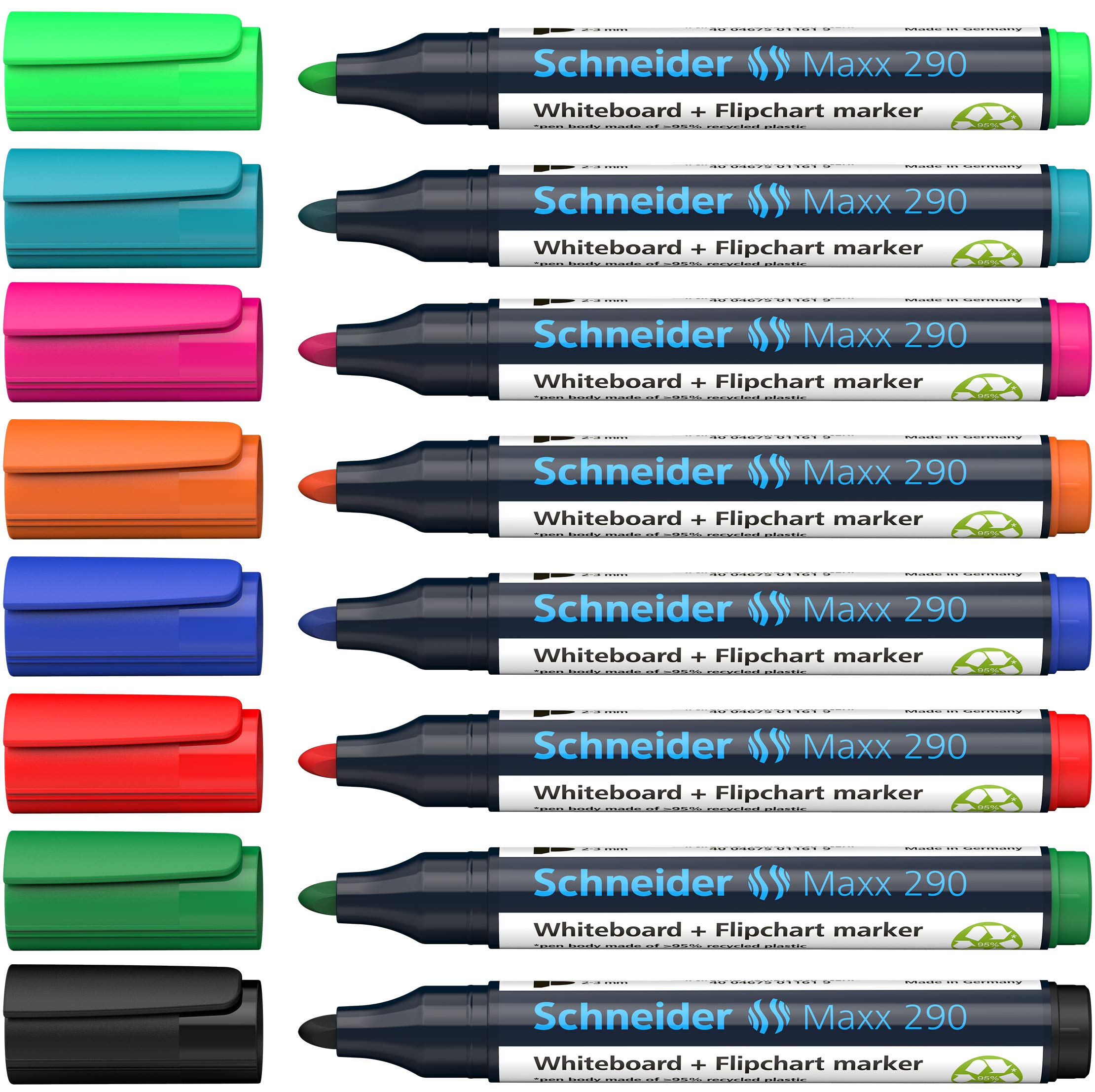 Schneider Maxx 290 Marker (für Whiteboards und Flipcharts, Rundspitze 2-3 mm Strichstärke, rückstandsfrei trocken abwischbar, hohe Qualität, kräftig und farbintensiv) Etui mit 8 Farben