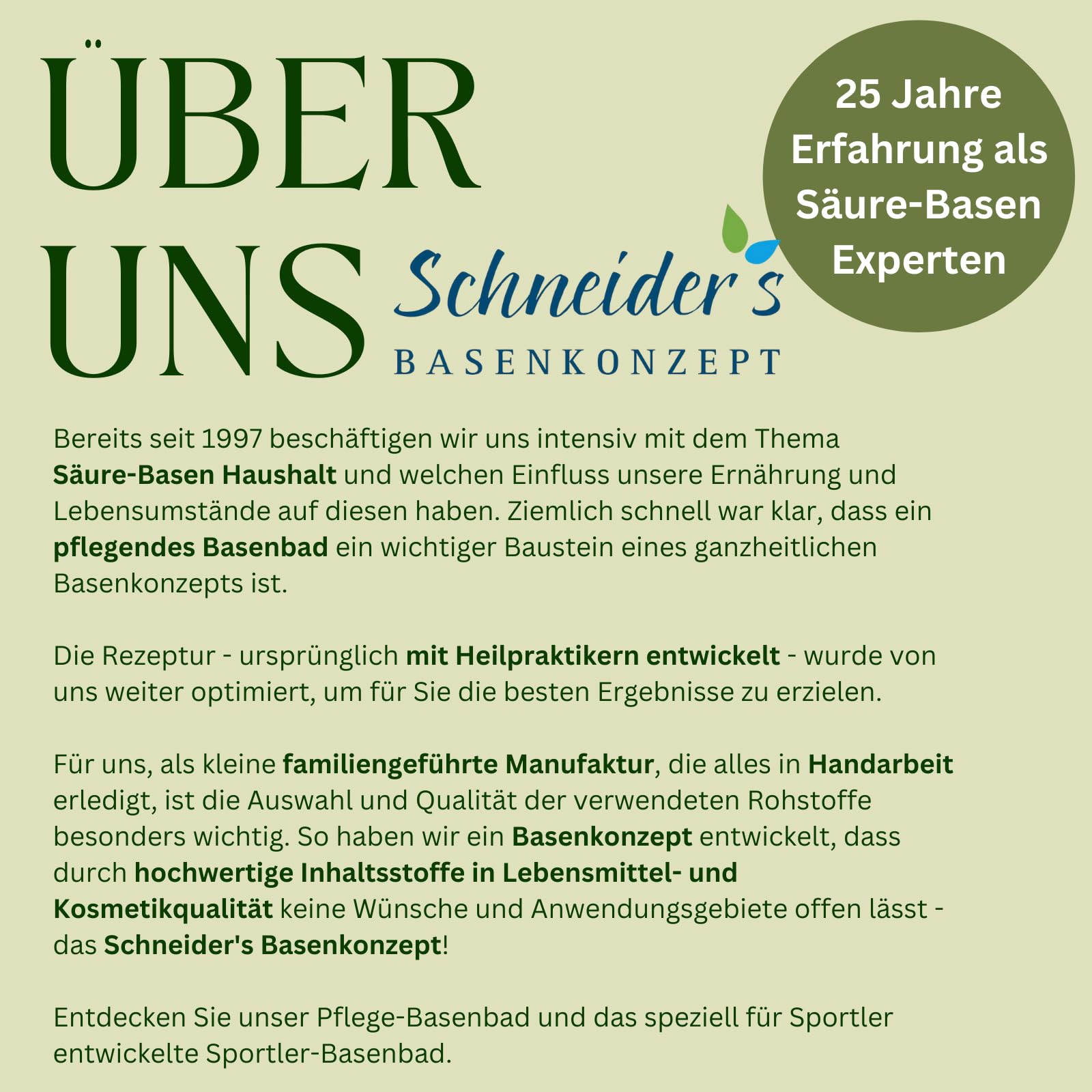 Schneider's Pflege-Basenbad 2800g (2 x 1400g) | Handmade in Germany | Von Heilpraktikern entwickelt | Basisches Badesalz zur Entsäuerung für samtweiche Haut | Unterstützt die Entgiftung mit pH 8,5