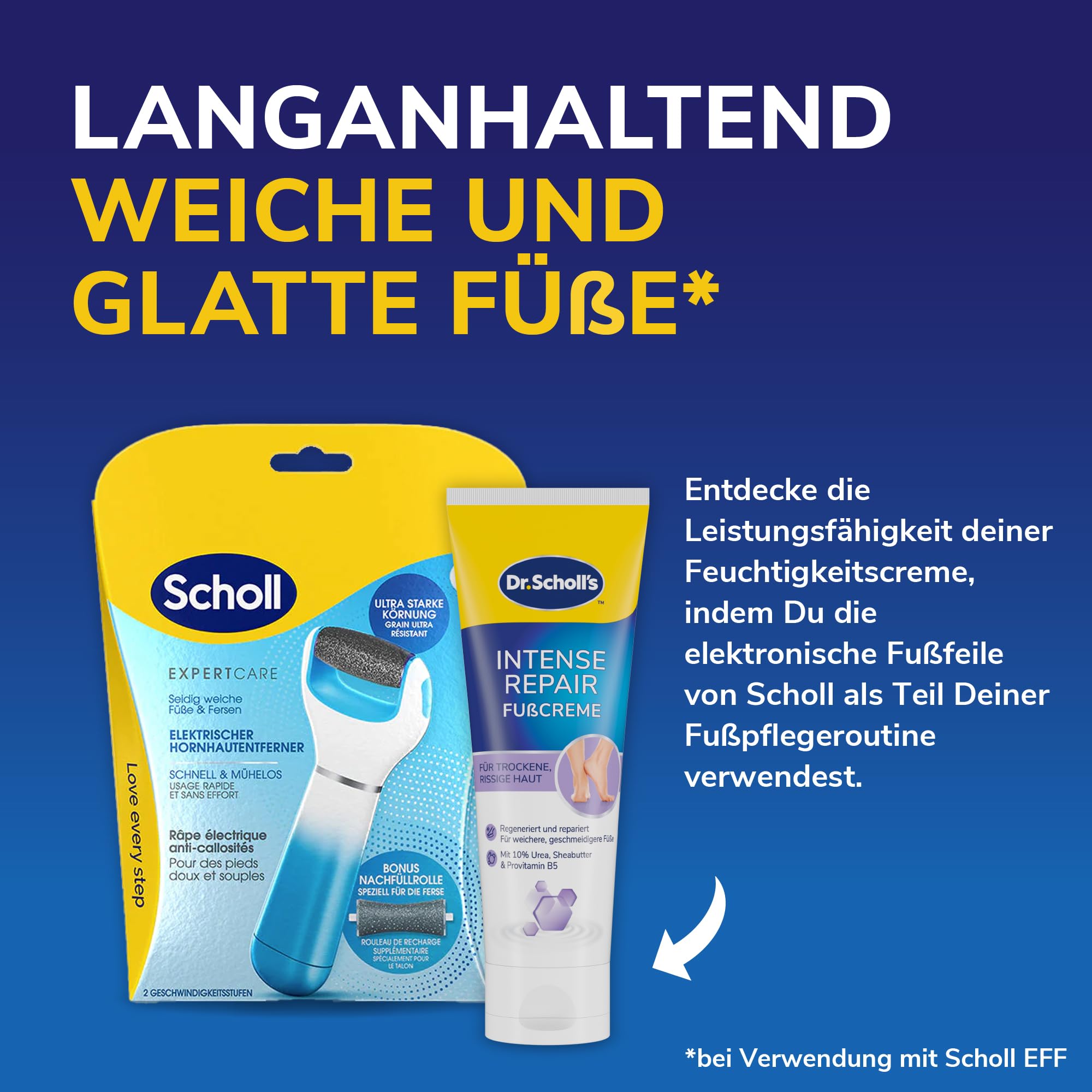 Gönnen Sie Ihren Füssen die intensive Pflege, die sie verdienen, mit der Scholl Intensive Fusscreme – für seidig weiche, gut gepflegte Füsse.