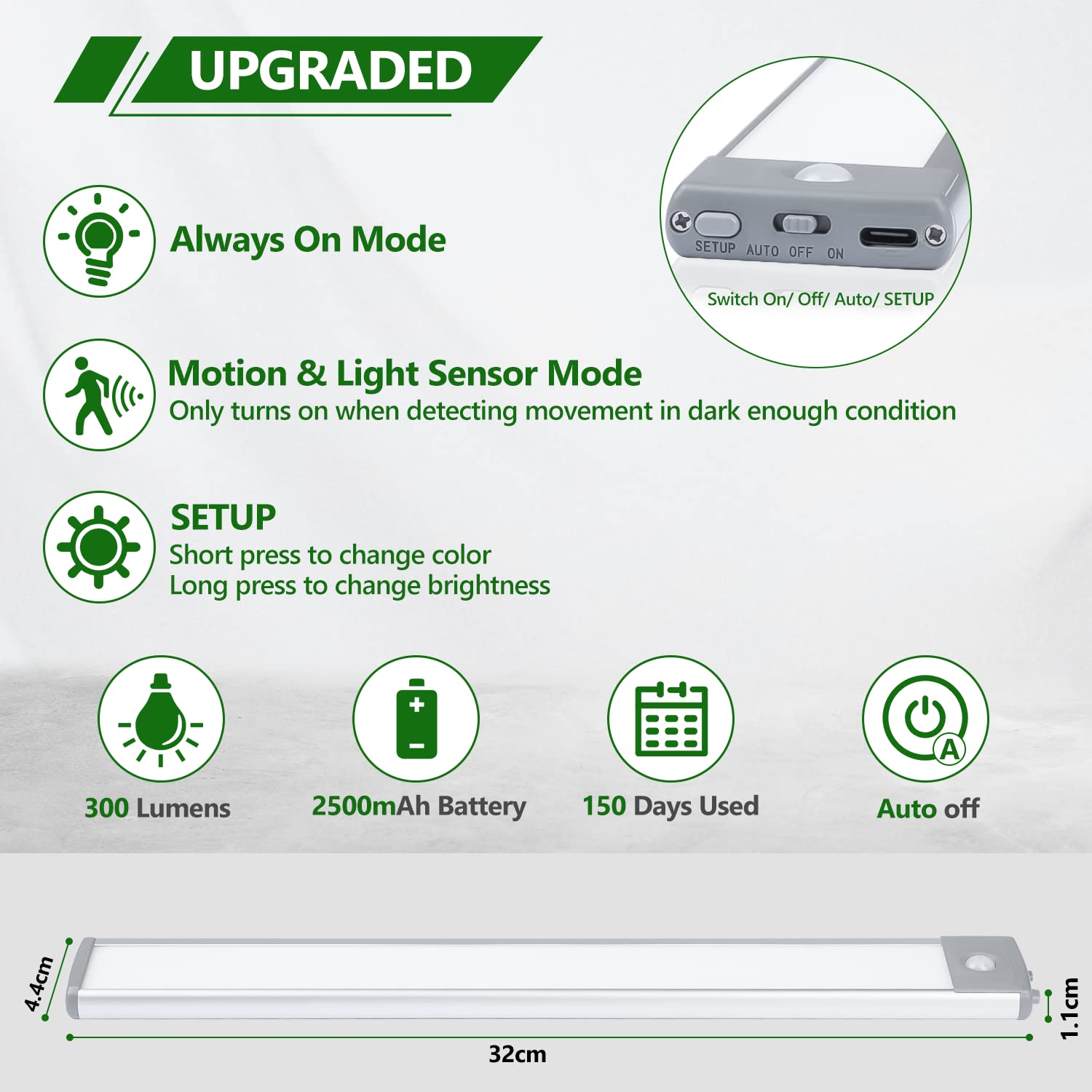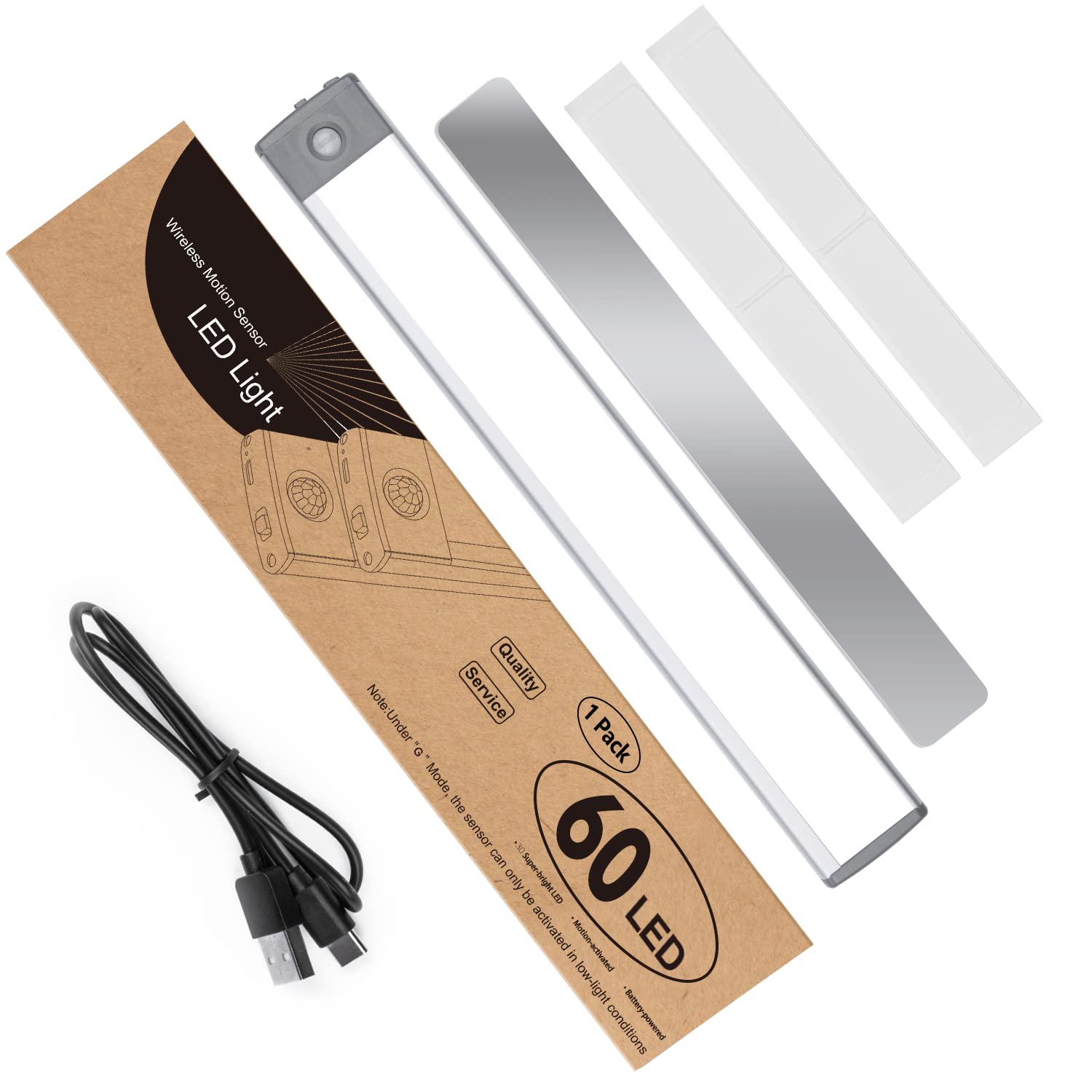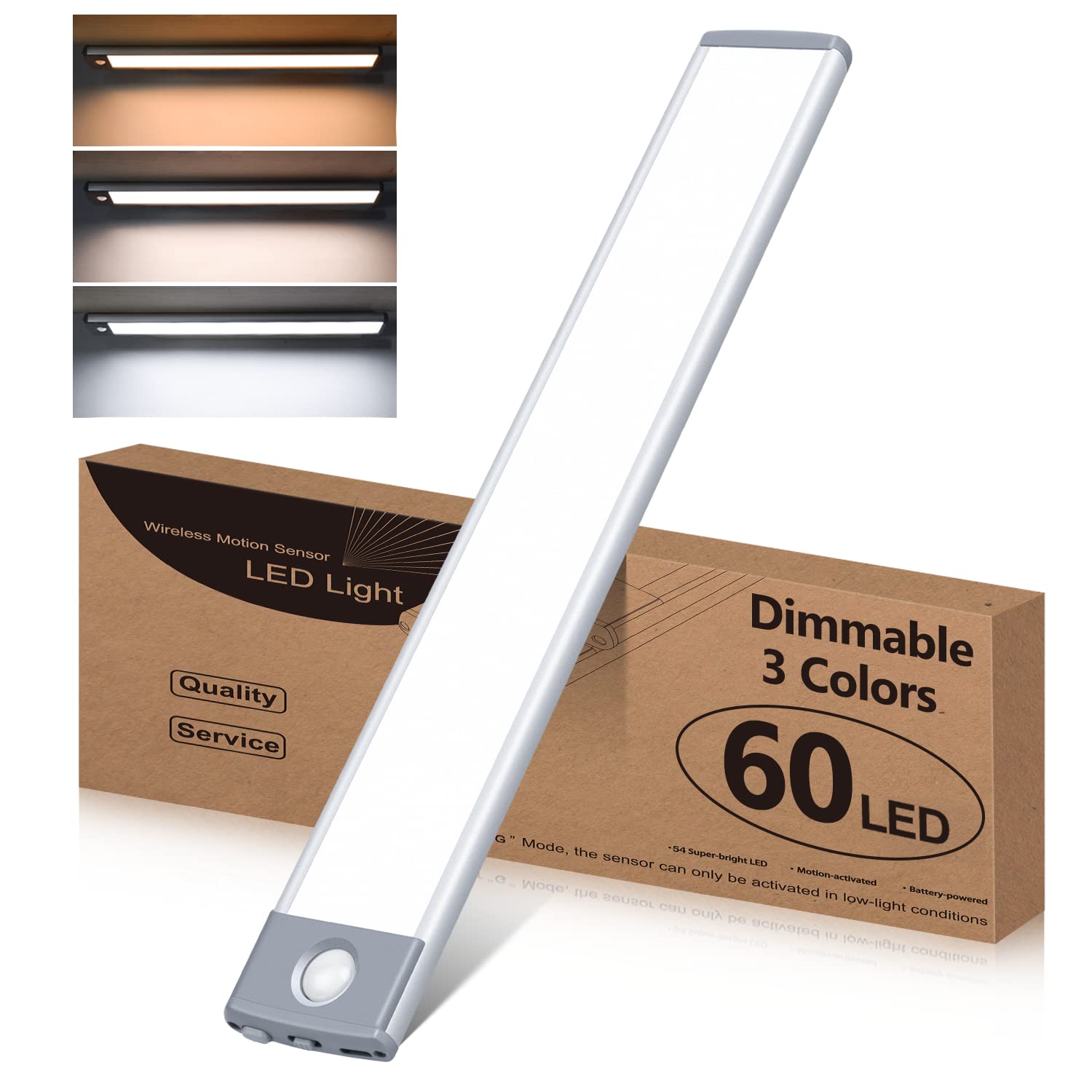 Schrankbeleuchtung Küchenleuchte mit 60 LED, 3 Farbtemperaturen, stufenloses Dimmen, Bewegungsmelder-Leuchten für den Innenbereich, Kleiderschrankleuchte, wiederaufladbar über USB, Unterschrankbel