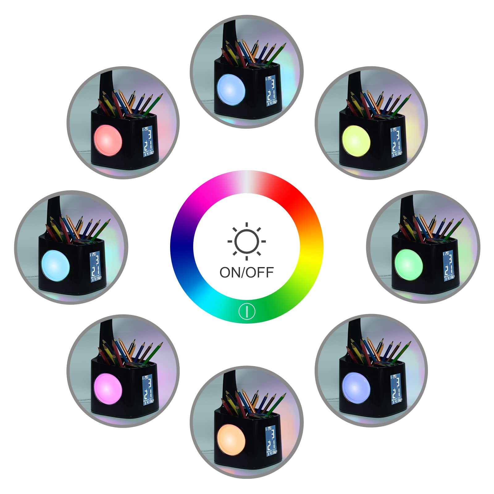 Wanjiaone Schreibtischlampe Kinder LED,Tischlampe Dimmbar mit Uhr, Nachttischlampe Tischleuchte mit 256 RGB Nachtlicht/Stifthalter/USB-Anschluss/3 Helligkeitsstufen/Wecker/für Studium, Büro