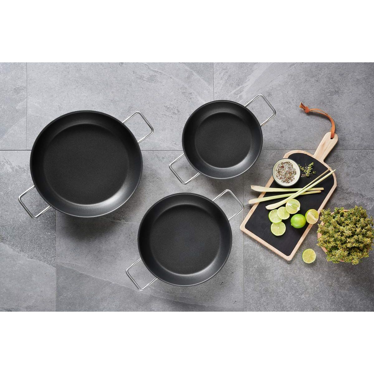 Schulte-Ufer Industar for Professionals Schmorpfanne mit Griffen aus Edelstahl in der Farbe Silber-Schwarz, Durchmesser: 28cm, 163048-28