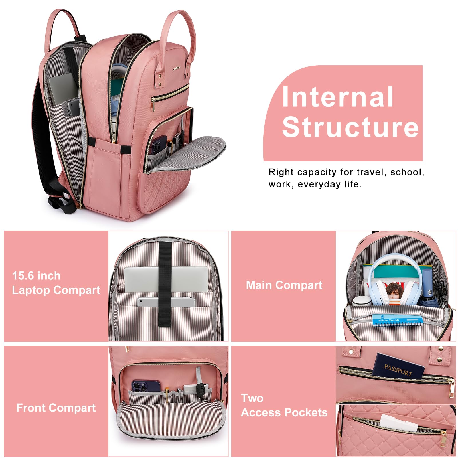 YAMTION Rucksack Damen,Schulrucksack Frauen Schultasche Mädchen Teenager Tagesrucksack mit USB und Laptopfach für Schule Universität Büro Arbeit Stadt