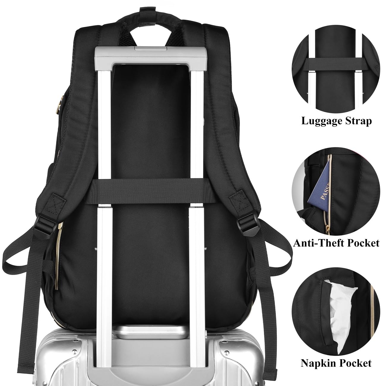 Schwarz Rucksack Damen,Schulrucksack Frauen Schultasche Mädchen Teenager Tagesrucksack mit USB und Laptopfach für Schule Universität Büro Arbeit Stadt,Geschenke für Muttertag Geburtstag Valentinstag