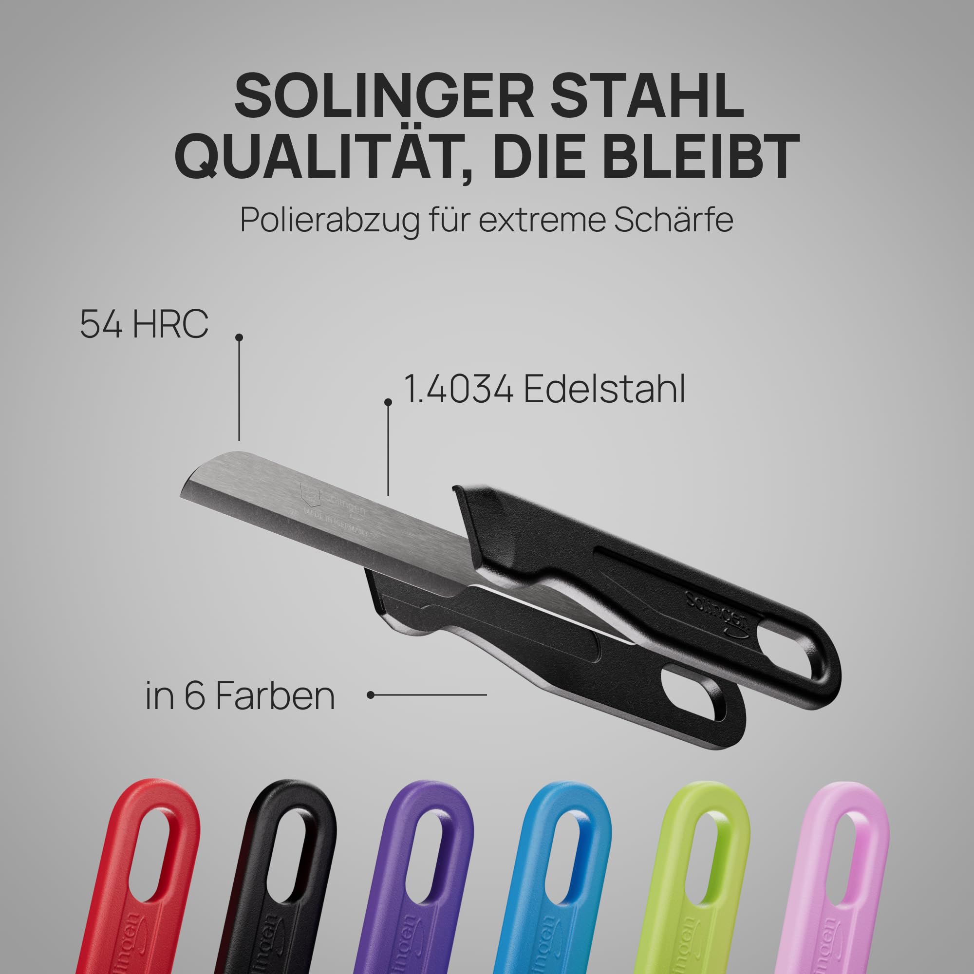 Schwertkrone® Schälmesser 6er Set [MADE IN SOLINGEN - GERMANY] - Gemüsemesser Obstmesser - Küchenmesser klein scharf - Schneidemesser Kartoffelschälmesser - Allzweckmesser (6x bunt - 6cm Klinge)