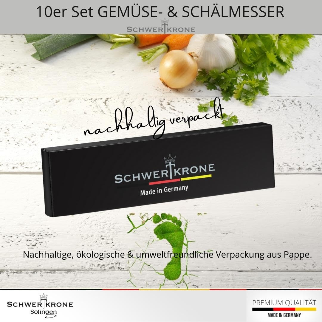 Schwertkrone® Schälmesser 10er Set [MADE IN SOLINGEN - GERMANY] - Gemüsemesser Obstmesser - Küchenmesser klein scharf - Schneidemesser Kartoffelschälmesser - Allzweckmesser (10x schwarz - 6cm Klinge)