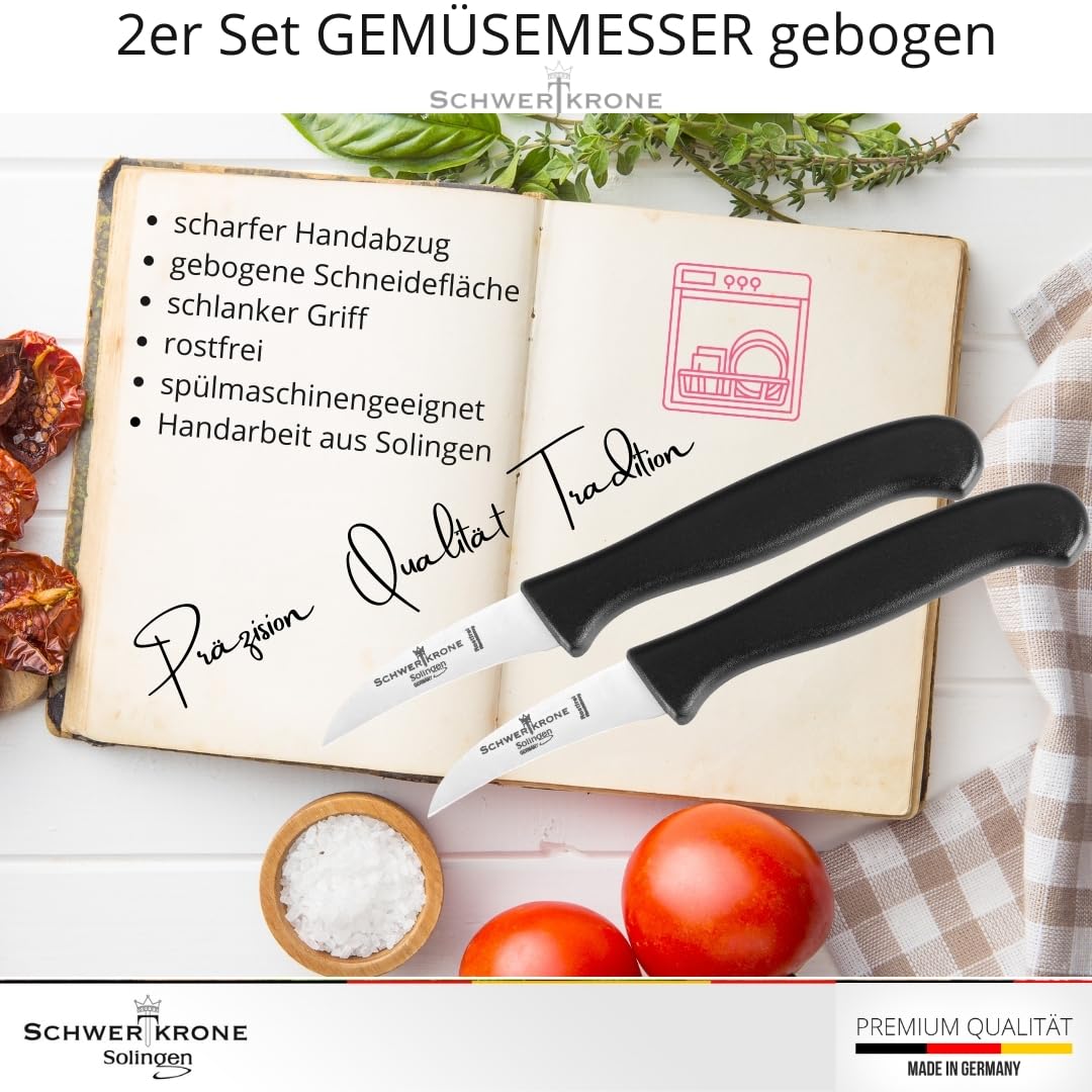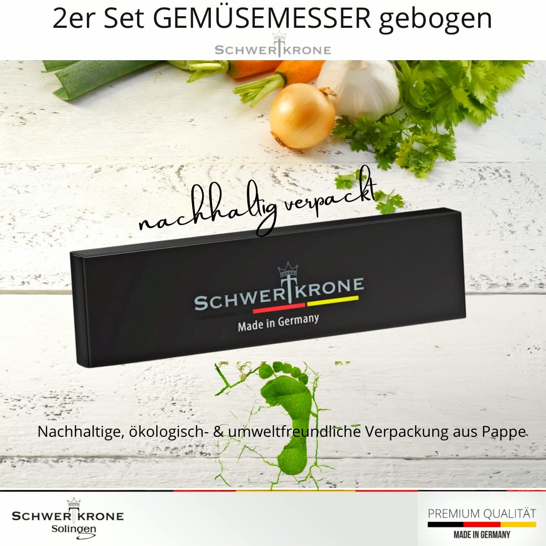 Schwertkrone® Schälmesser gebogen 2er Set [MADE IN SOLINGEN - GERMANY] - Gemüsemesser Obstmesser - Küchenmesser klein scharf - Schneidemesser Kartoffelschälmesser - Allzweckmesser (2x6cm gebogen)