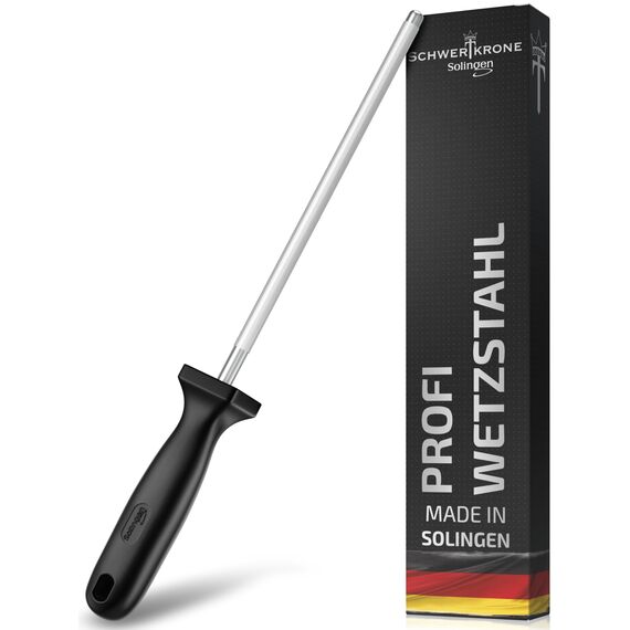 SCHWERTKRONE® Wetzstahl für Messer [MADE IN SOLINGEN - GERMANY] - Messerschärfer Stab - Wetzstab Messerstahl - Messerschärfer Knife Sharpener - Höchste Qualtiät für Profis (Chrom Vanadium) - 34cm