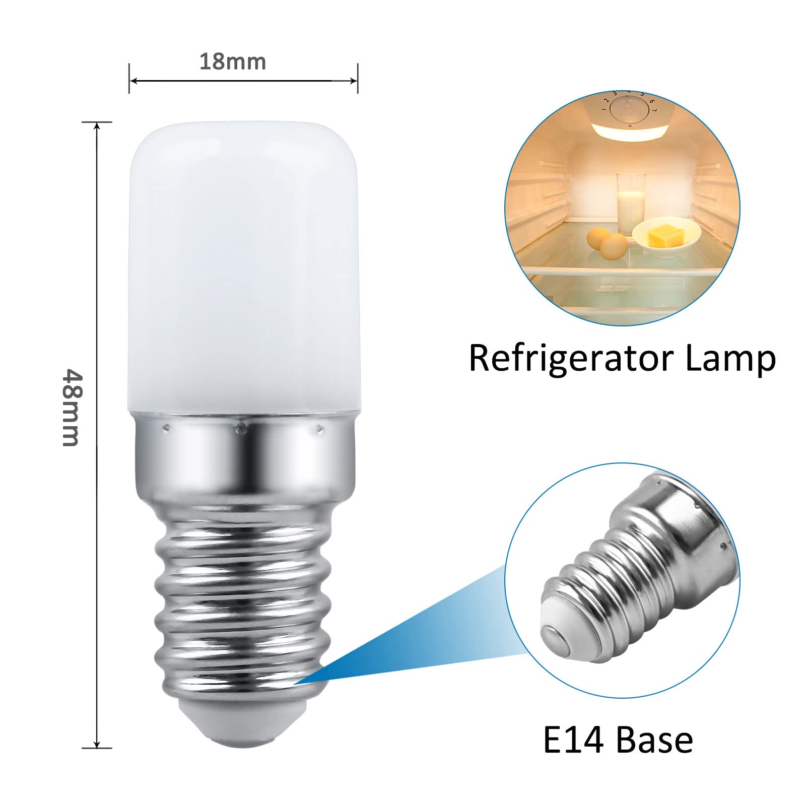 SCNNC LED Lampen T18 E14 Kühlschranklampe 3W AC230V, 300LM Warmweiss 3000K, Nicht Dimmbar, Entspricht 30W Glühlampe, E14 LED für Kühlschrank, Salzlampe, Nähmaschine, Nachtlicht, 2 Stück