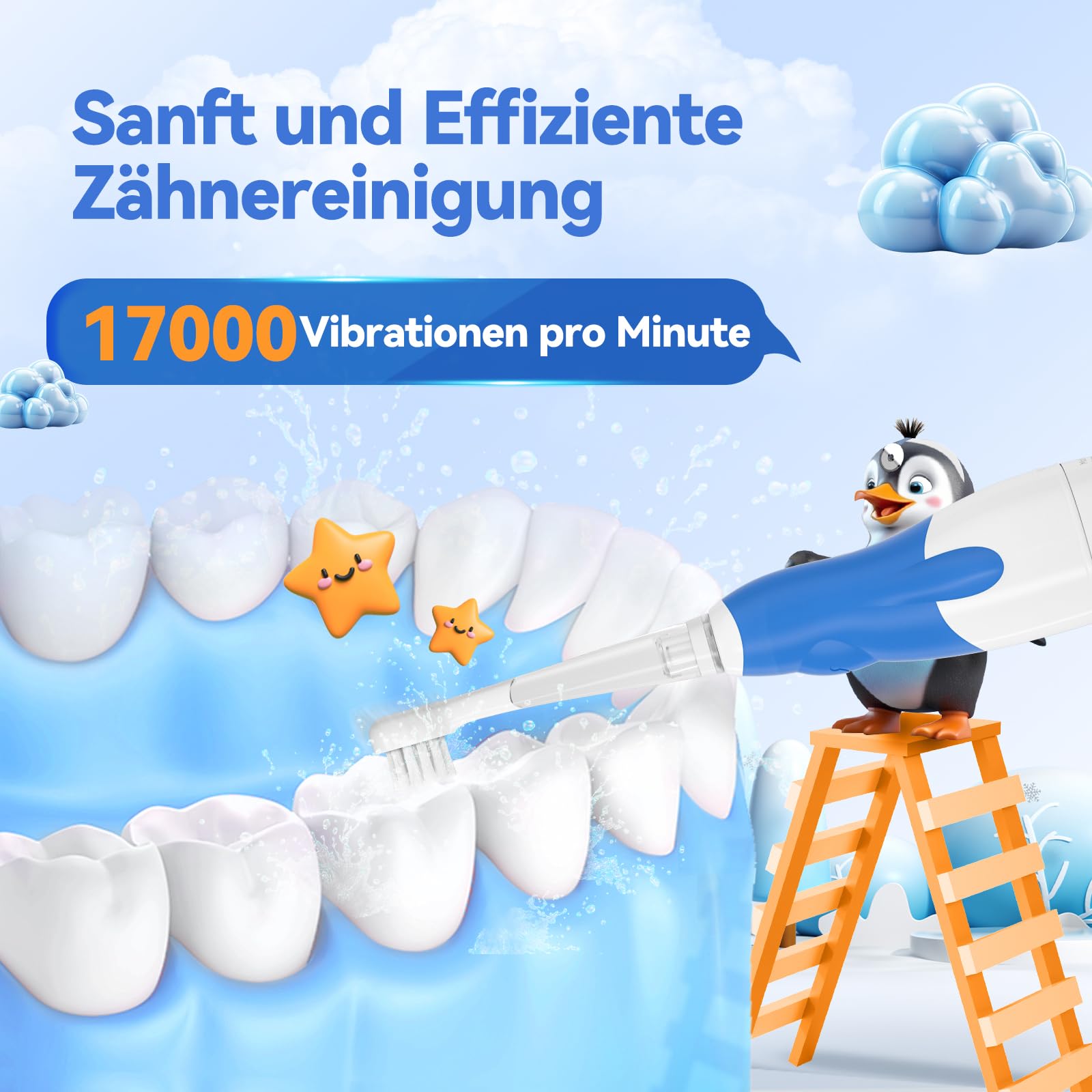 Elektrische Zahnbürste Kinder Seago Diese Schall Zahnbürste funktioniert duch Vibration. Sie ist für Kinder ab 1 Jahr geeignet. Niedliche Form macht Kindern viel Spass beim Zähneputzen. Elektrische Zahnbürsten ermöglichen es Kindern, gute Gewohnheiten des selbständigen Zähneputzens zu entwickeln und ihre Zähne effizient zu putzen. Smart Timer hilft Kindern beim Bilden einer gute Gewohnheit von Zähneputzen.