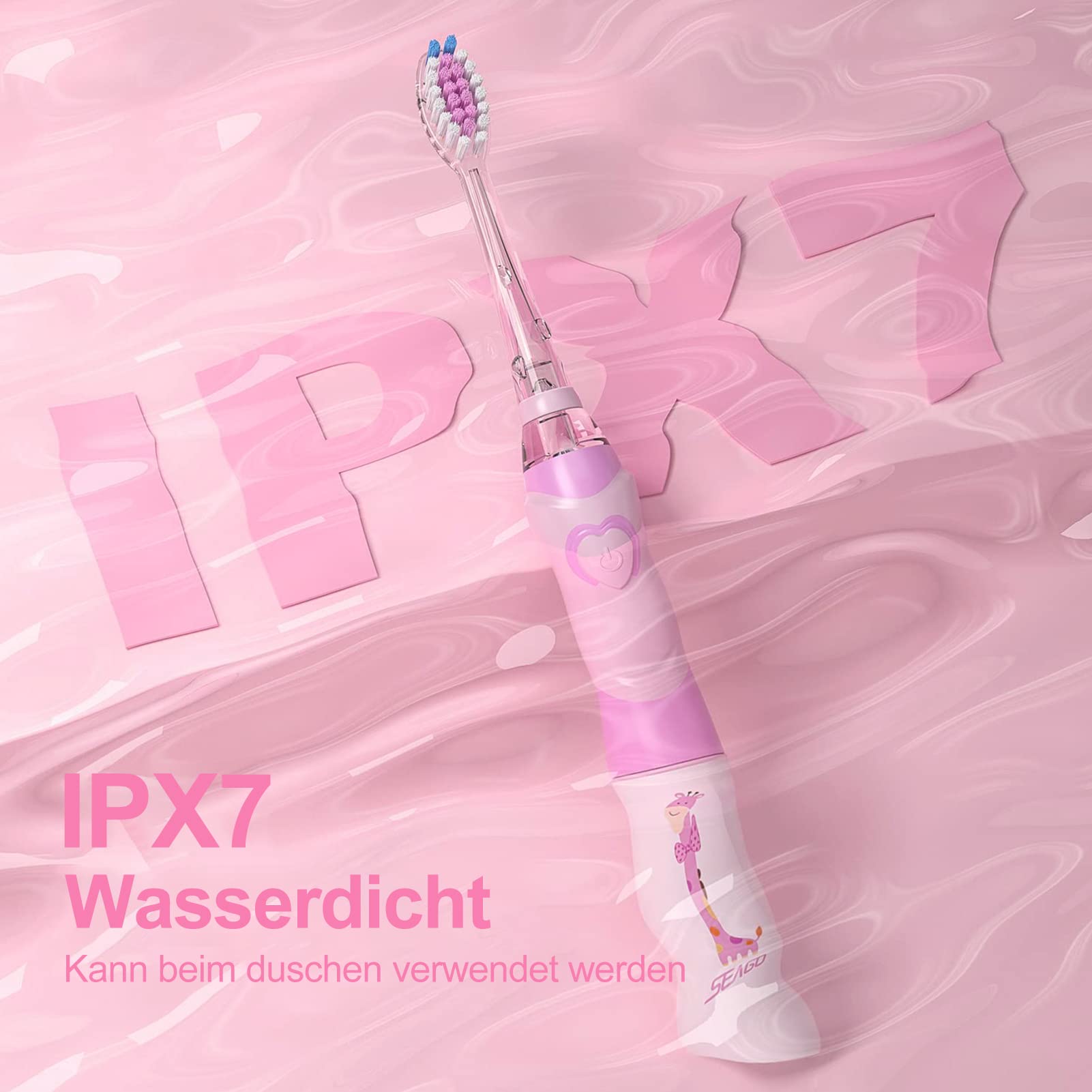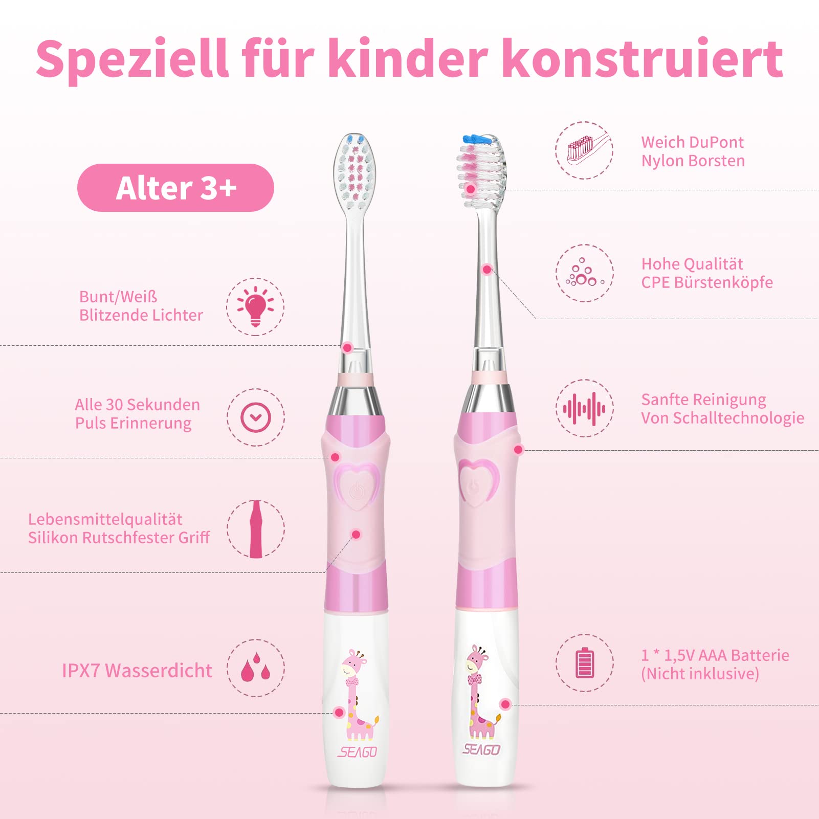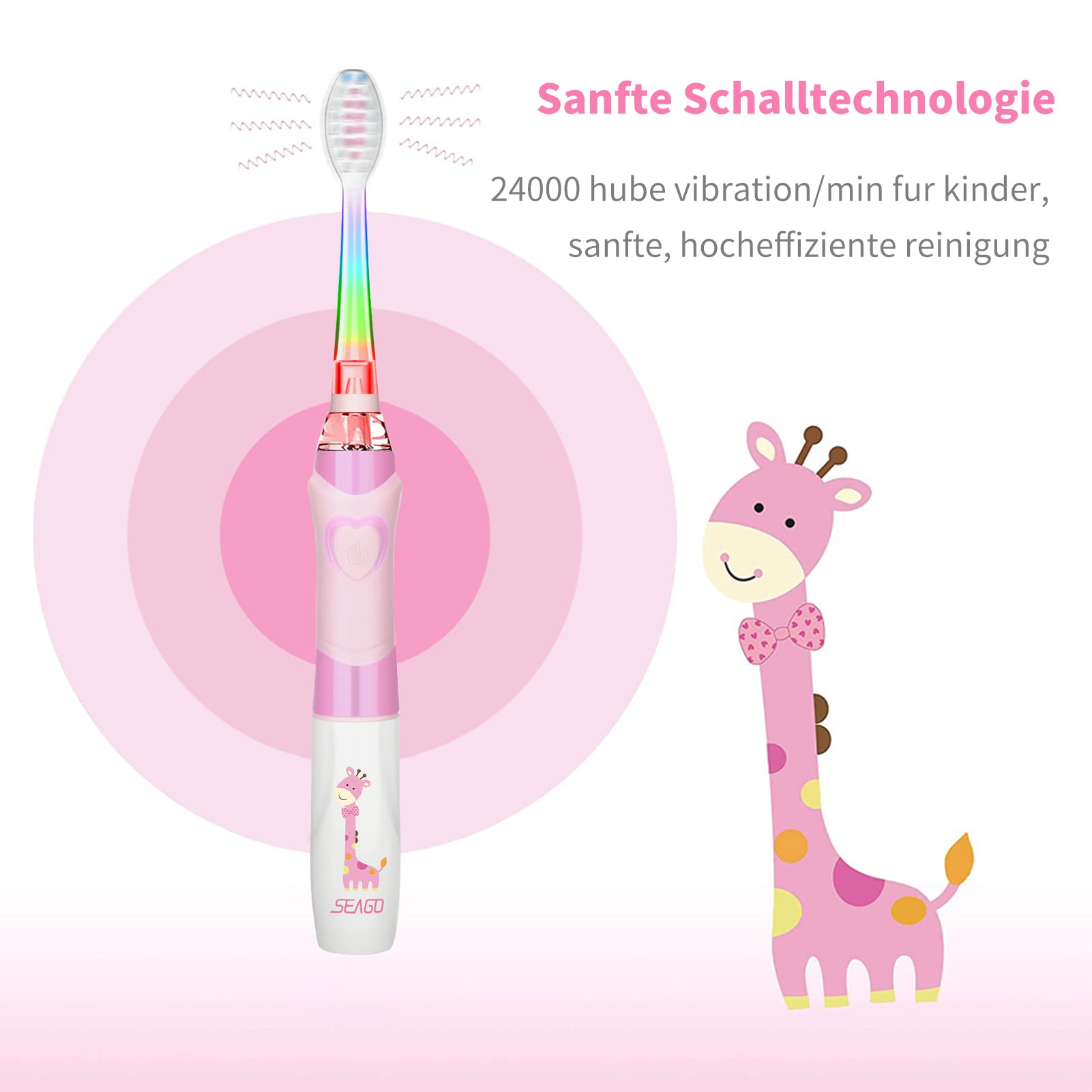 Seago Elektrische Zahnbürste Kinder ab 3-12 jahre Kinderzahnbürsten mit Farbigem Licht Smart Timer 4 Weich Bürstenköpfes Wasserdicht Baby Schallzahnbürste für Mädchen Jungen SG-977 (Rosa)