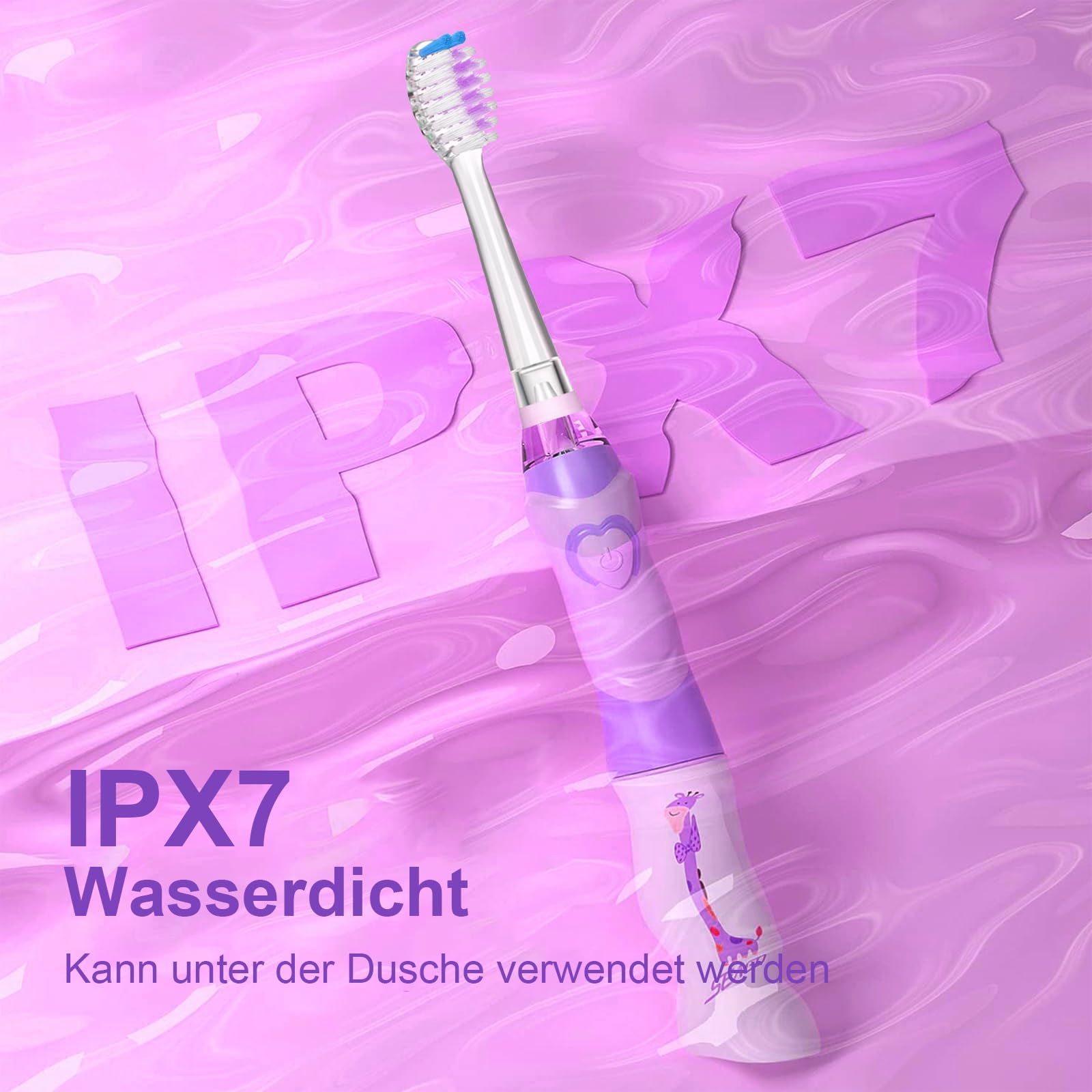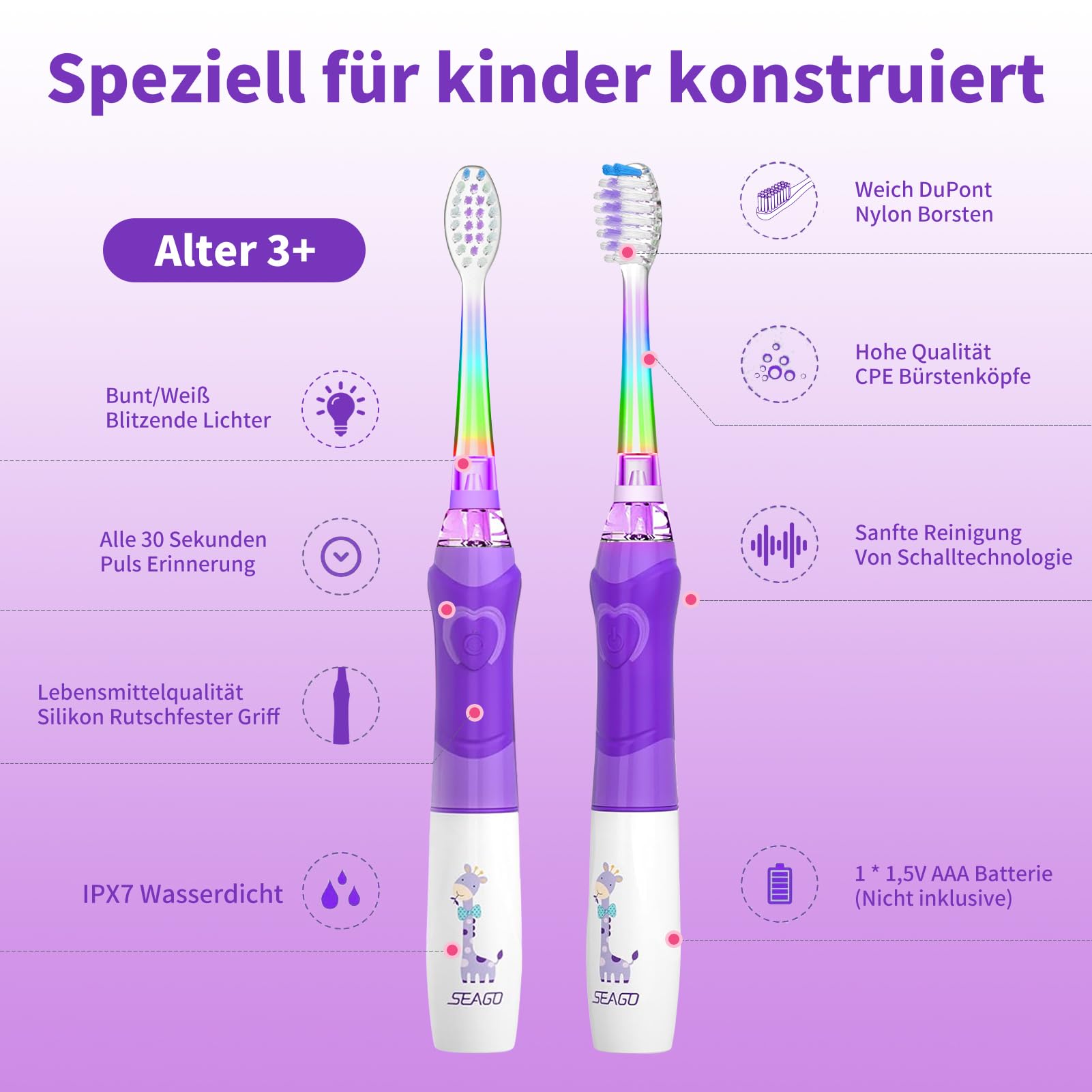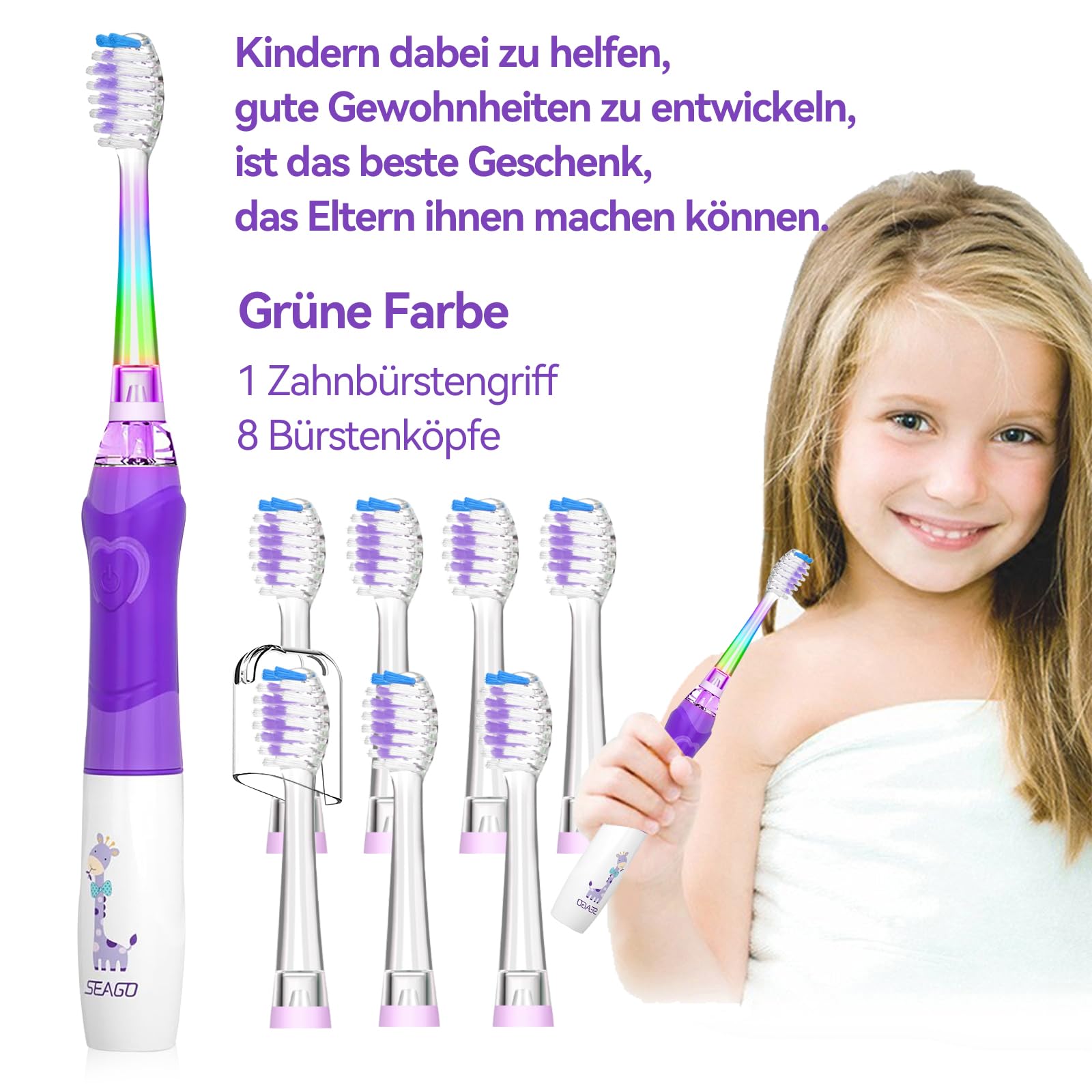 Seago Elektrische Zahnbürste Kinder ab 3-12 jahre Kinderzahnbürsten Elektrisch mit Farbigem Licht Smart Timer 8 Weich Bürstenköpfes Wasserdicht Baby Schallzahnbürste SG977 (Violett-8-DE)