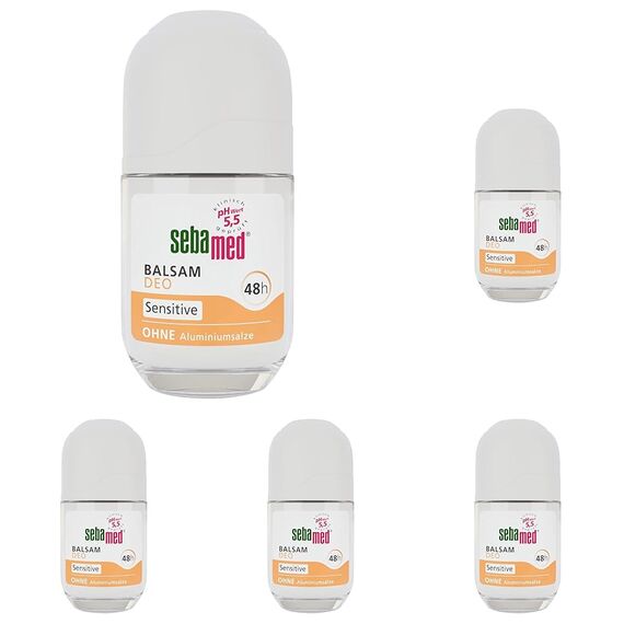 SEBAMED Balsam Deo Sensitive Roll-on, zuverlässiger Schutz vor Körpergeruch, 48h Wirkung, besonders hautverträglich, ohne Aluminiumsalze, 50 ml (Packung mit 5)