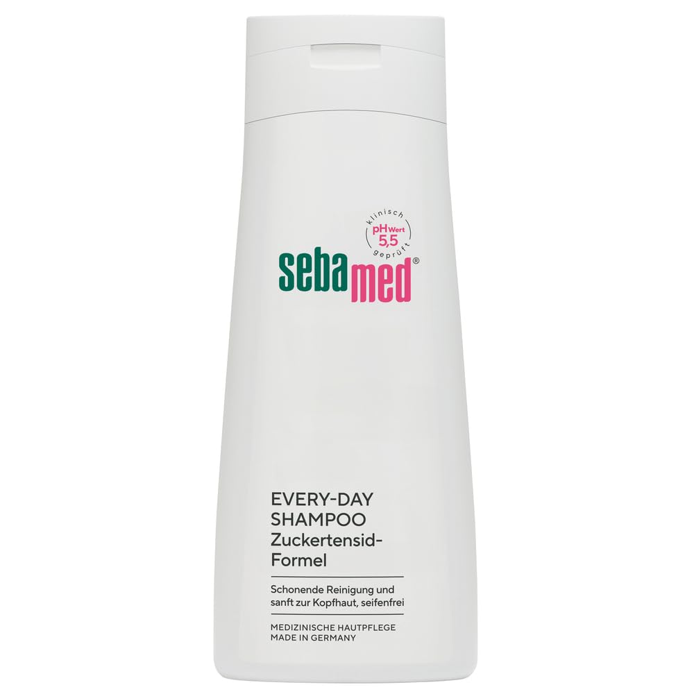 Every-Day Shampoo, Zuckertensid-Formel. Schonende Reinigung, sanft zur Kopfhaut, seifenfrei. Die besonders mild reinigende Zuckertensid-Formel hilft die Kopfhaut und das Haar vor Austrocknung zu schützen. Der pH-Wert 5,5 von sebamed stärkt die Funktion des natürlichen Hautschutzmantels auch gegen schädliche Umwelteinflüsse für gesunde Kopfhaut und kräftiges Haar. Unser Umweltversprechen: 0% Mikroplastik, 0% Silikone, vegan. sebamed Produkte sind in über 400 Studien dermatologisch-klinisch getestet. Medizinische Hautpflege. Made in Germany. FÜR DIE TÄGLICHE HAARWÄSCHE: Besonders milde Reinigung für die tägliche Haarwäsche – dank besonders sanfter, waschaktiver Zuckertenside. Die speziell entwickelte Tensid-Kombination reinigt schonend und hilft, Haar und Kopfhaut vor Austrocknung zu schützen. Das Haar erhält mehr duftige Fülle und seidigen Glanz FÜR GESUNDE HAUT: Der pH-Wert 5,5 von sebamed stärkt die Funktion des natürlichen Hautschutzmantels auch gegen schädliche Umwelteinflüsse für gesunde Kopfhaut und kräftiges Haar. Medizinische Hautpflege QUALITÄT MADE IN GERMANY: Unsere Produkte werden in Deutschland entwickelt, getestet und hergestellt. Die Qualität ist durch ausgewählte Rohstoffe und kontrollierte Fertigungsprozesse garantiert. Sebamed Produkte sind in über 400 Studien dermatologisch-klinisch getestet DERMATOLOGISCH-KLINISCH BESTÄTIGT: Unsere Produktserie für empfindliche Haut hilft, den natürlichen Hautschutzmantel zu stabilisieren und die Haut widerstandsfähiger gegen Umweltreize zu machen. Alle Bestandteile wurden sorgfältig ausgewählt. Die Verträglichkeit und Pflegewirkung sind dermatologisch-klinisch geprüft und bestätigt. Dadurch und durch den hautfreundlichen pH-Wert 5,5 trägt diese Pflegeserie nachweislich dazu bei, das Risiko für Hautreaktionen auf innere und äussere Reize spürbar zu vermindern UNSER UMWELTVERSPRECHEN: 0 % Mikroplastik 0 % Silikone 0 % PEG vegan