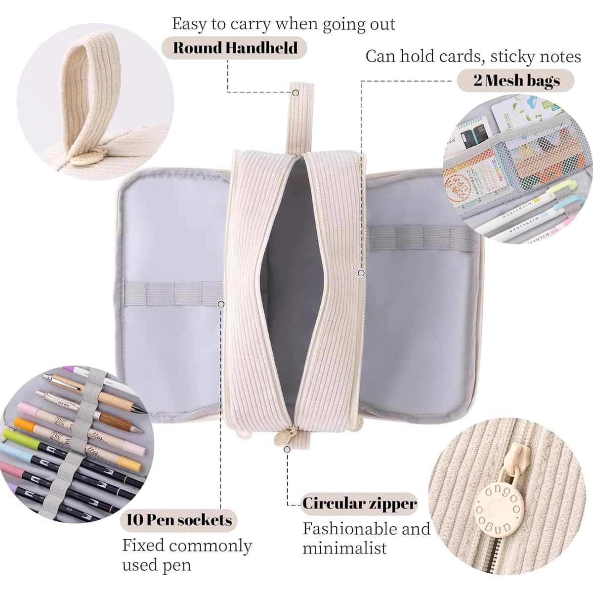 Federmäppchen Federtaschen Mädchen Mäppchen, Grosse Kapazität Pencil Case Cord Federmäppchen für Schule & Büro Erwachsener Mädchen Geschenk, Cream