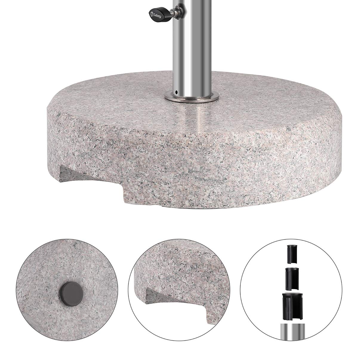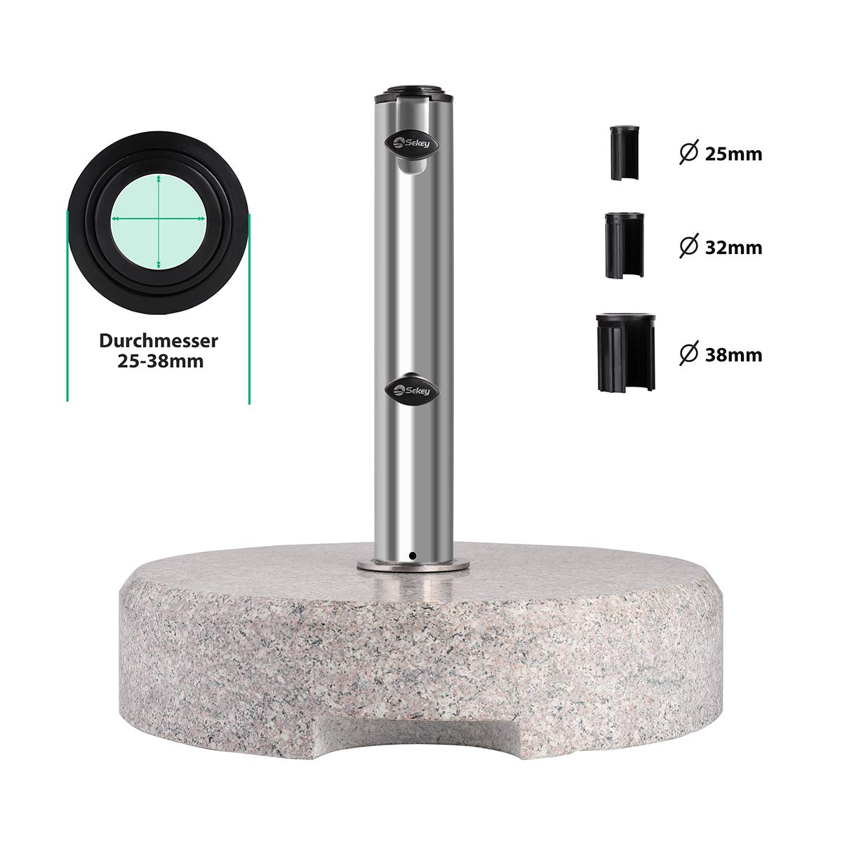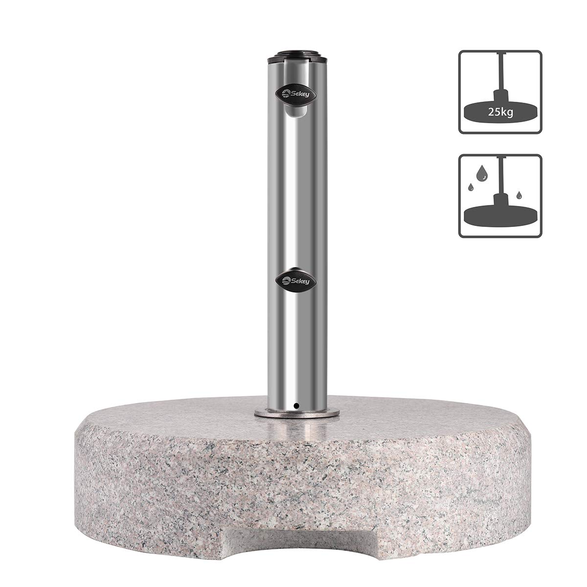 Sekey Granit Sonnenschirmständer mit Edelstahlrohr, Hochwertiger Sockel, für Schirmstöcke bis 22-38 mm, Balkonschirmständer 25KG Rund Grau