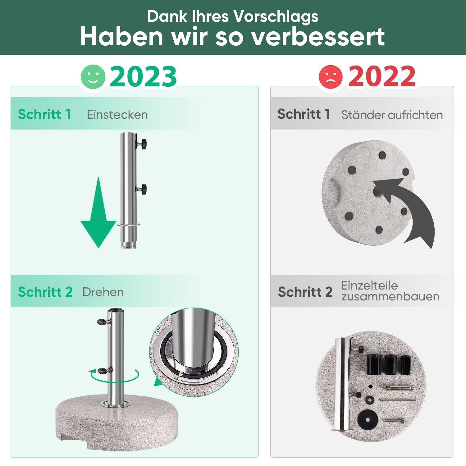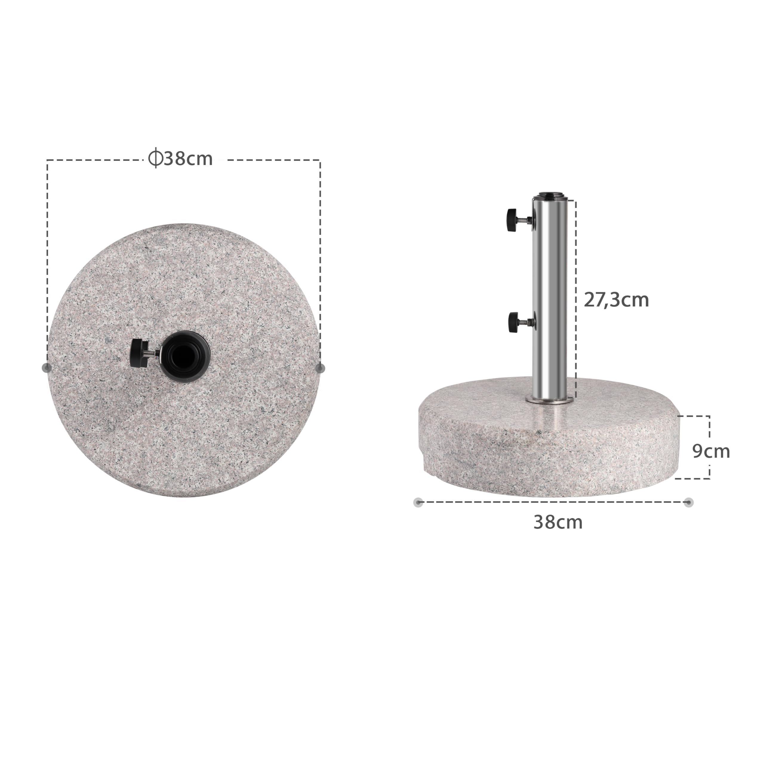 Granit Sonnenschirmständer mit Edelstahlrohr, Hochwertiger Sockel, für Schirmstöcke