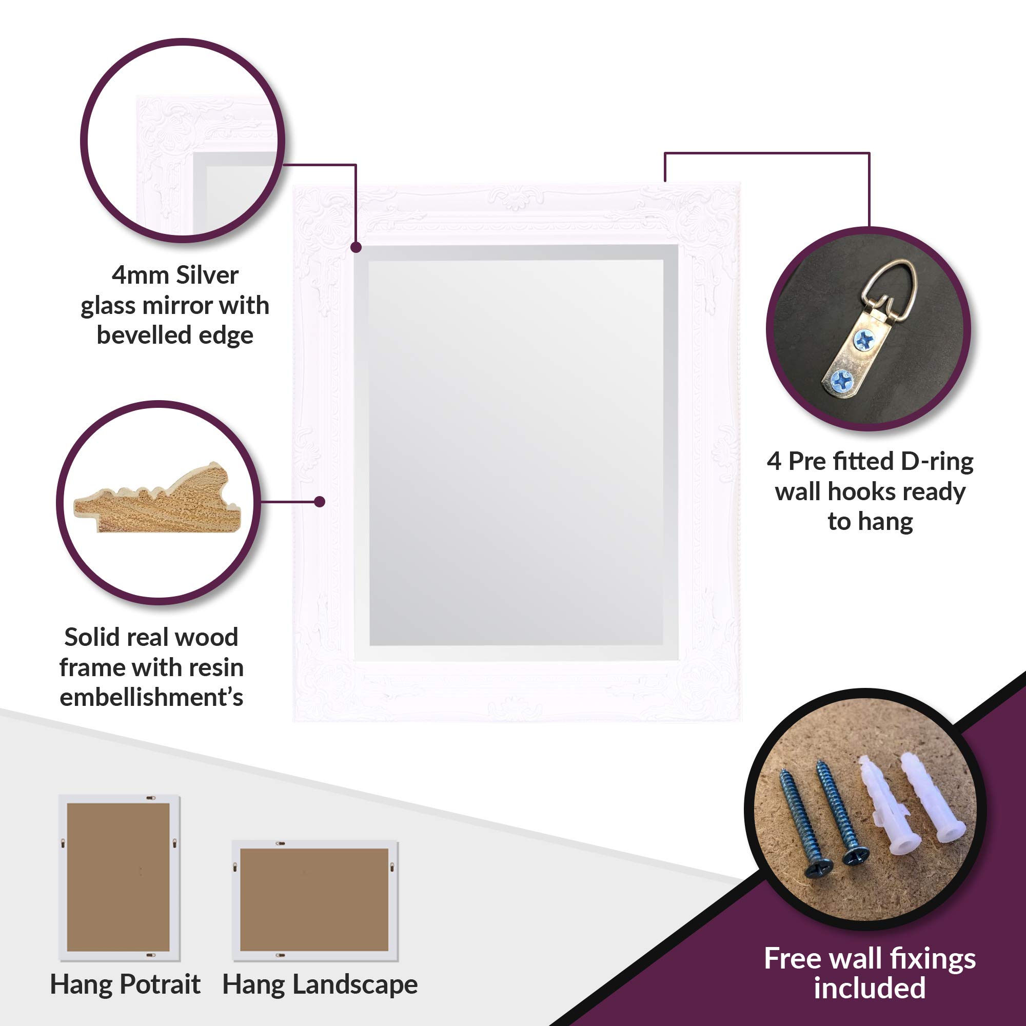 Select Mirrors Rhone Wandspiegel Wandspiegel Vintage Barock Antik 50 x 60 cm (Weiss Matt)