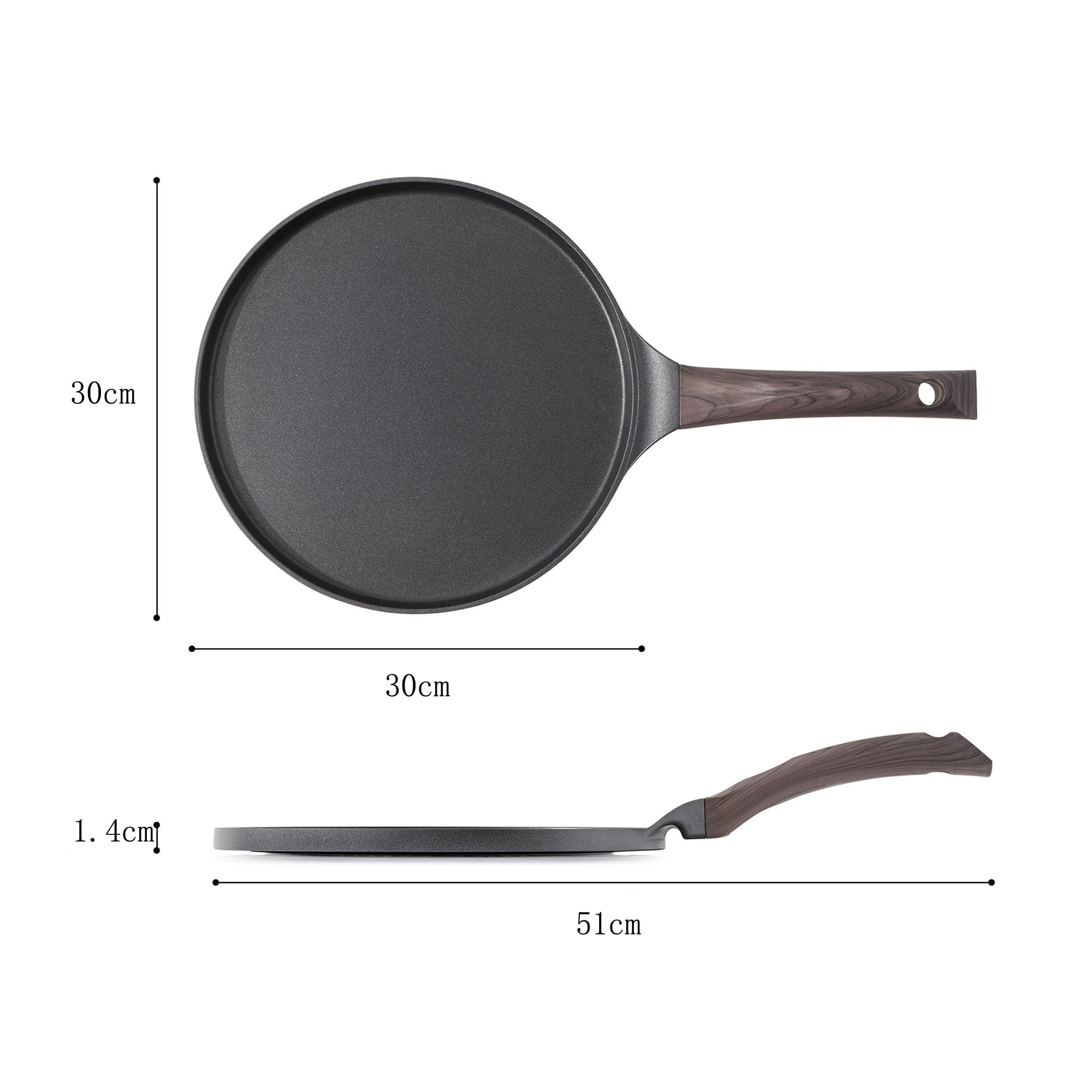 SENSARTE Schwarze Crepe Pfanne 30cm Antihaftpfanne Omlettpfanne Pfannkuchen flache Pfanne mit Schweizer Granit Antihaftversiegelung, Bakelitegriff, Induktions Kompatibel, PFOA PFOS Frei