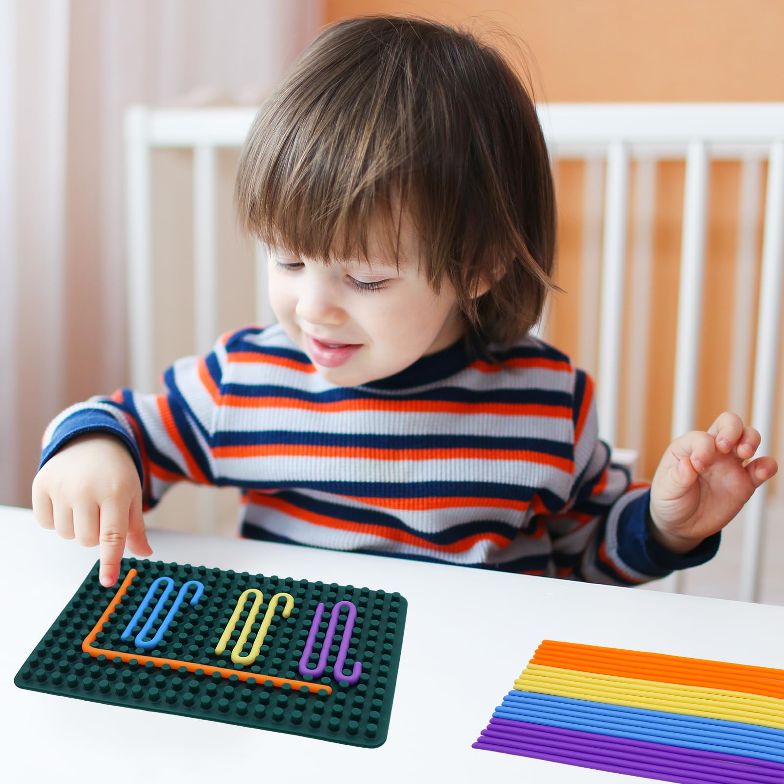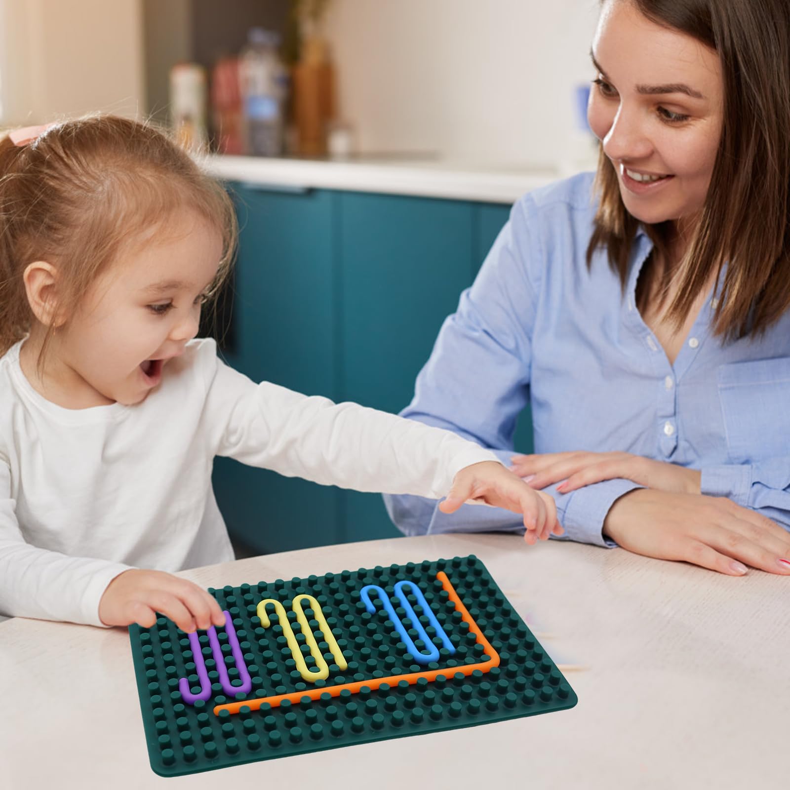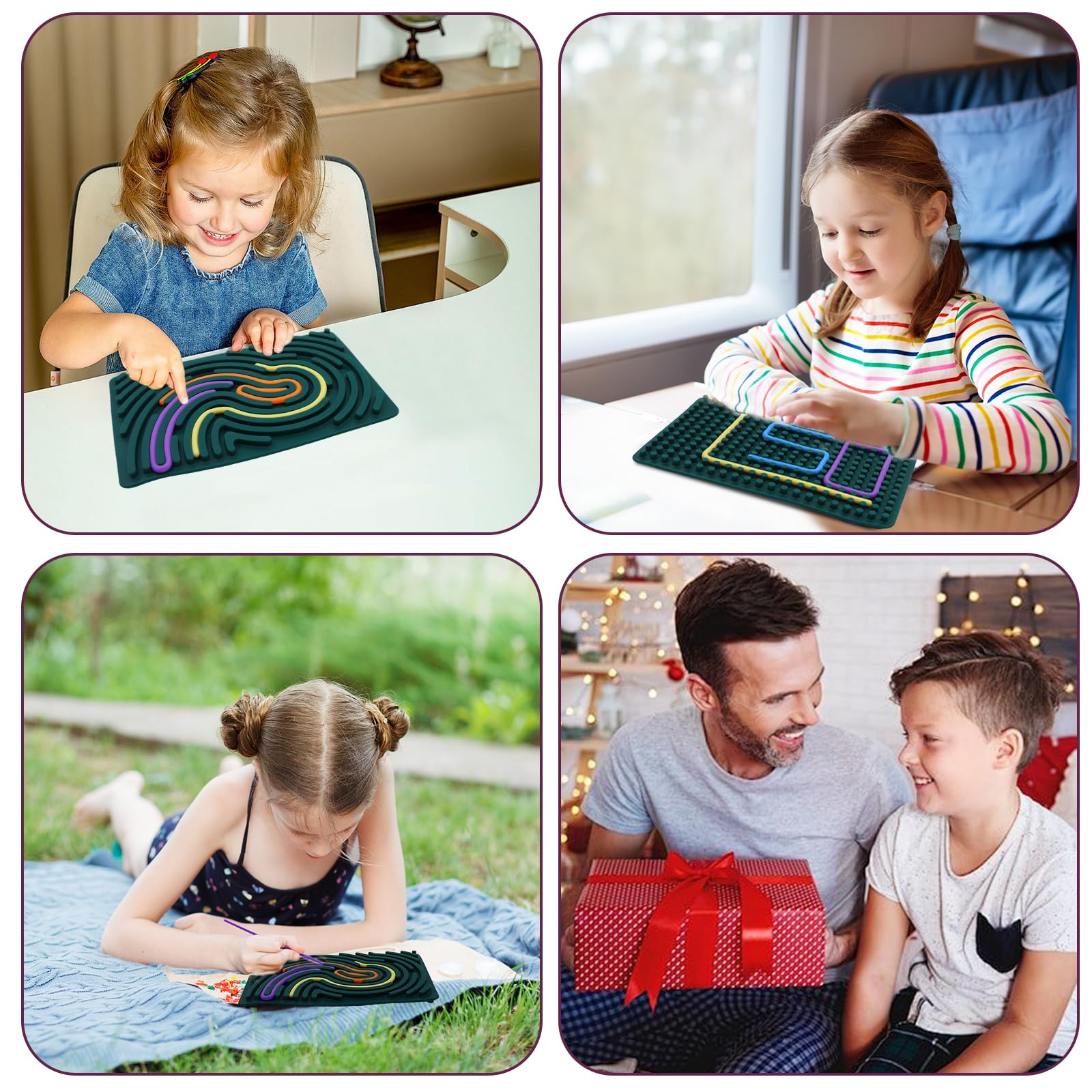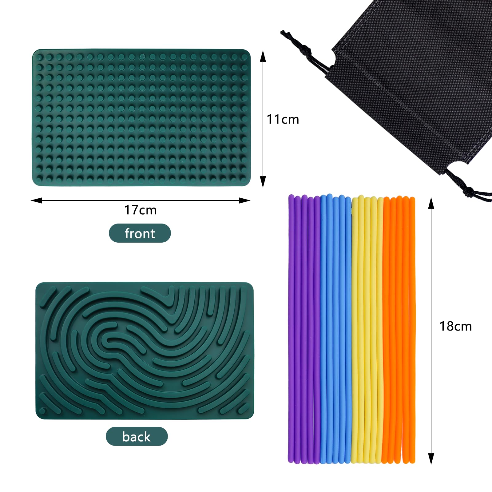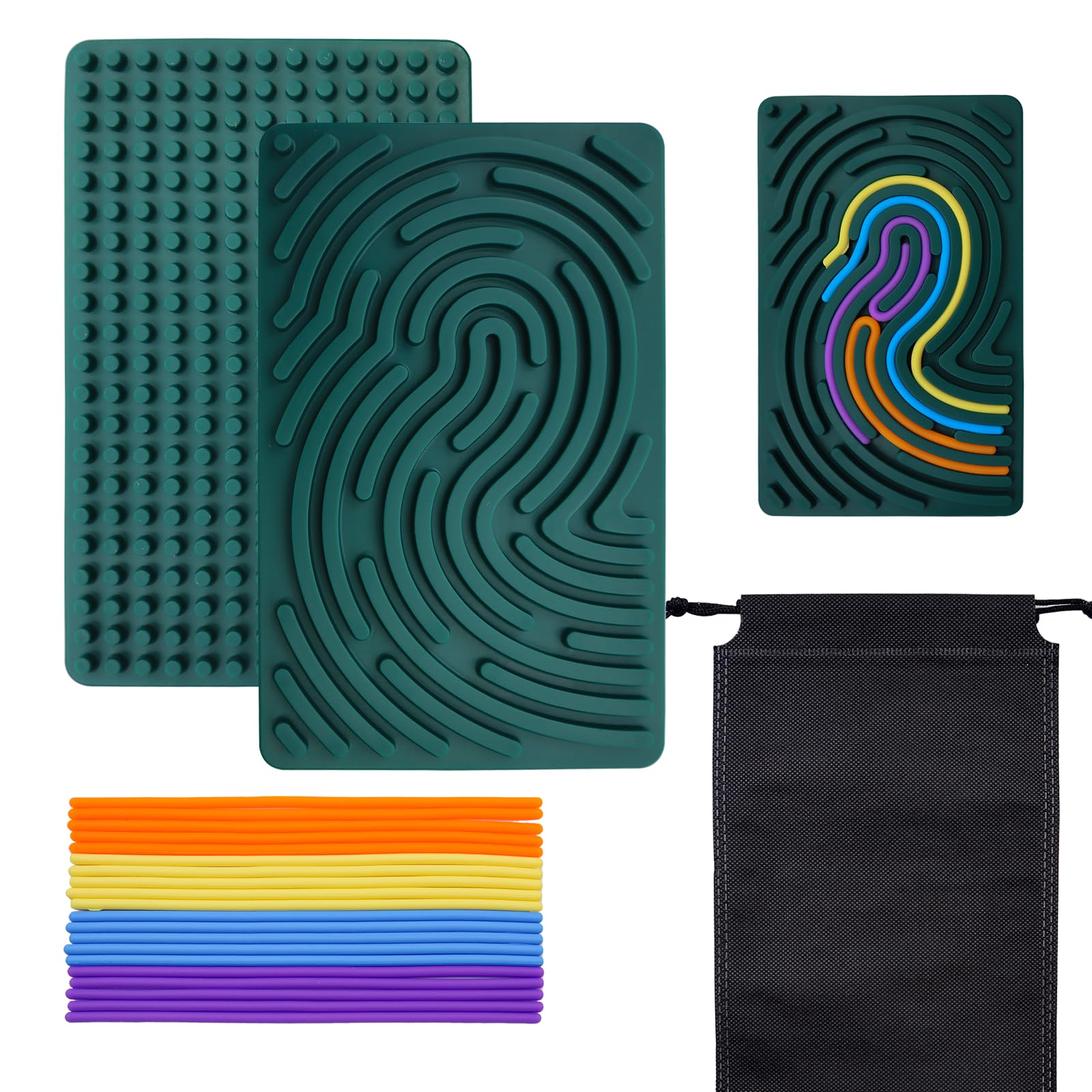 BEELUKY Sensorik Activity Board Spielzeug Activity Board Sensorisches Aktivitätstafel Sensorik Spielzeug mit Reisetasche 20 Silikonstreifen für Kinder ab 3 Jahr Erwachsene Stressabbau(Dark Green)