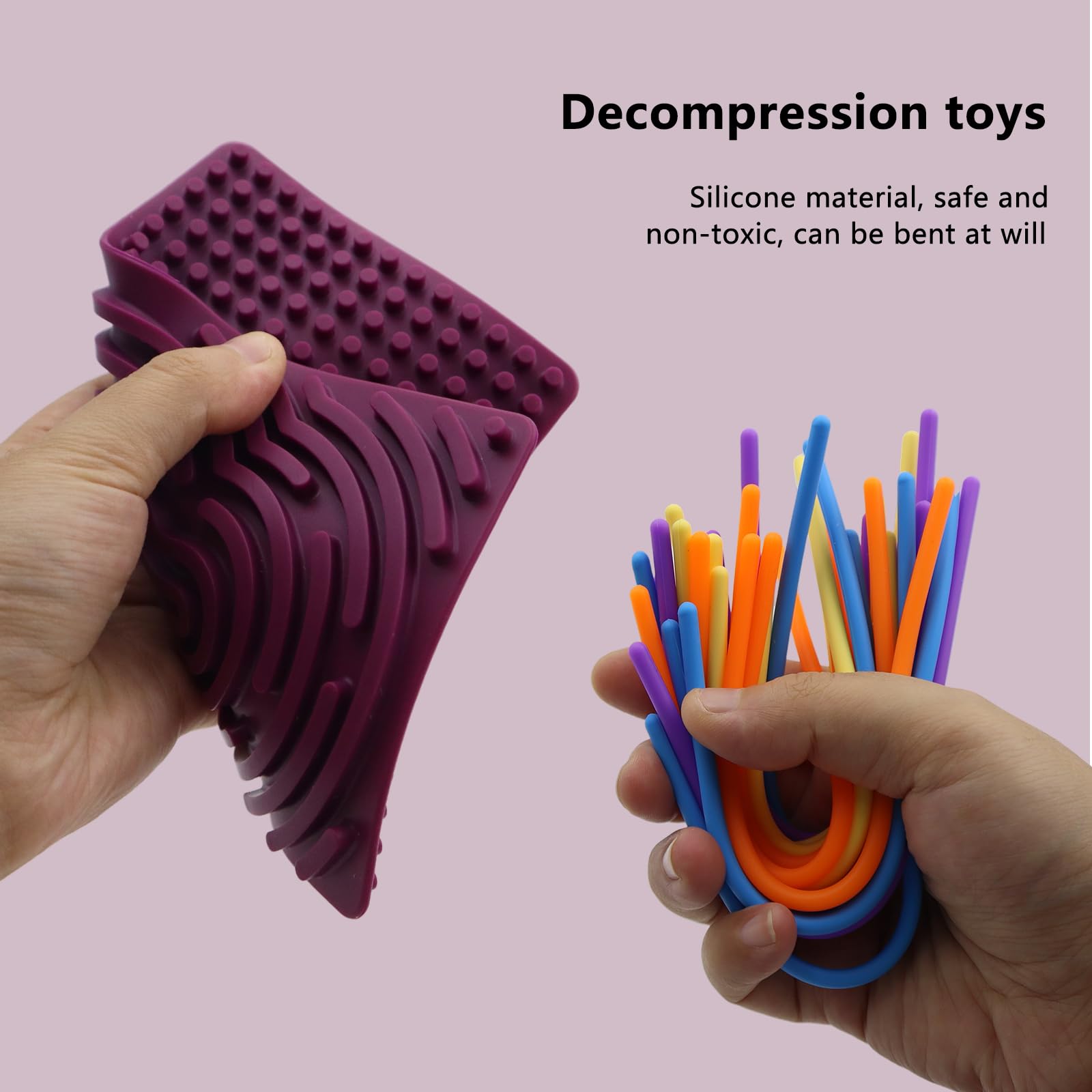 BEELUKY Sensorik Activity Board Spielzeug Activity Board Sensorisches Aktivitätstafel Sensorik Spielzeug mit Reisetasche 20 Silikonstreifen für Kinder ab 3 Jahr Erwachsene Stressabbau (Lila)