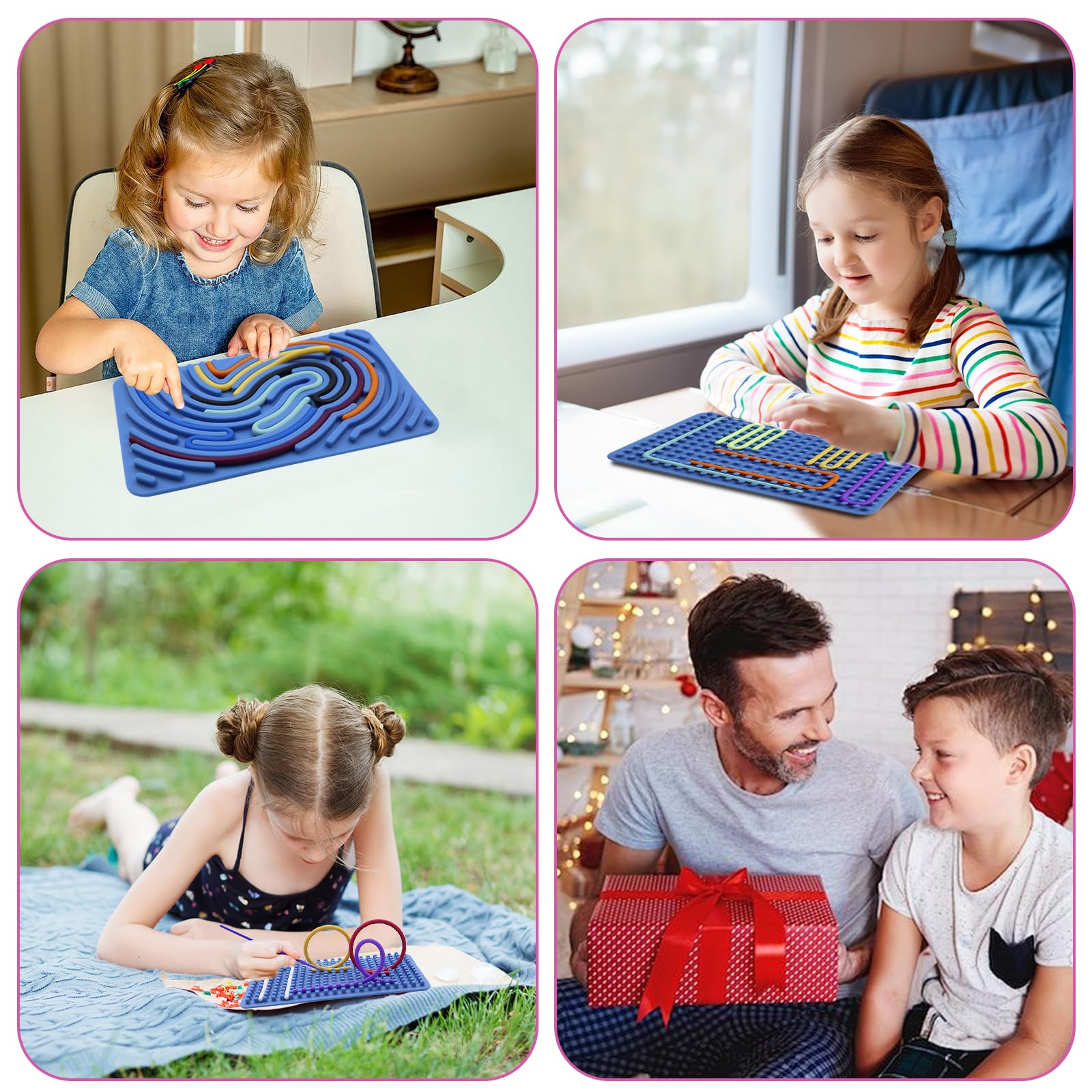 • 【Verpackungsmenge】Das Set enthält eine Silikonplatte, 10 bunte Silikonschnüre (Länge: 18.5cm) und 1 reisetasche, ausreichende menge und leicht zu tragen, deshalb sodass sie es unterwegs spielen oder mit Freunden teilen können.
