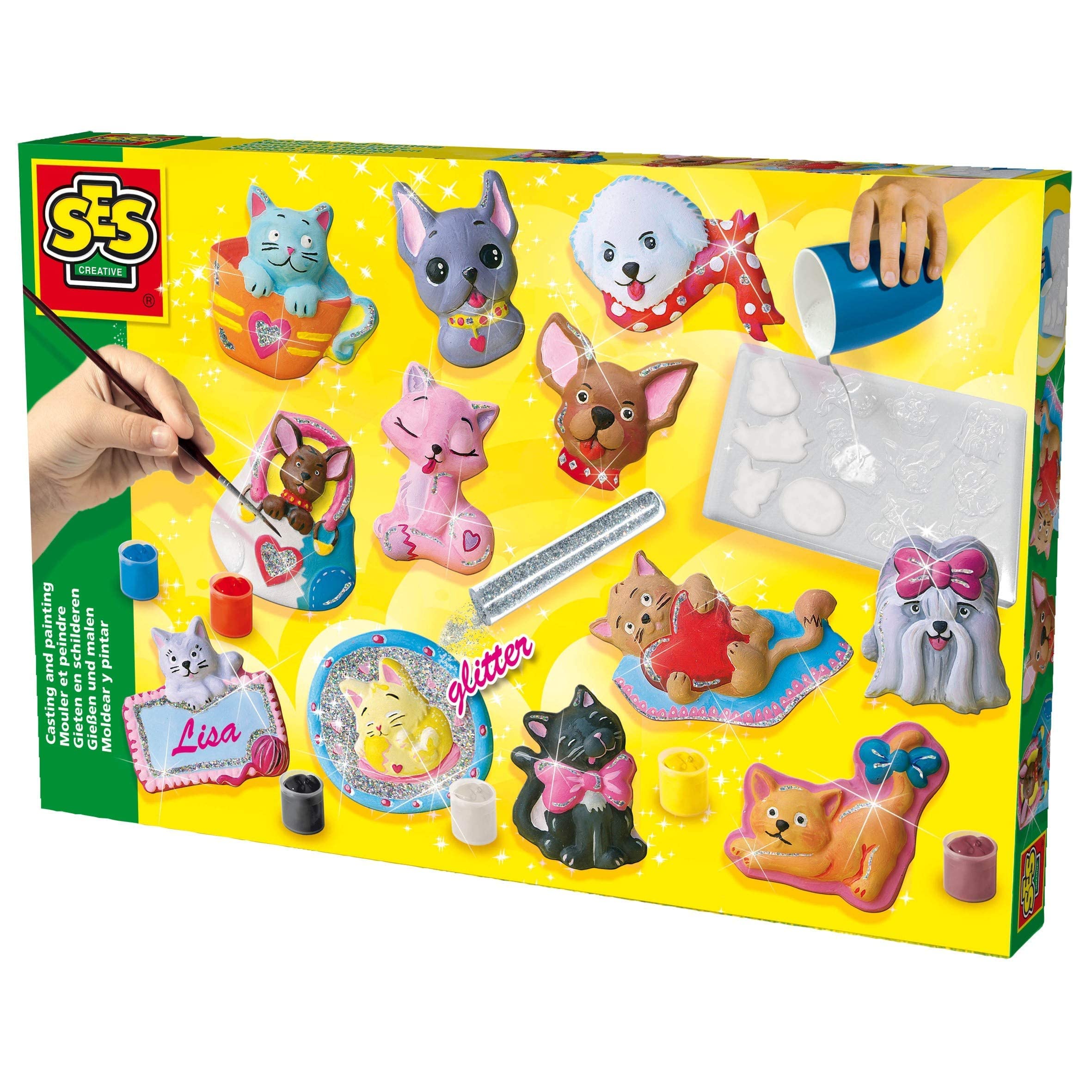 SES Creative 01154 Bastelset für Kinder, Gips Giessen Bastelset, Hunde und Katzen Figuren