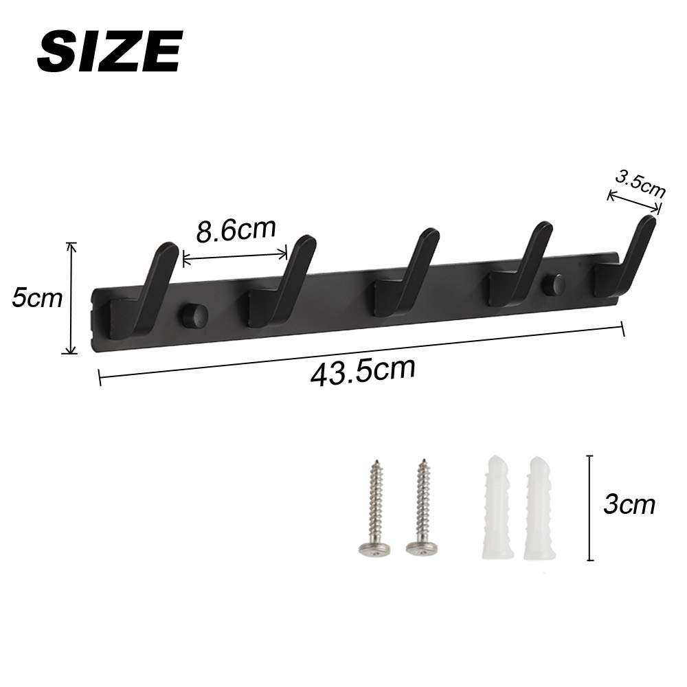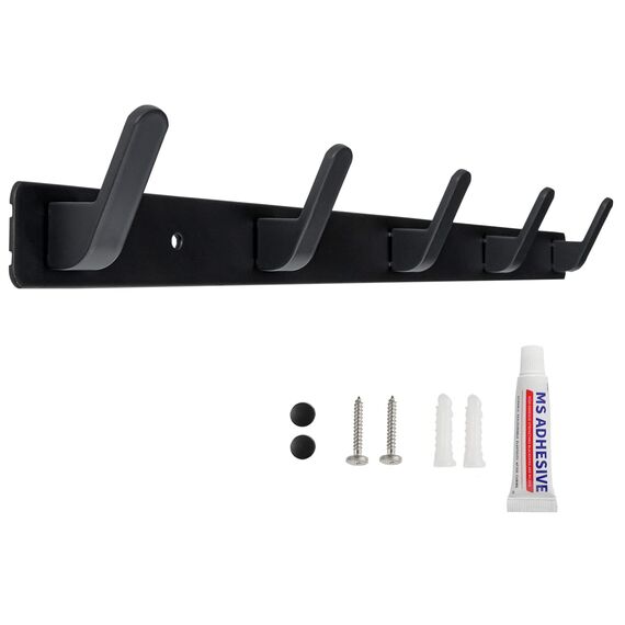 Sevenpers Kleiderhaken Hakenleiste, Garderobenhaken, Stabile Garderobenleiste- Schwarz Hakenleiste Wandgarderoben mit 5 Haken für Küche, Bad und Schlafzimmer
