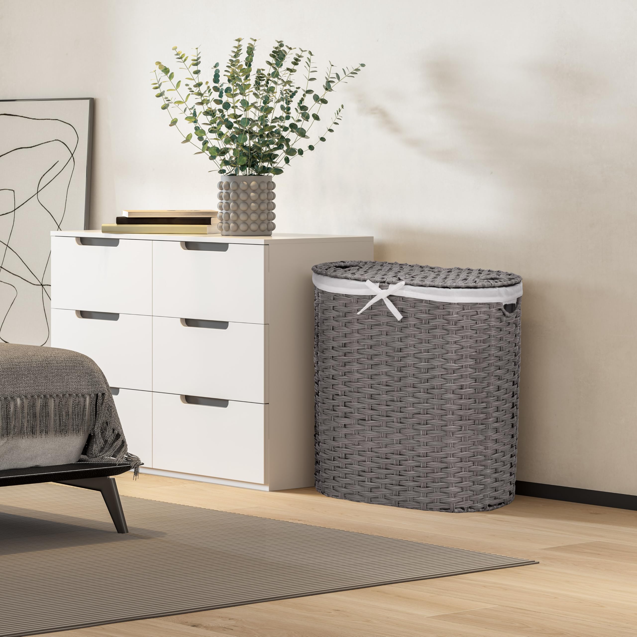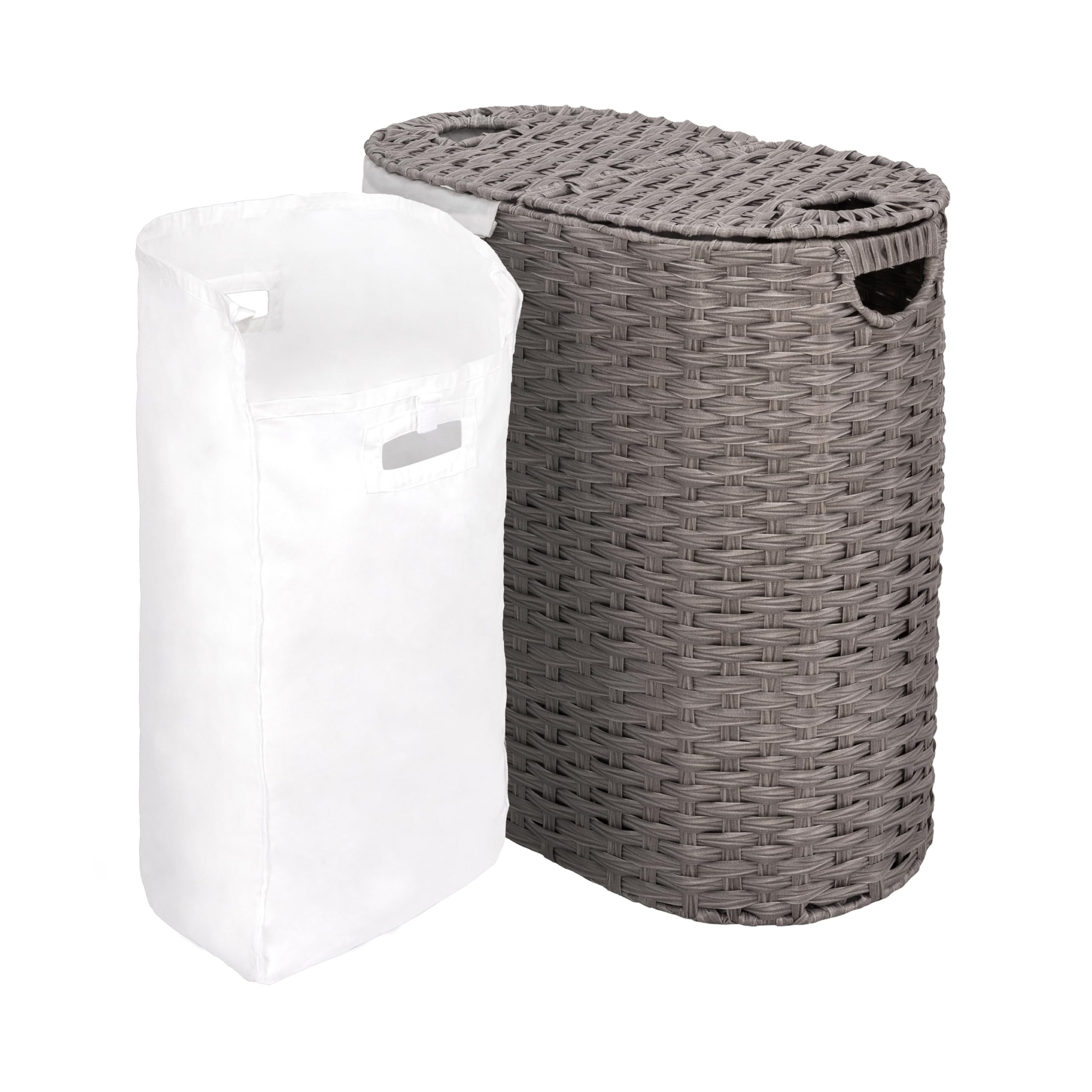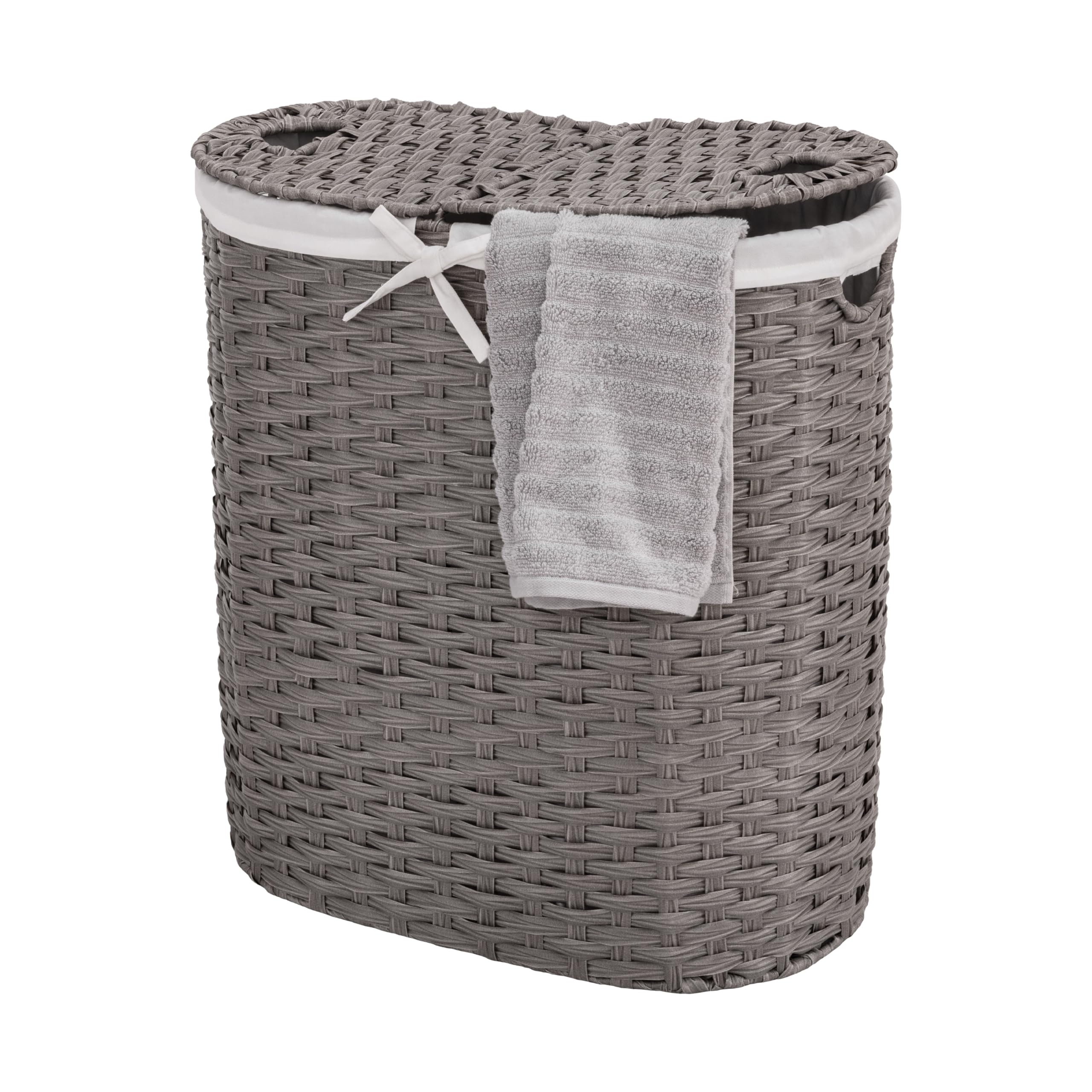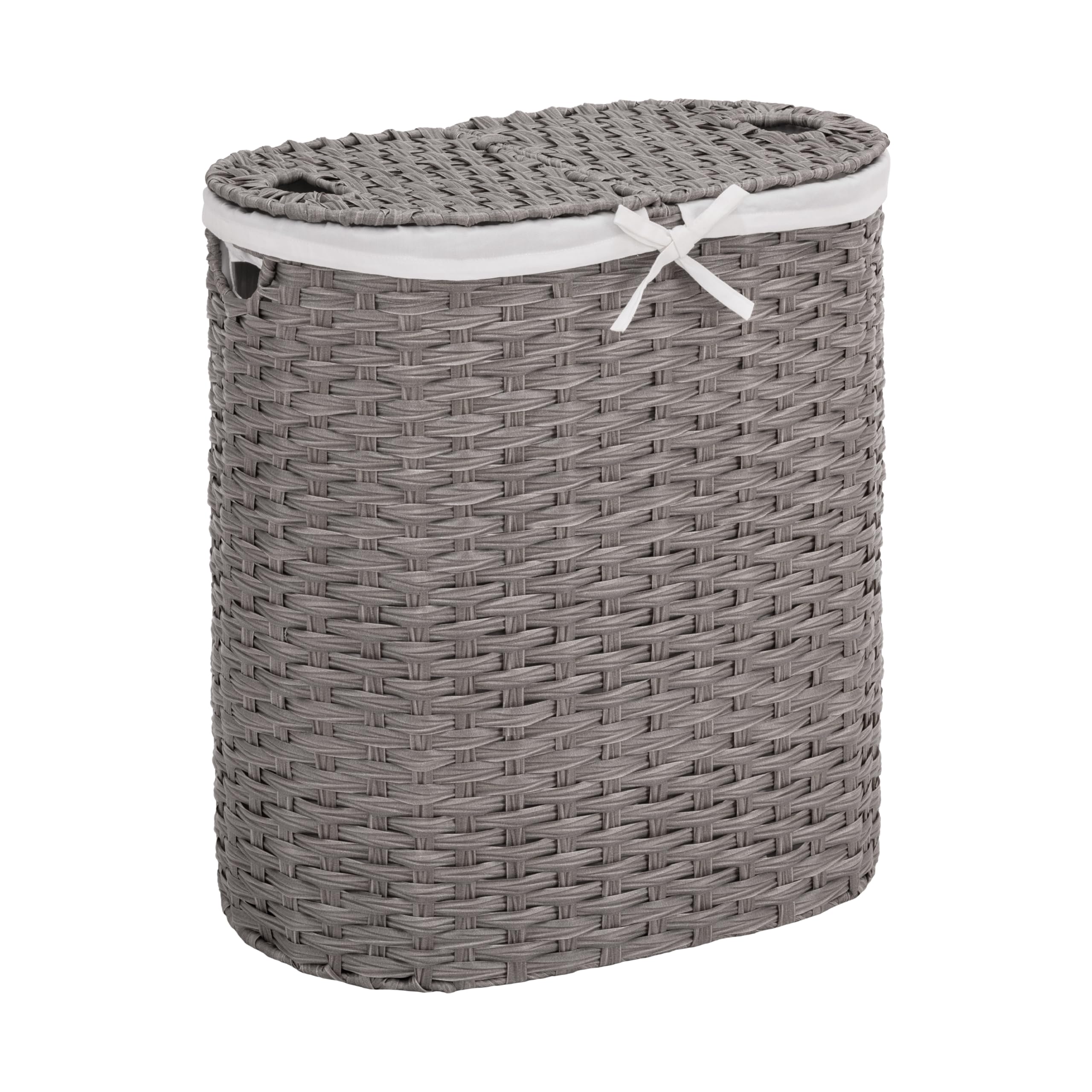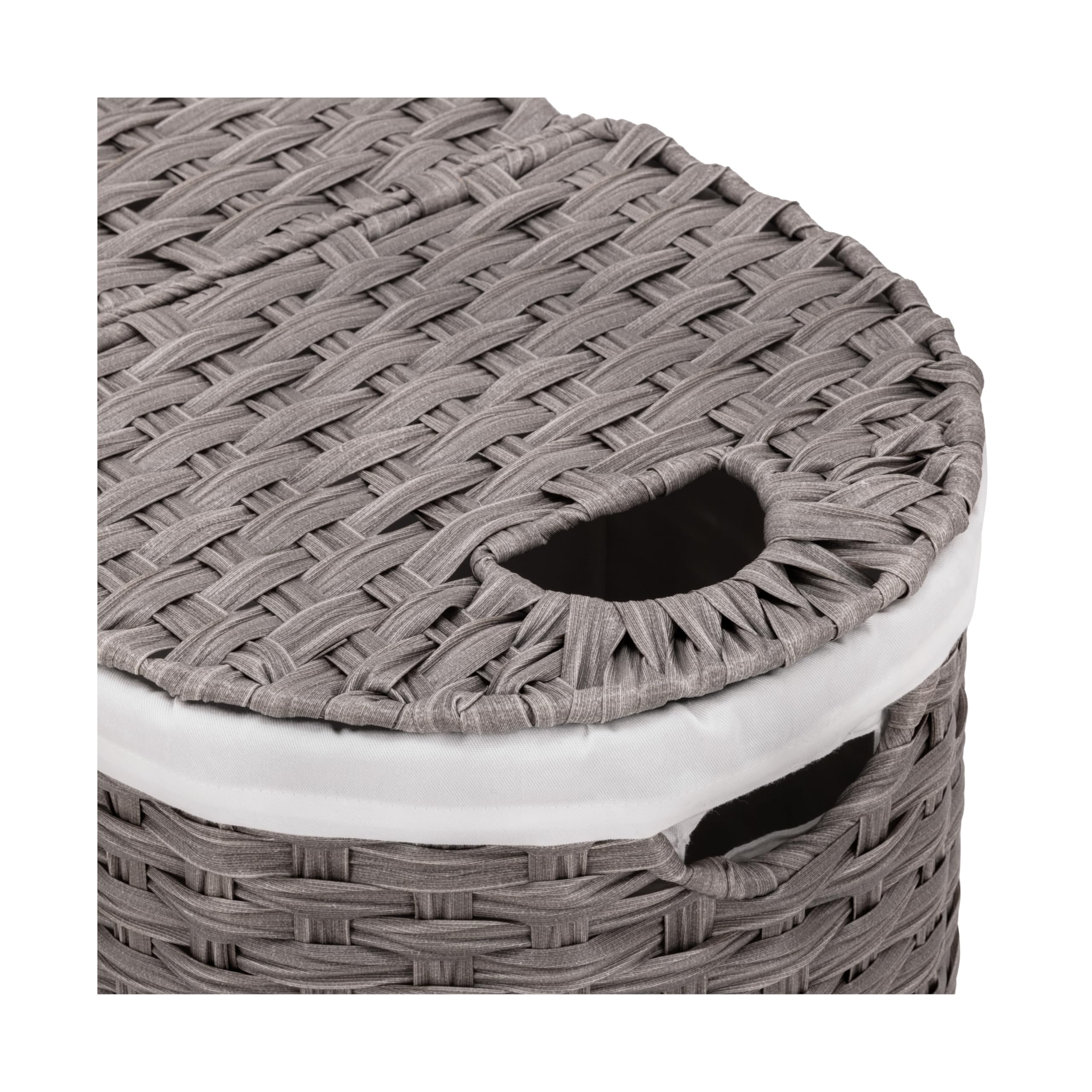 Seville Classics Premium handgewebter tragbarer Wäschekorb mit Tragegriffen, Haushaltsaufbewahrung für Kleidung, Bettwäsche, Laken, Grau, ovaler Korb