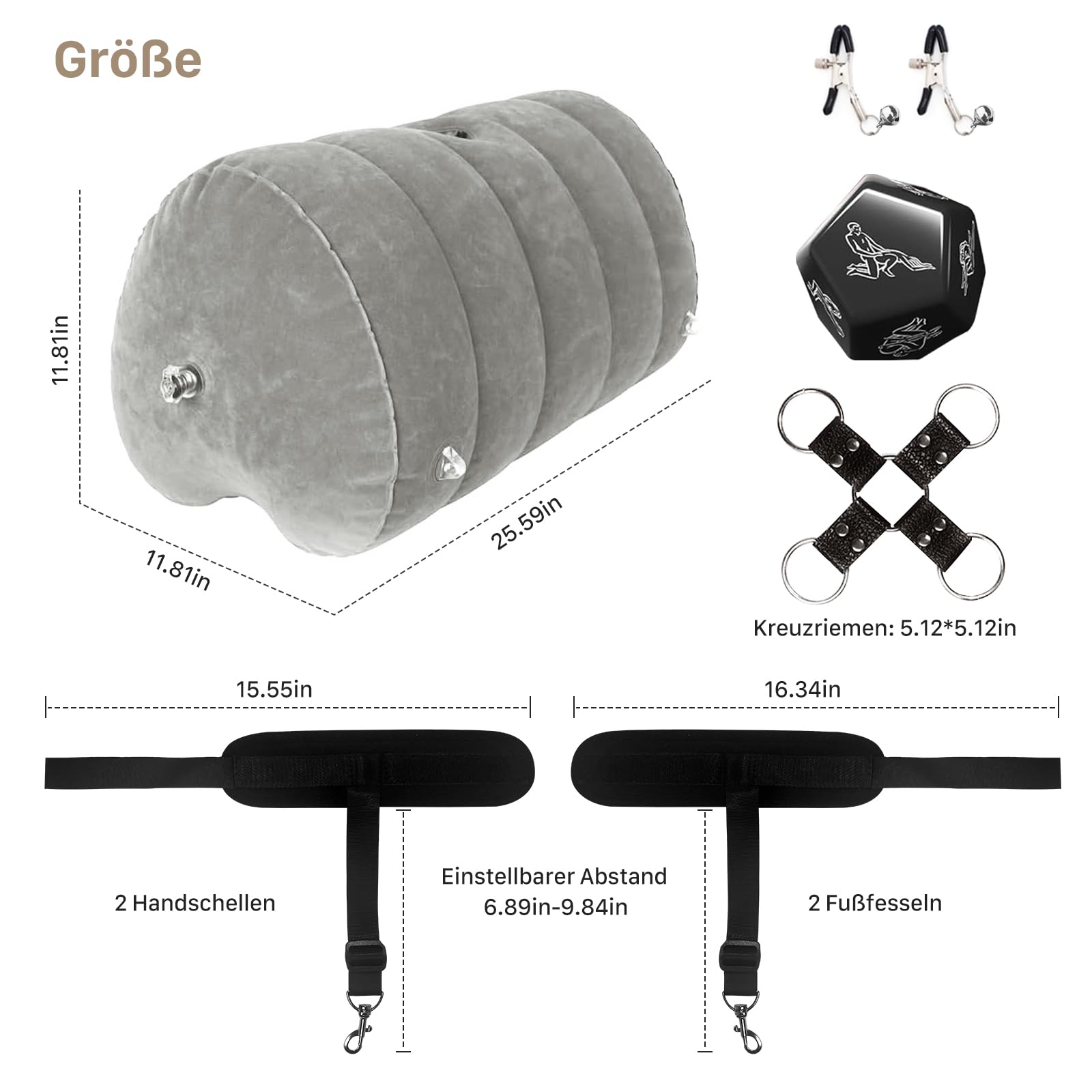 Sex-Positionskissen, Dildohalterung mit verstellbaren Hand- und Oberschenkelfesseln