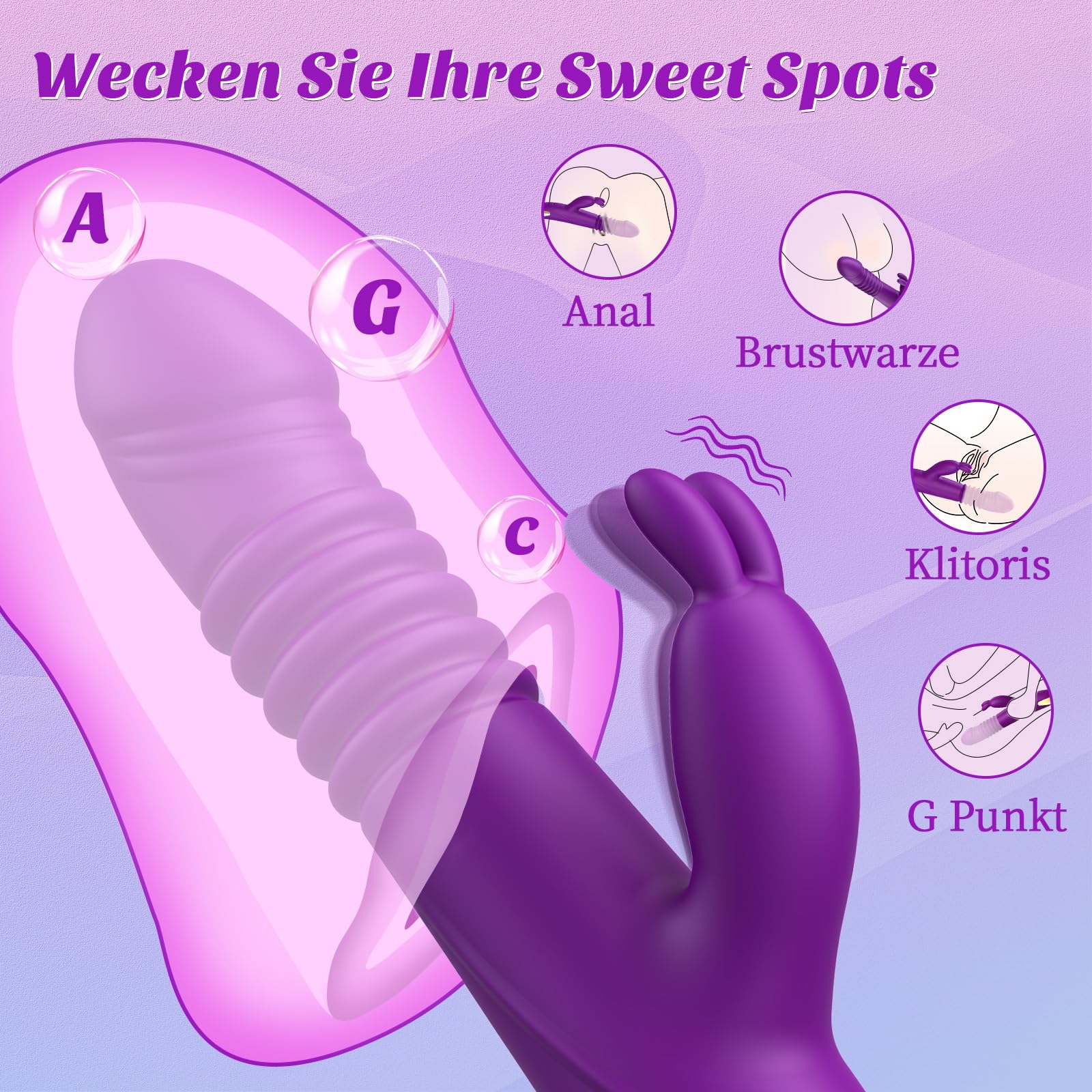 • 【3 IN 1 Rabbit Vibrator - Upgrade-Geschwindigkeit】 Der Vibrator mit Stossfunktion ist mit drei Supermotoren ausgestattet. Der Rabbit Vibrator vereint 3 Funktionen des Schlagens, Stossens und Vibrierens in einem Sexspielzeug Dildo, so dass die 3 Punkte A, C und G gleichzeitig zu einem lustvollen Erlebnis mit dem Sexspielzeug für Frauen solo ausbrechen können. Es ist auch ein grossartiges Sex Toy, das für Frauen allein oder als Sex Spielzeug für die Paare verwendet werden kann. Alles auf Knopfdruck!