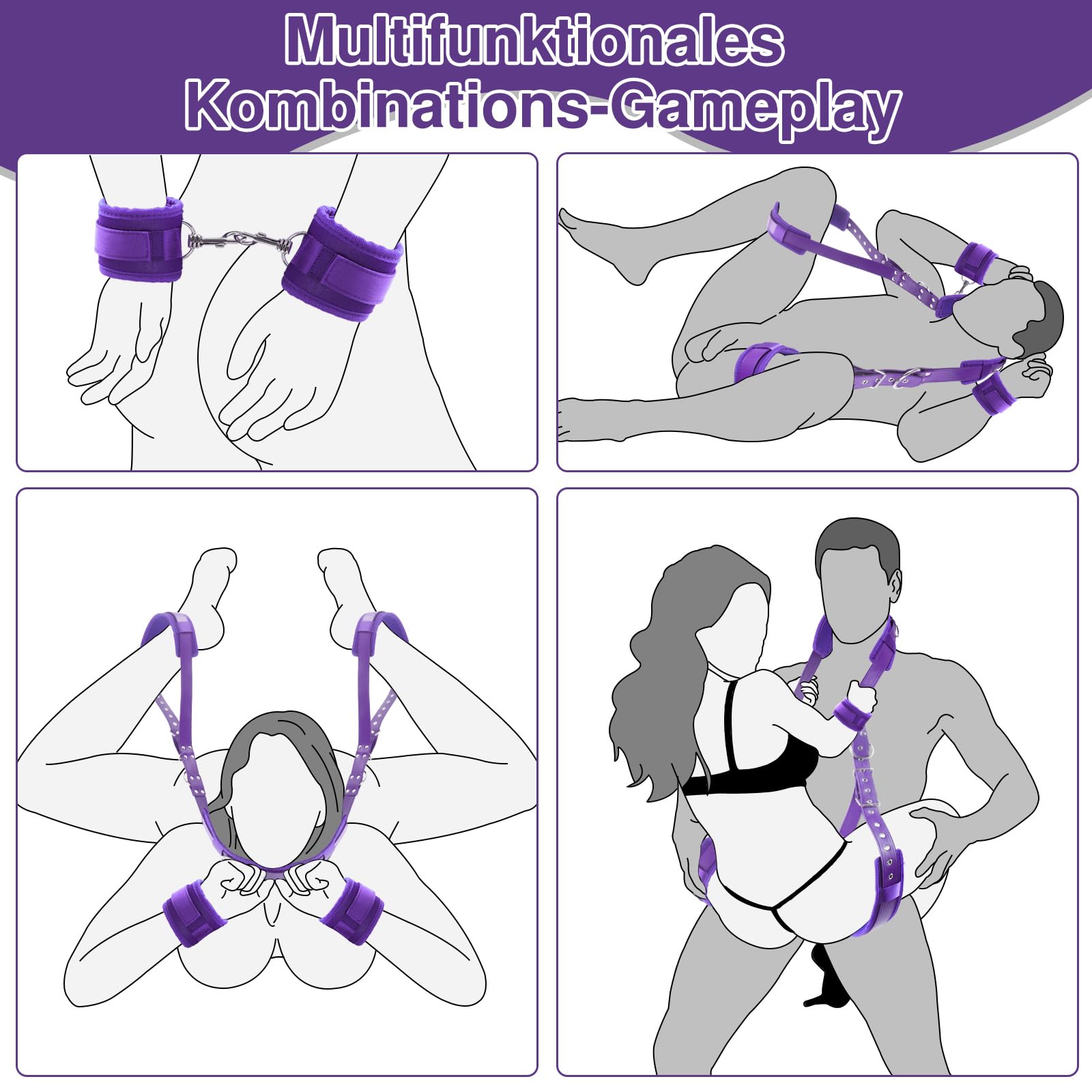 Sex Spielzeug für Die Paare Extrem Hart BDSM Bondage - Offenes Bein Fesseln Handschellen für Sexspiele, Sex Toys Bondageset Fessel Set Anfänger (Lila)
