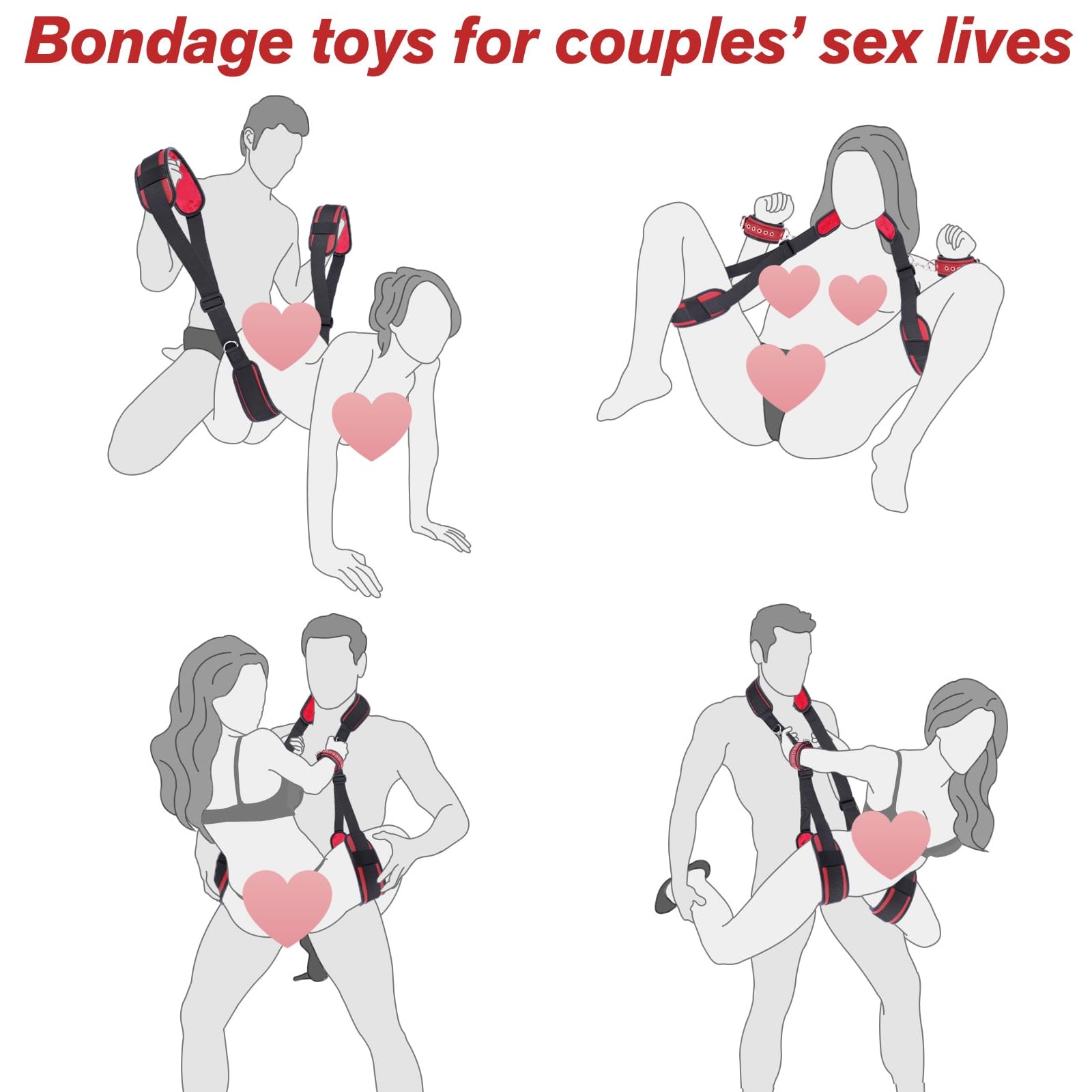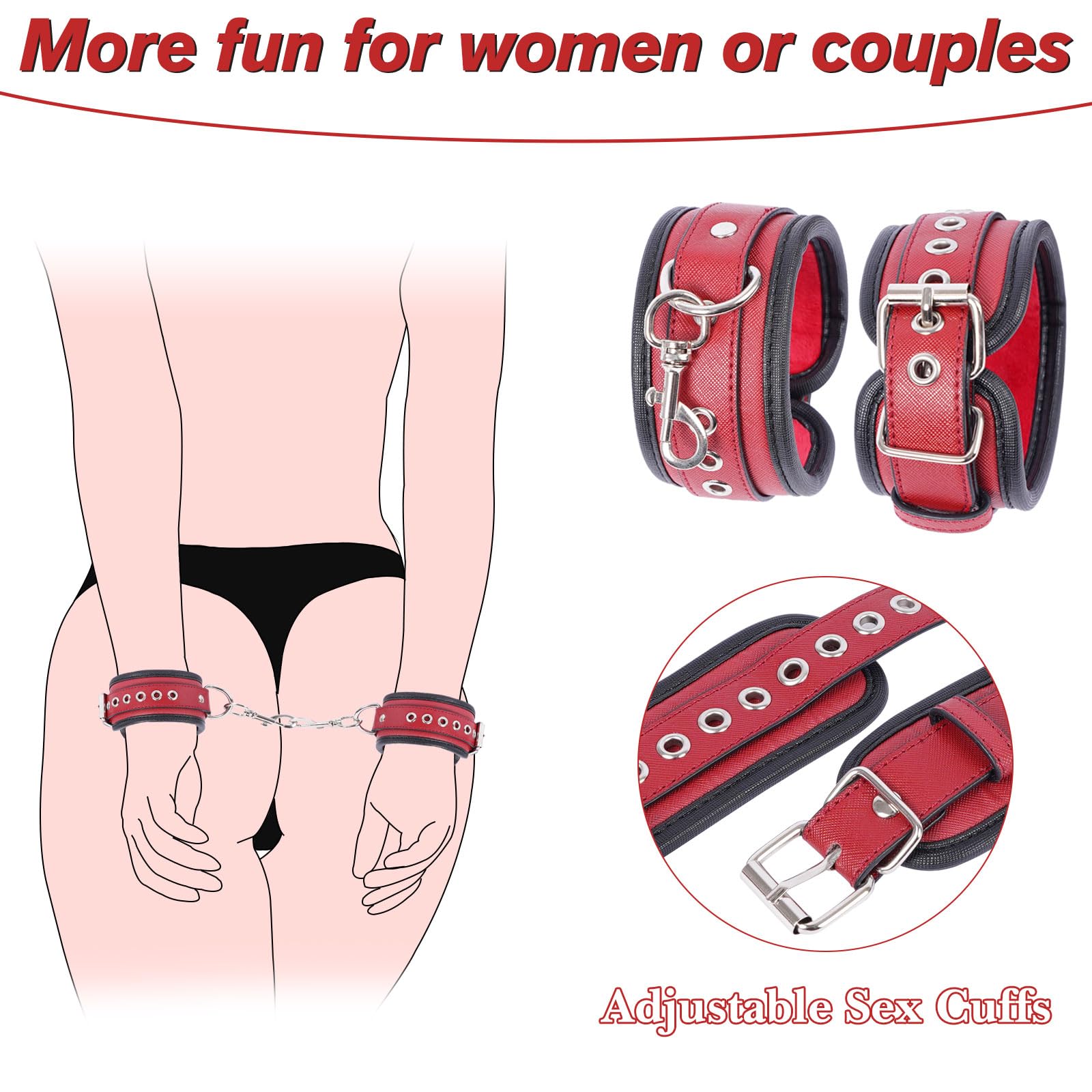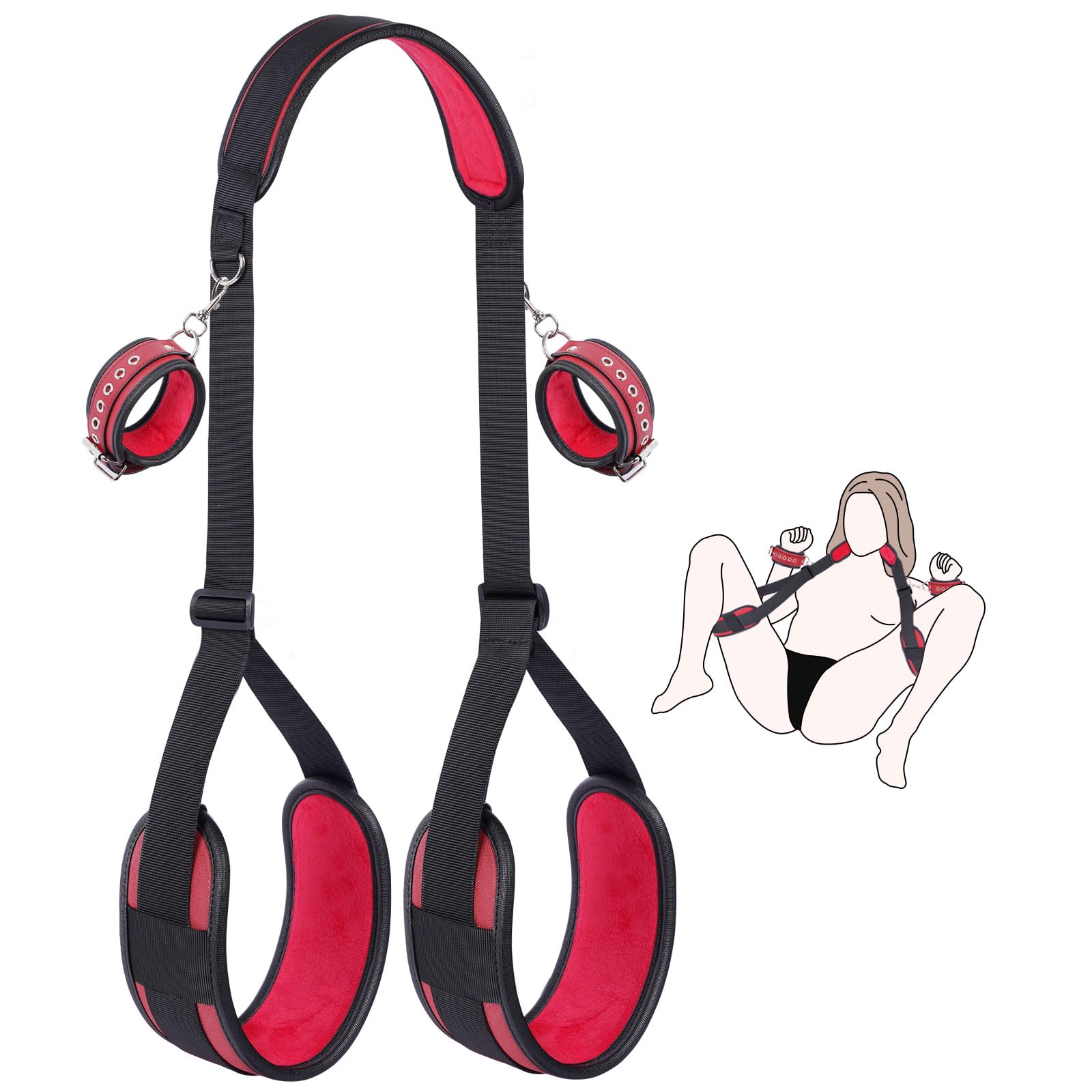 Sex Spielzeug für Die Paare Extrem Hart BDSM Bondage - Offenes Bein Fesseln Handschellen für Sexspiele, Sex Toys Bondageset Fessel Set Anfänger (Dunkelrot)