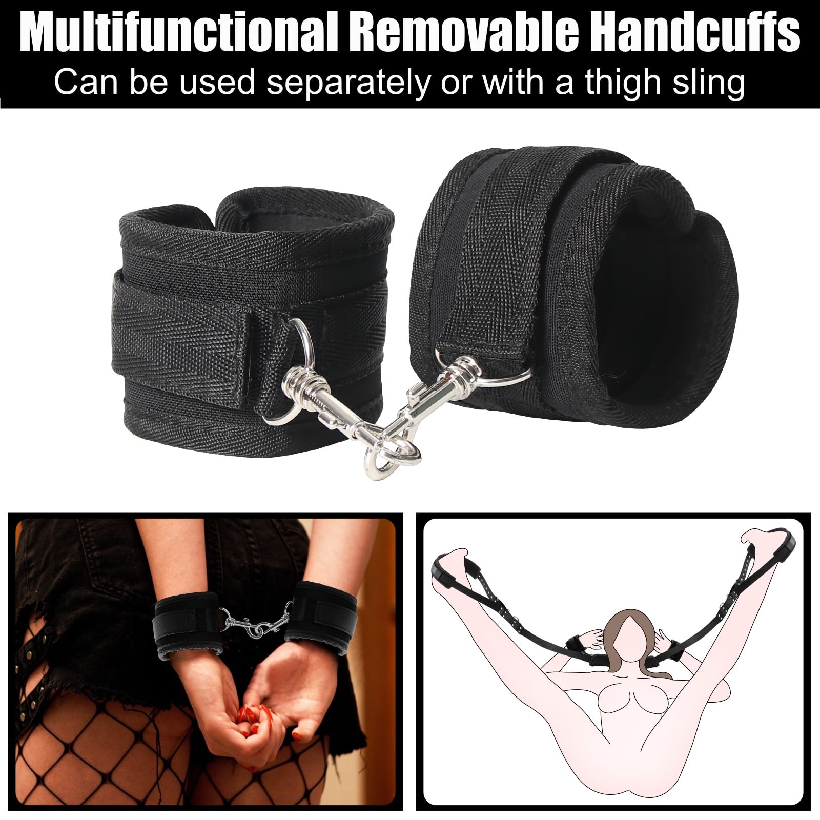 Sex Spielzeug für Die Paare Extrem Hart BDSM Bondage - Offenes Bein Fesseln Handschellen für Sexspiele, Sex Toys Bondageset Fessel Set Anfänger (Schwarz)