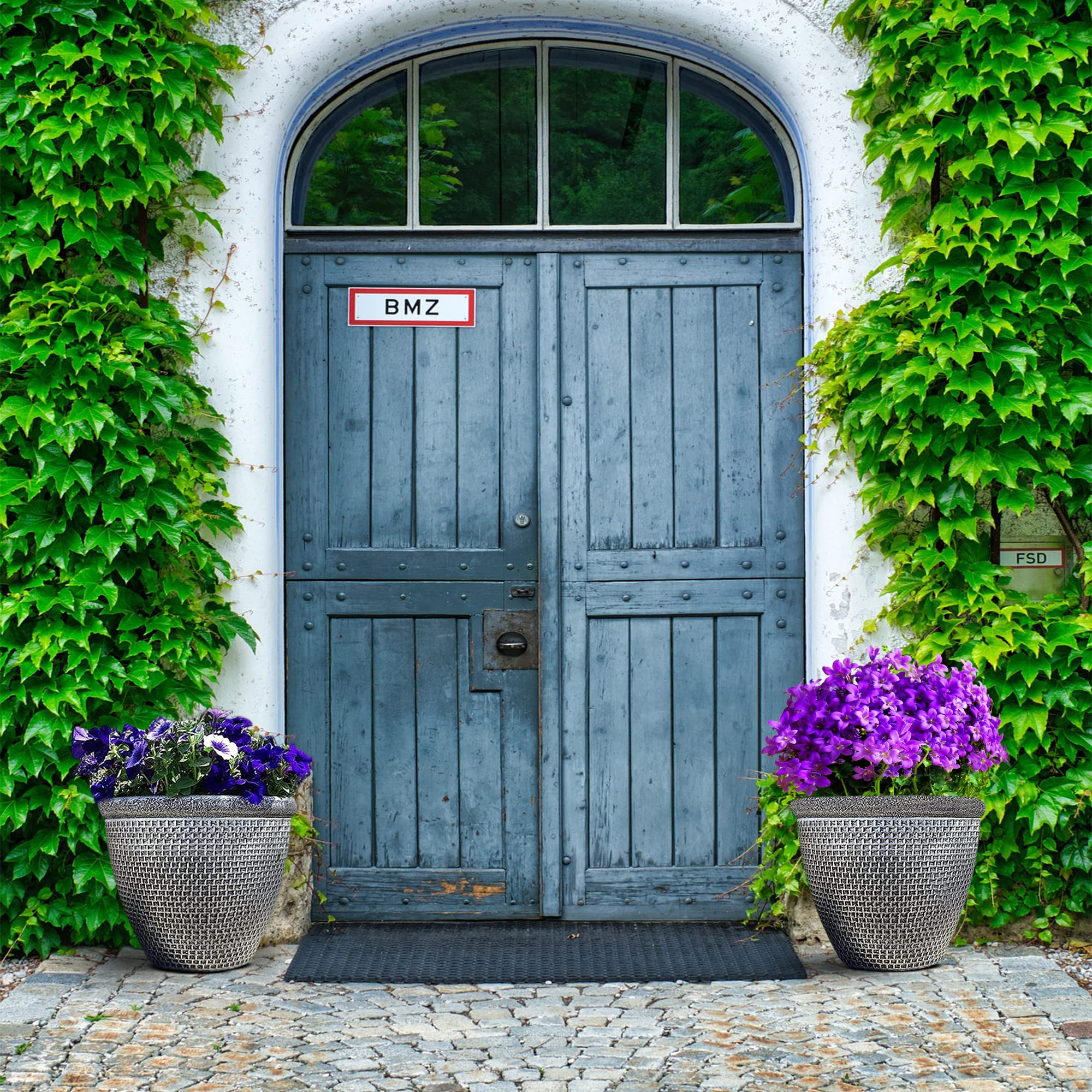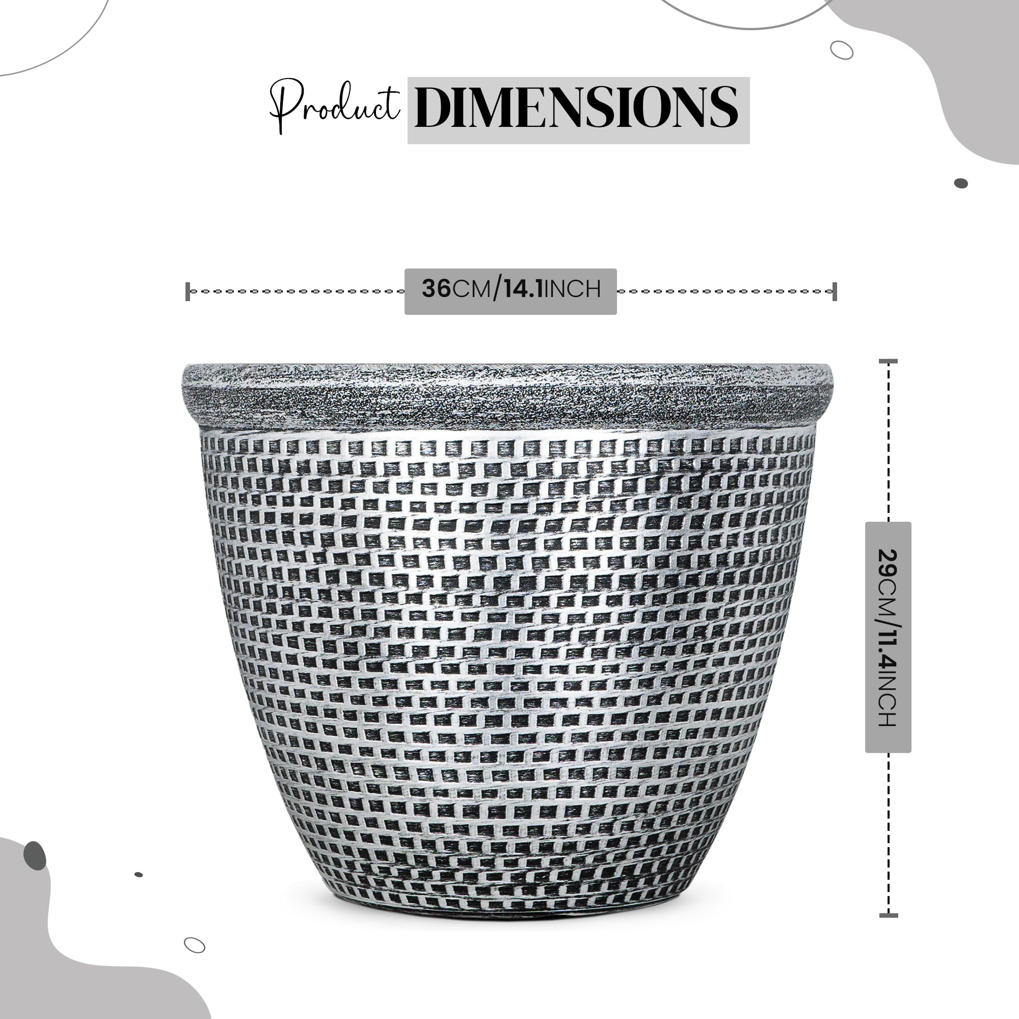 SG Traders 2 x grosser runder Blumentopf aus Kunststoff, Gartendekoration, antikes Silber, 36 cm, Blumentöpfe für den Aussenbereich, mit Drainagelöchern
