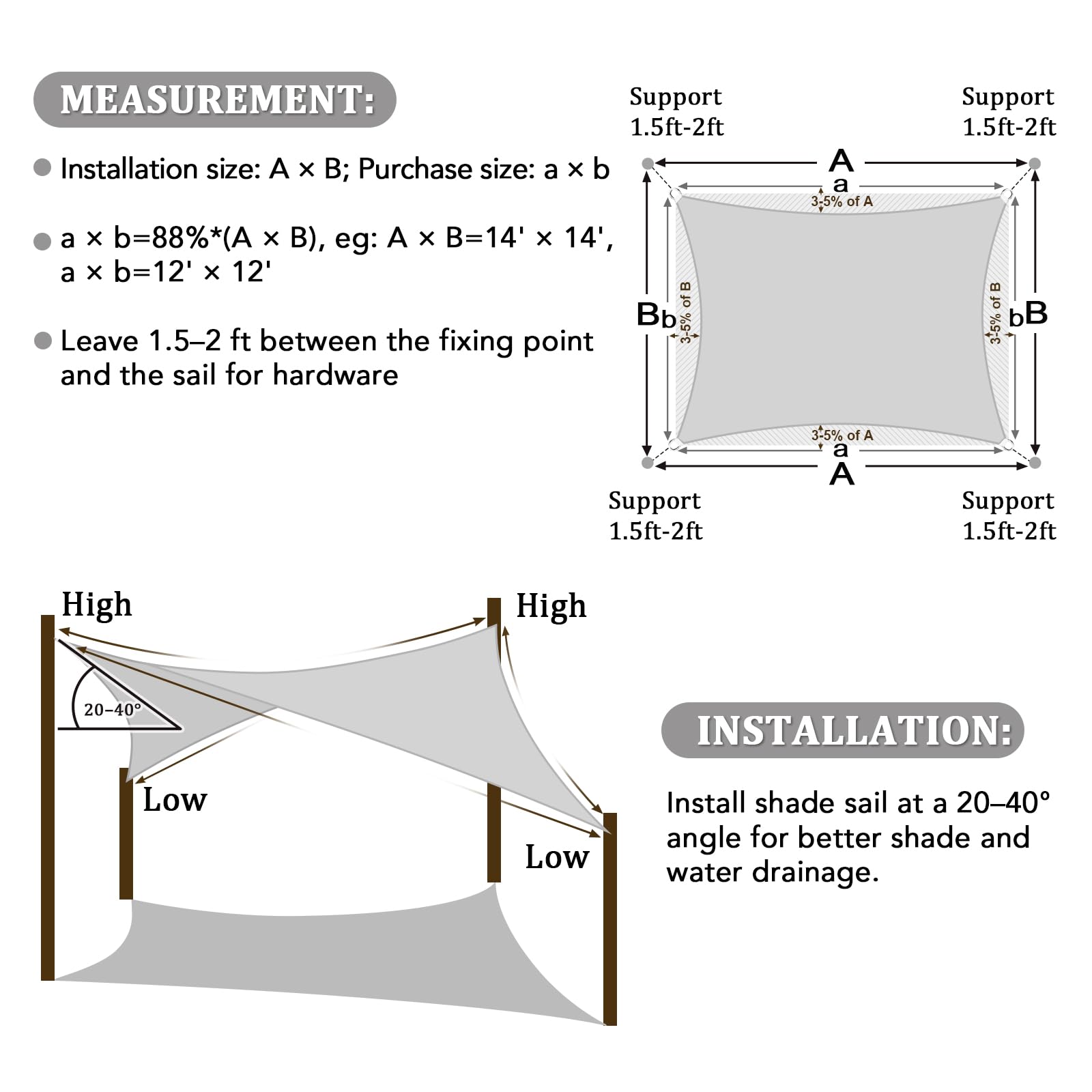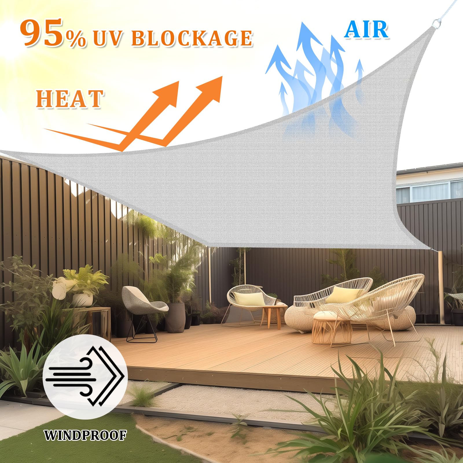 Weit verbreitet für Terrasse, Rasen, Garten, Pool, Grillbereiche, Teich, Deck, Kailyard, Hof, Hinterhof, Eingang, Park, Carport, Pergola, Sandkasten, Auffahrt oder andere Aussenbereiche, um 90 % Sonnenschutz zu bieten und vor 95 % schädlichen UV-Strahlen zu schützen und Ihre Terrasse sicher, kühl und fabelhaft zu machen.