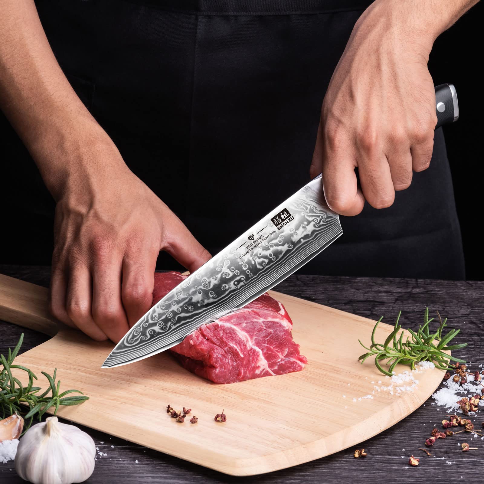 Mindestanzahl für die Bestellung von "SHAN ZU Damastmesser Kochmesser 67 Schichten Damaststahl Küchenmesser mit G10 Griff 20CM - PRO Series" ist 1.