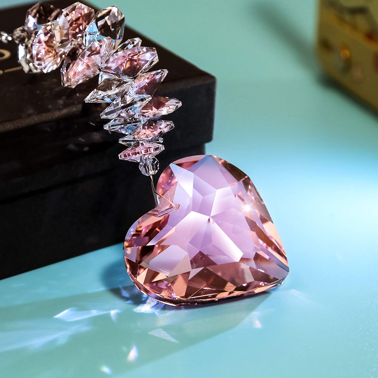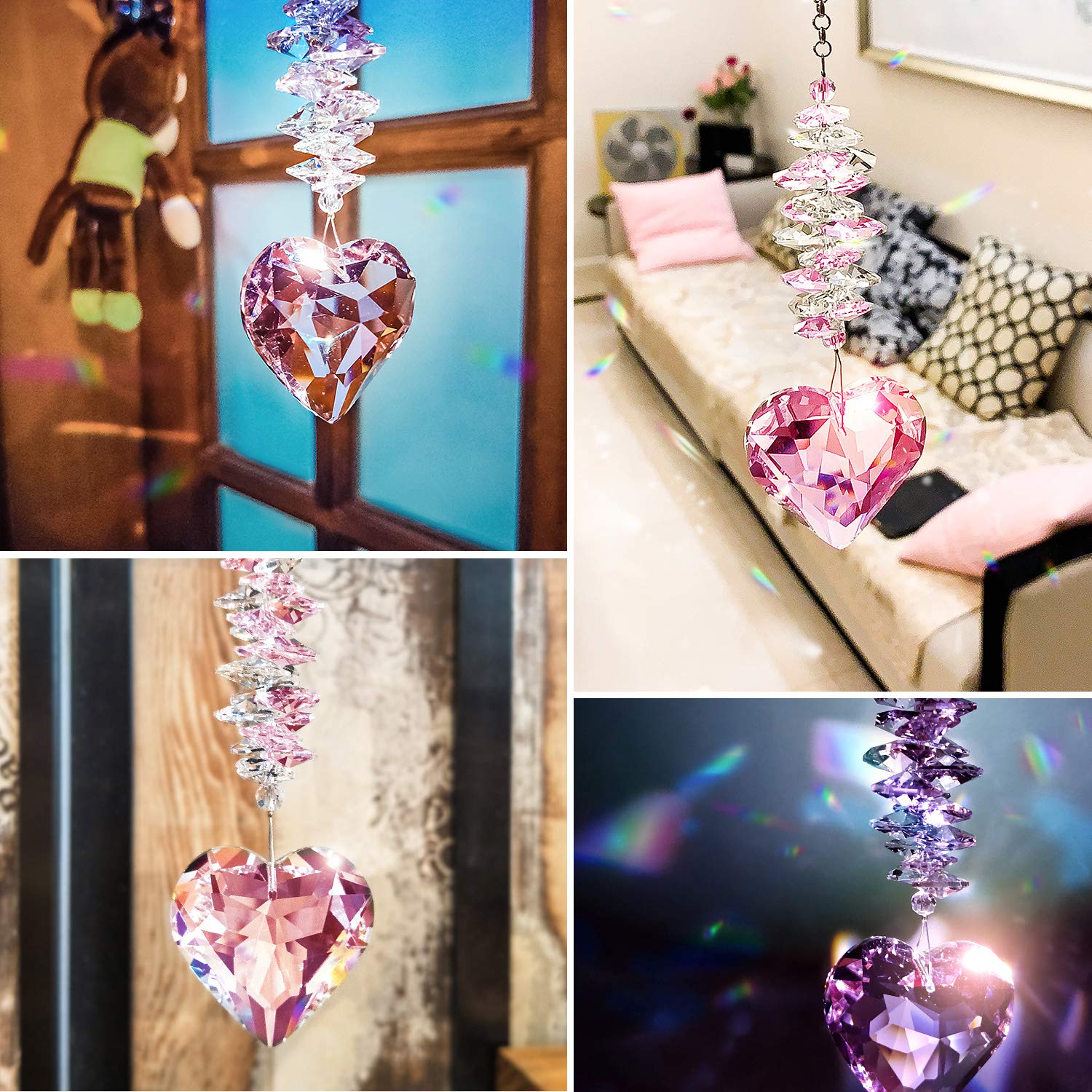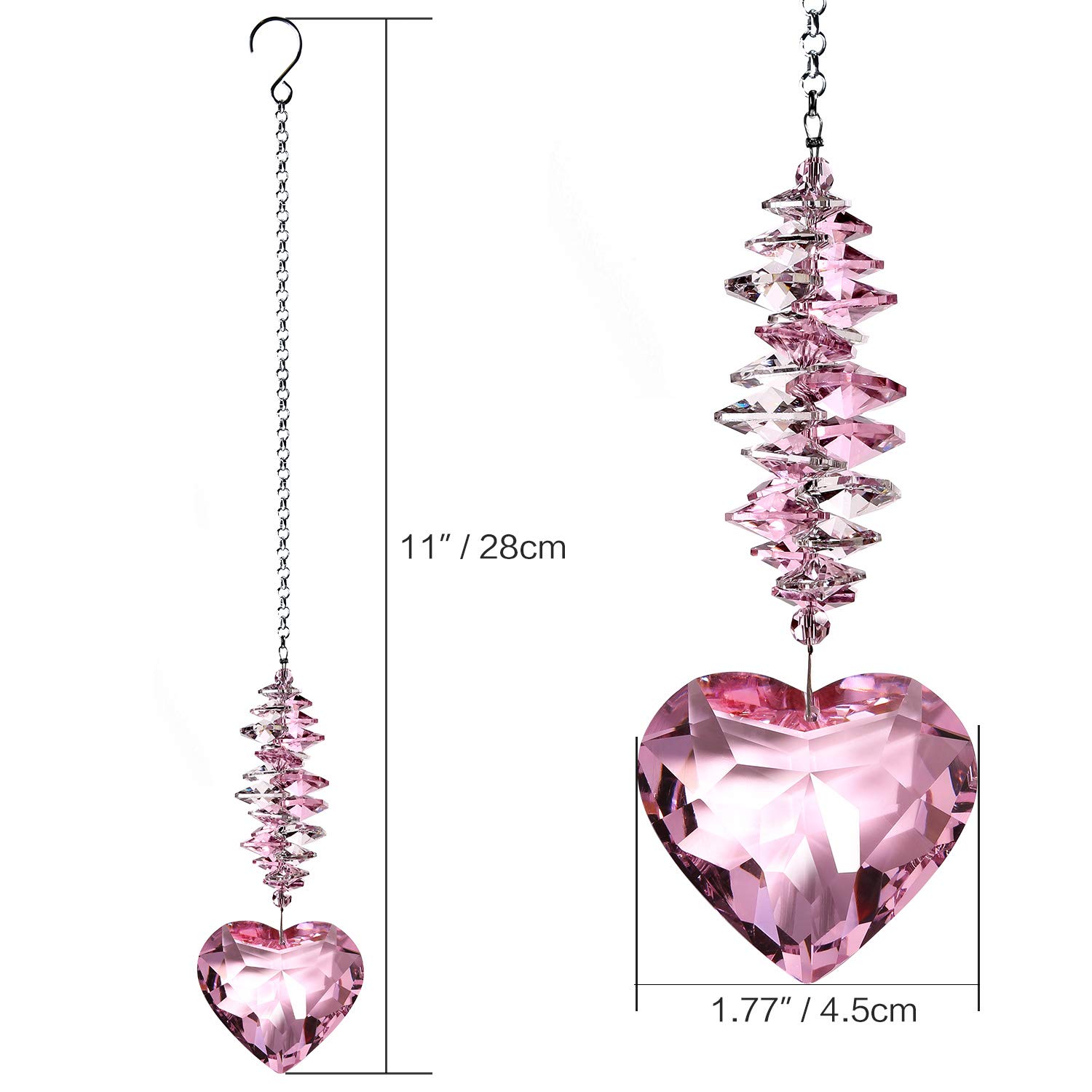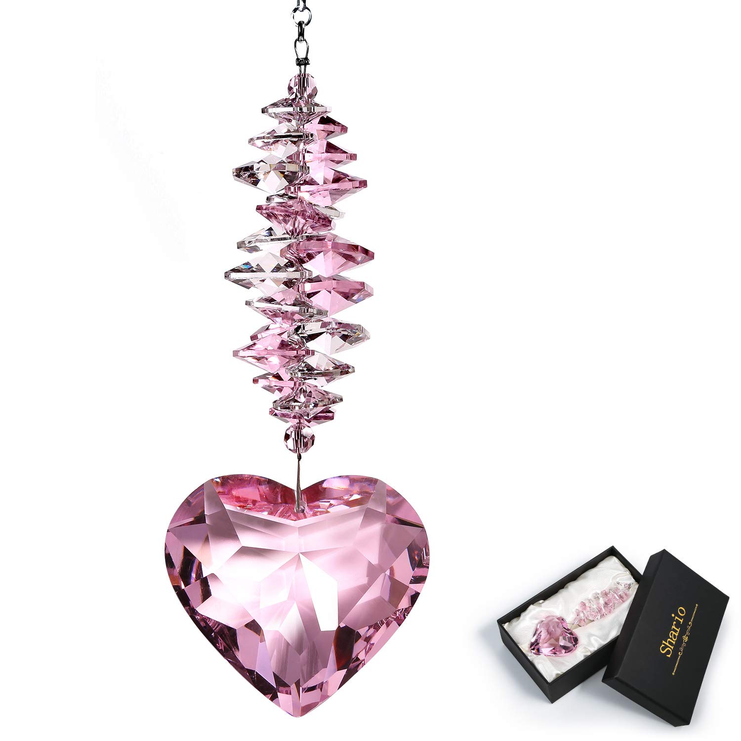 Shario Kristallanhänger-Herz aus Klarglas 45 mm, Sonnenfänger für Fenster, Gartendekoration zum Aufhängen im Freien, Geschenk für Frauen, Mütter (Rosa)