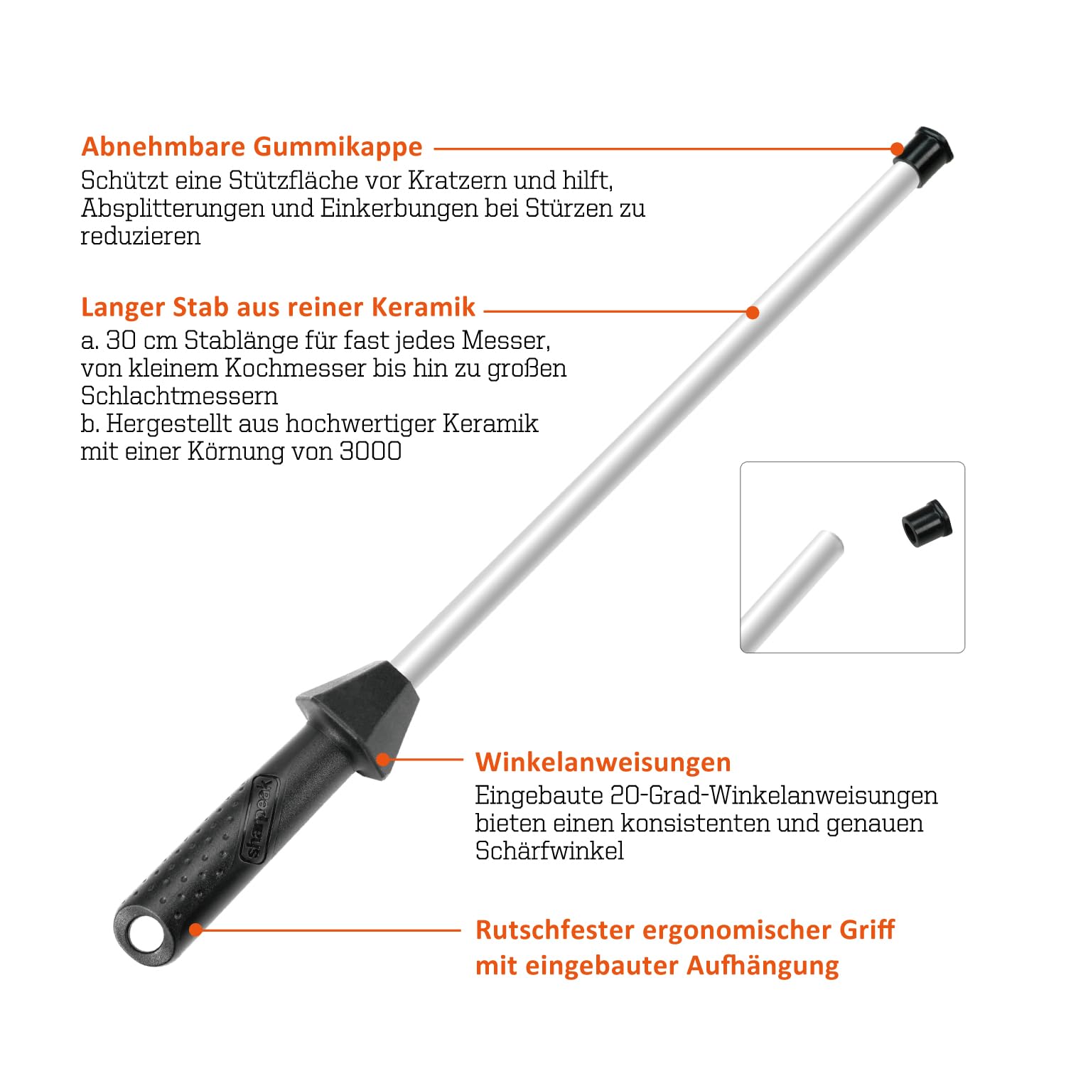 Sharpeak Gesamt 45 cm/Stangen 30 cm Keramik-Wetzstahl mit eingebauter Winkelführung und Anti-Bruch-Kappe, Keramik wetzstab Wetzstähle für messer, Schleifstab, Keramik Messerschärfer stab, Messerstahl