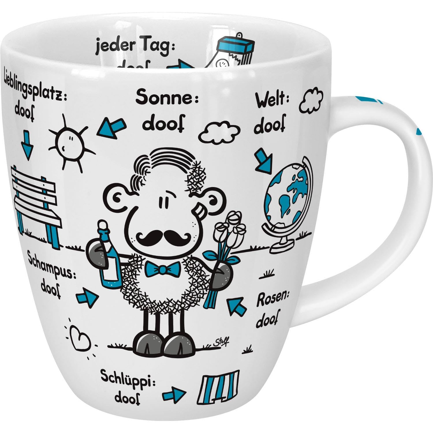 „Ohne Mr Right ist alles doof“ – diese romantische Botschaft ziert die schöne Geschenktasse im beliebten Sheepworld-Design. Die formschöne Tasse liegt gut in der Hand und ist aus hochwertigem Porzellan gefertigt. Egal ob ein guter Kaffee, eine leckere, heisse Schokolade oder ein wärmender, aromatischer Tee – aus dieser Tasse schmeckt es gleich doppelt so gut. Das süsse Schäfchenmotiv macht sie in Kombination mit dem liebevollen Text zu einem passenden Geschenk. Sei es zum Geburtstag des Liebsten oder der Freundin, als Geschenk zur Hochzeit, zum Valentinstag, zu Weihnachten oder ins Osternest – diese schöne Sheepworld-Tasse passt einfach zu jedem Anlass.