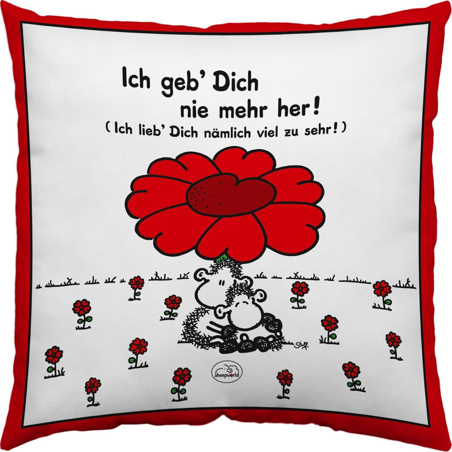 Sheepworld Kissen Motiv Ich Geb Dich nie mehr her| Zierkissen, Baumwolle, 40 cm x 40 cm | Kissen mit Spruch | 40854