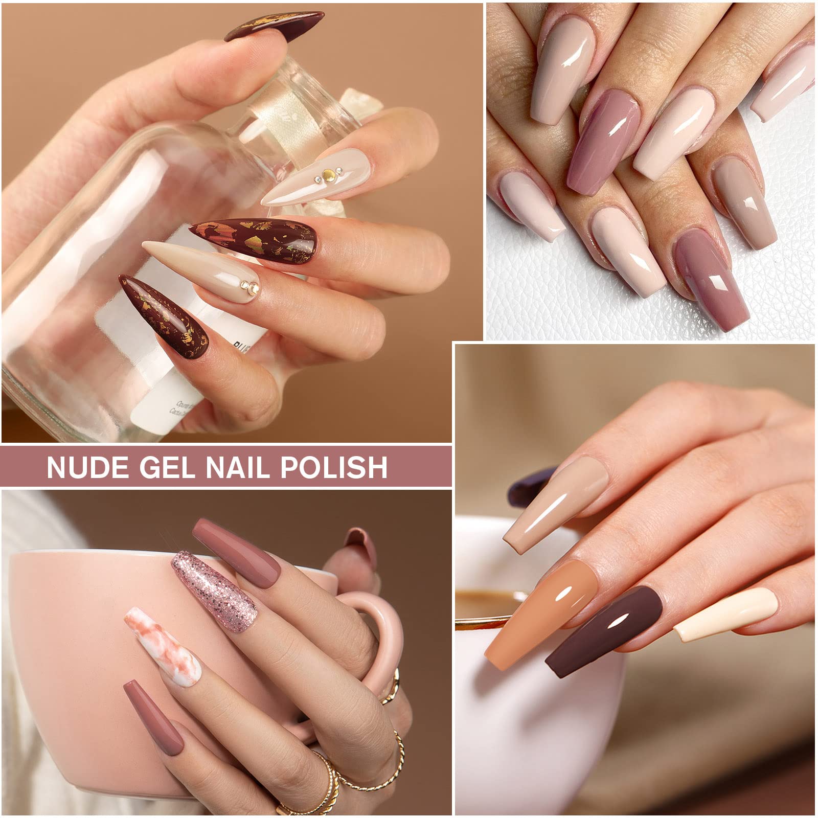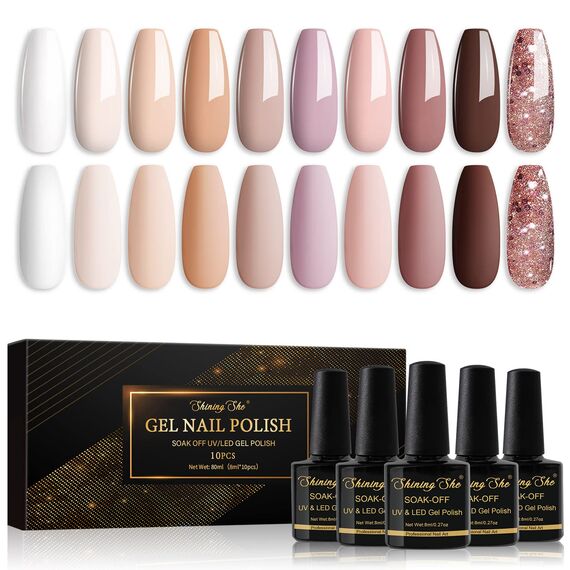 Shining She UV Nagellack Nude Set – 10 Farben Nude, Beige, Rosa, Weiss, Champagner & Braun, je 8 ml