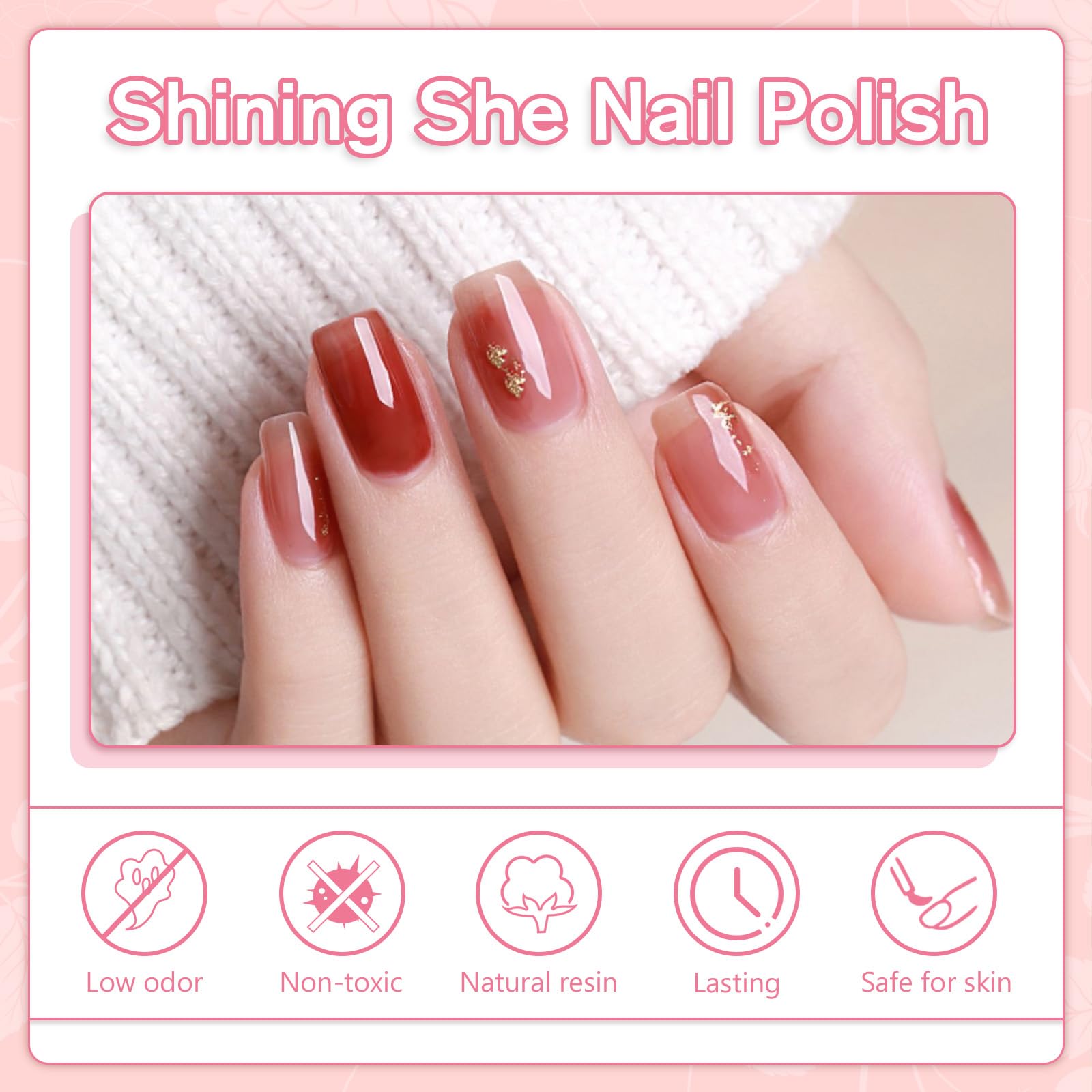 Das Shining She Jelly UV Gel Nagellack Set eignet sich ideal für dezente, moderne Manikueren und ist eine stilvolle Geschenkidee für verschiedene Anlässe.