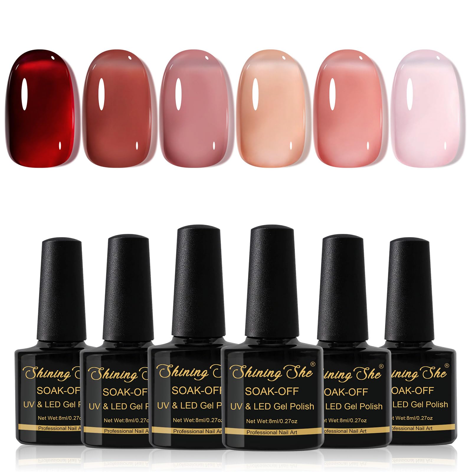 Shining She Jelly UV Gel Nagellack Set – 6 Farben, je 8 ml